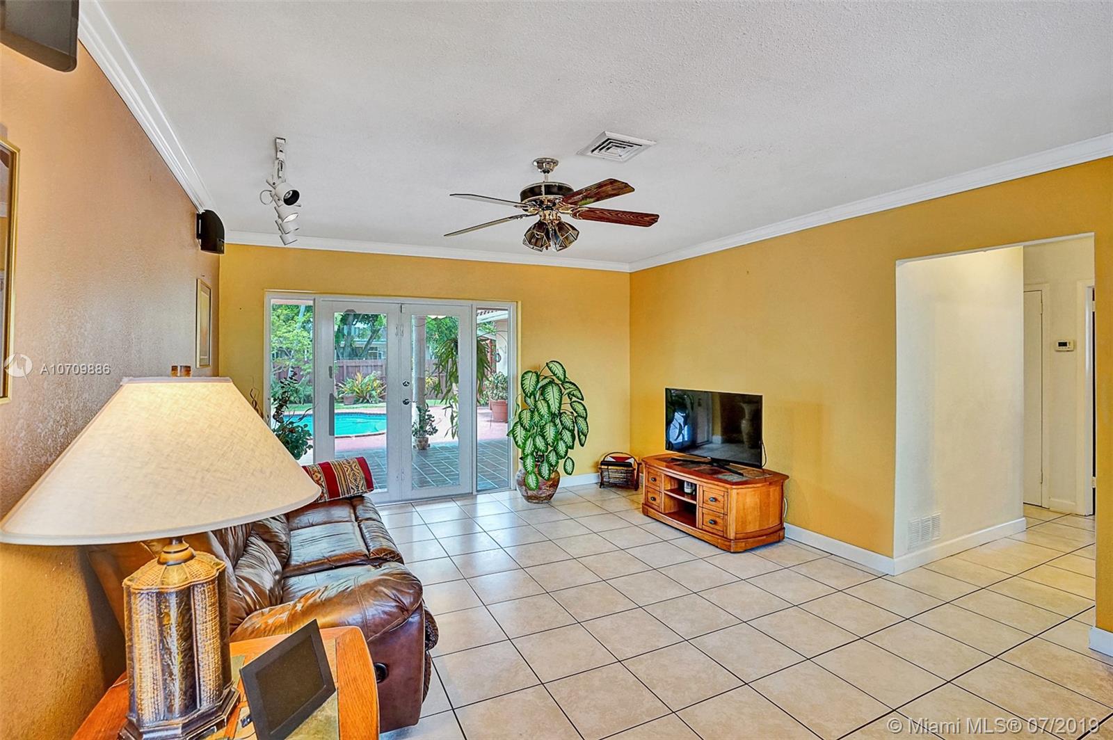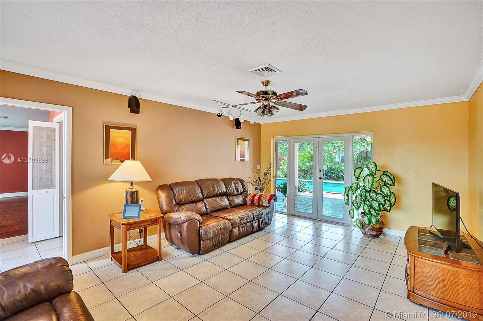 LIFETIME HOME IN A BEAUTIFUL SETTING! Here is the opportunity you’ve been waiting for in a great Hollywood Hills location. This home welcomes you with lots of natural light, and it has a well distributed layout. Featuring 3 beds/2 baths, formal living and dining room, updated kitchen, huge family room, utility-laundry room and 2 car garage. The kitchen features mica cabs, granite tops, pantry, beautiful pool area views and is big enough for a breakfast table. The pool area has a snack bar and a huge overhang perfect for entertaining family and friends. Storm ready with IMPACT WINDOWS installed in 2016 and ACCORDION SHUTTERS installed in 2012. In addition, Lush landscape backyard, stamp concrete circular driveway, 2014 central air and 2016 water heater. ADAM AND EVE NEVER HAD IT SO GOOD!