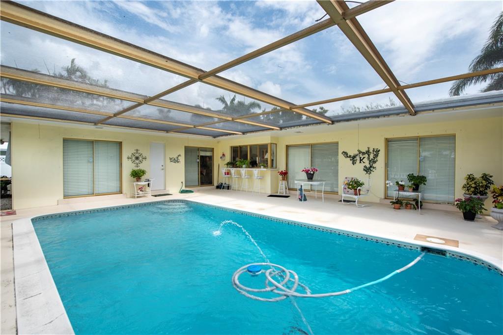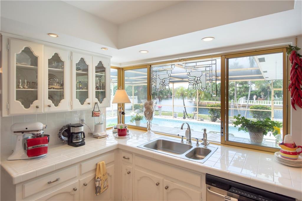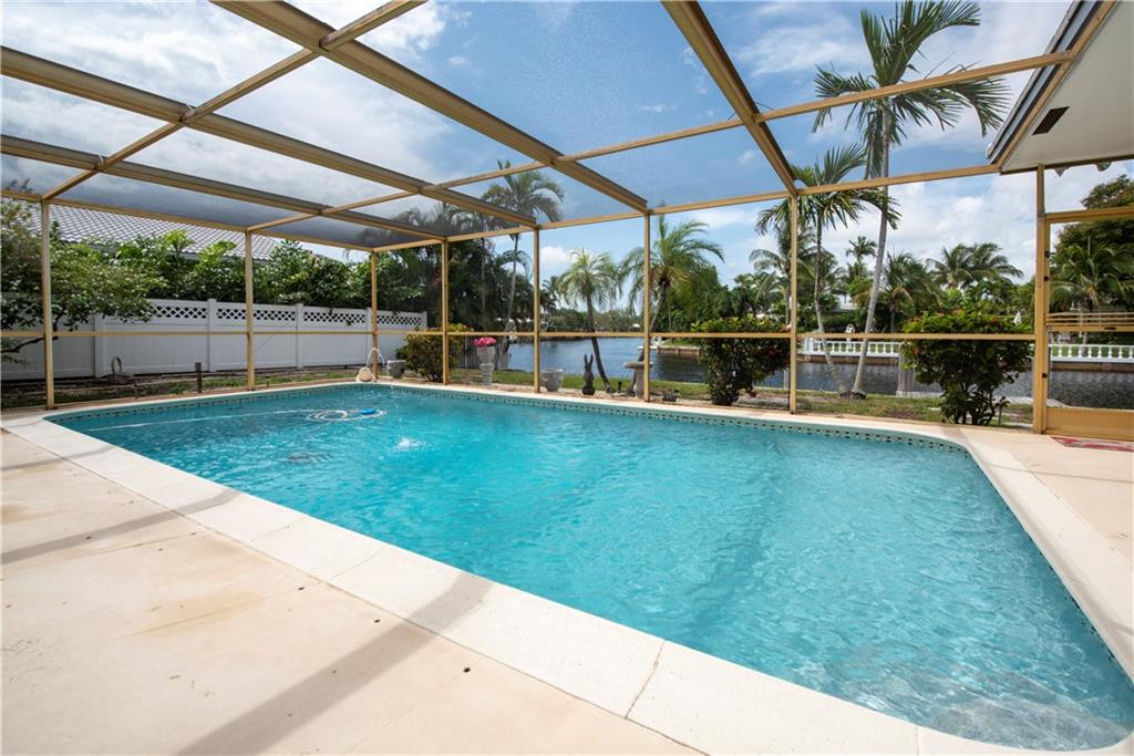 Immaculate 4/3 in the heart of The Landings! Bright, crisp, light-filled spaces, Southern exposure & long water views in 3 directions abound. Rutenberg split floor plan w/continuous neutral tile throughout. Updated kitchen w/stainless appliances & breakfast bar is the focal point of the home. Prepare gourmet meals while looking out at the water & enjoying company in the adjoining family room. Spacious master bedroom w/walk-in closet, en-suite bath & sliders open to the pool. 3 guest bedrooms - 1 of which has an en-suite bath/cabana bath & opens to pool. Screen enclosed pool w/large covered area for outdoor living. 80' of waterfront on wide canal w/long canal views, large turning basin & only 1 fixed bridge for idyllic boating setup. 2 car garage. Amazing location 1.1 mile from the beach!!