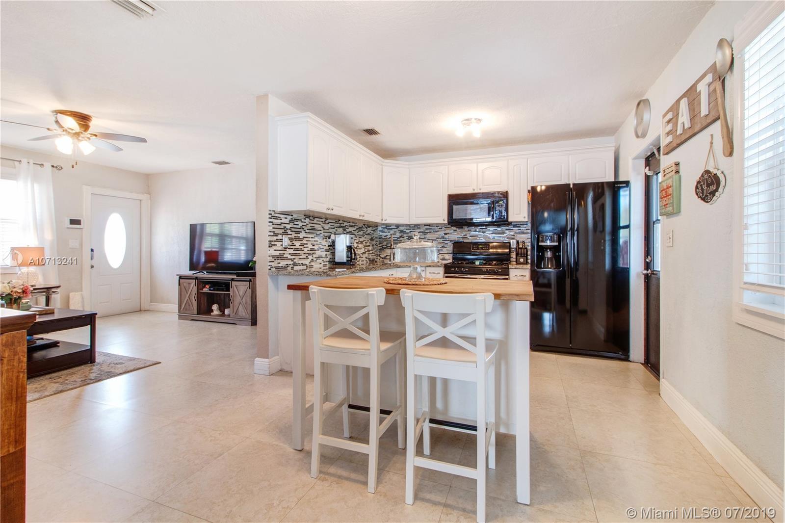 Great Starter Home on a corner lot with a circular driveway, newer pavers and lush landscaping! Fenced for privacy! This home offers many features... tile throughout, three living areas! Open Kitchen with granite countertops and tile backsplash! Walk in closet in the living room for lots of storage. Impact windows, tankless water heater, gas stove and washer and dryer runs on gas as well! Lots of parking! This home has really been taken care of and it is ready for the next buyer!