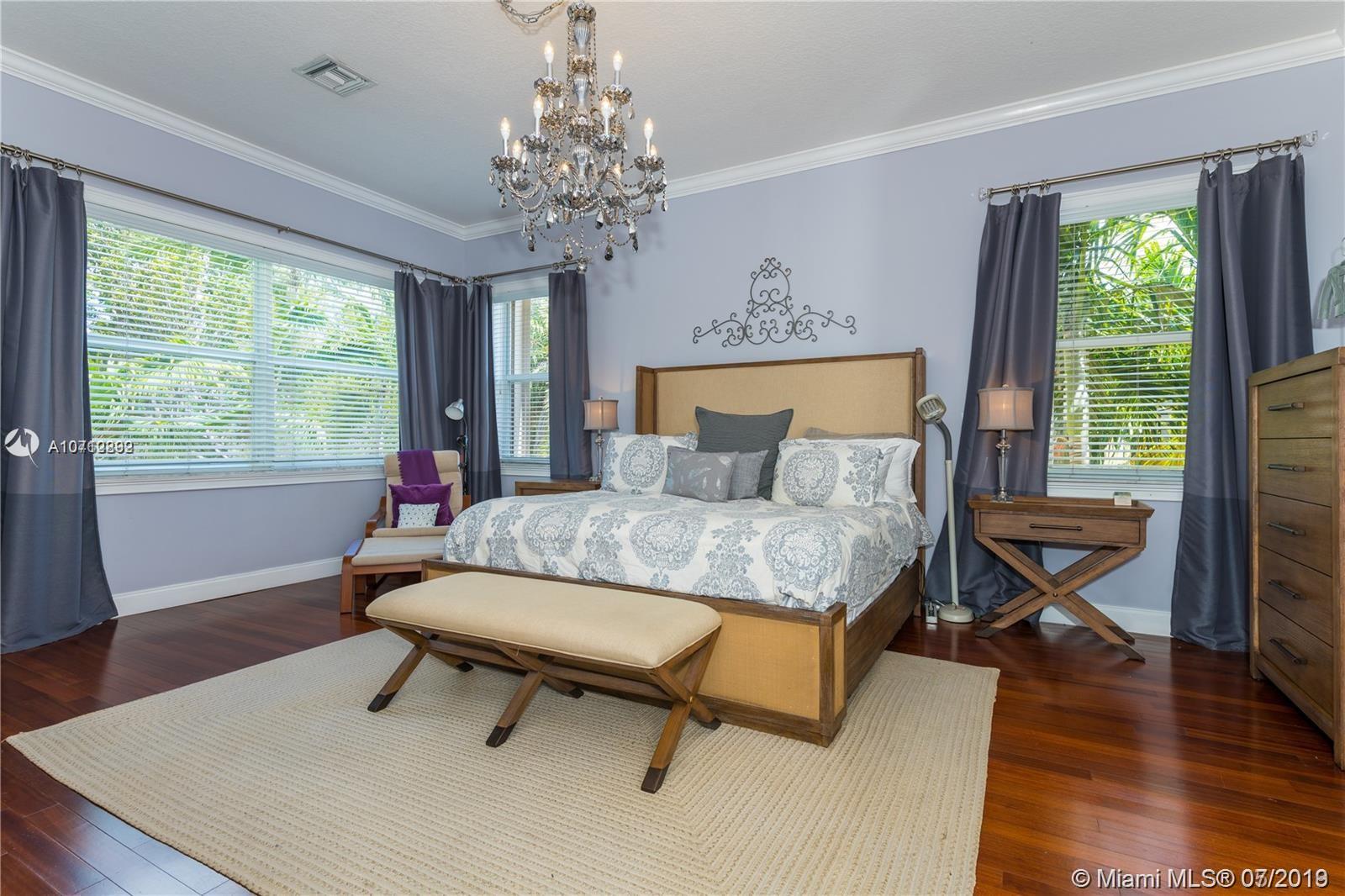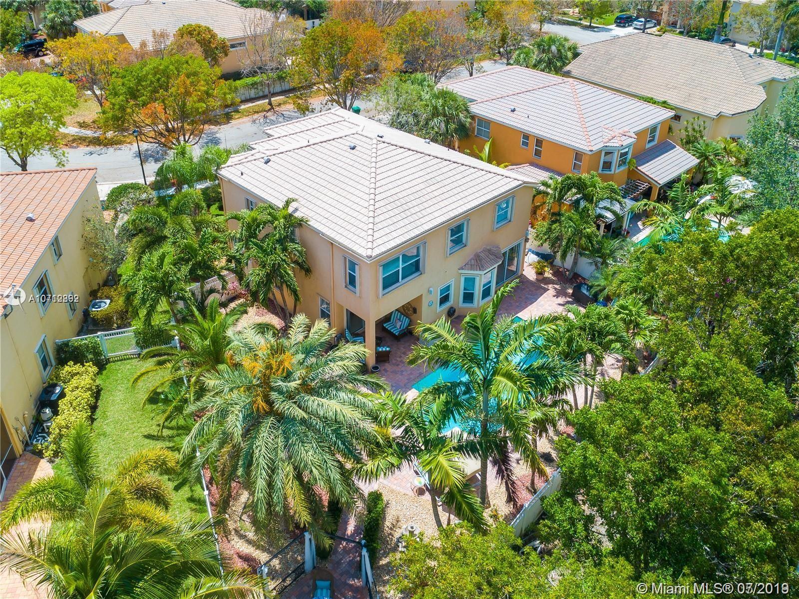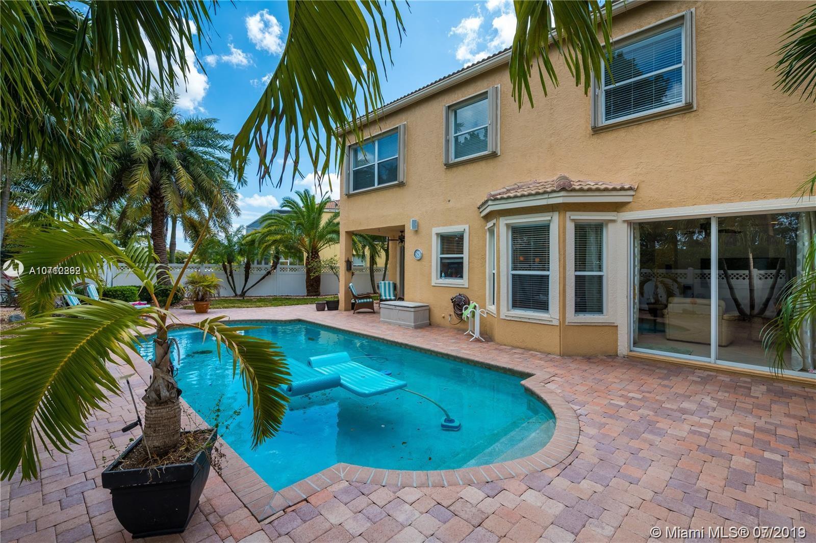 Rare opportunity to own this tastefully upgraded & impeccably maintained home by original owners. The property sits on an oversized lot with no rear neighbors. Surrounded by lush mature tropical trees the yard features a large paver patio and oversized pool which is perfect for entertaining & pool parties. The 1st-floor feature 24 inch porcelain tile, a large modern EIK with oversized center island in granite, the adjacent family room features surround sound, a new 1/2 bath on 1st fl, vaulted ceilings newer paint, drapes and more. Follow the grand circular stairs up and you will find hardwood floors, a renovated full bath, all of the large bedrooms including the elegant master suite. Located in resort style community w/ Tennis, Gym, Pool, basketball courts. 5th Bedroom taken as den option.