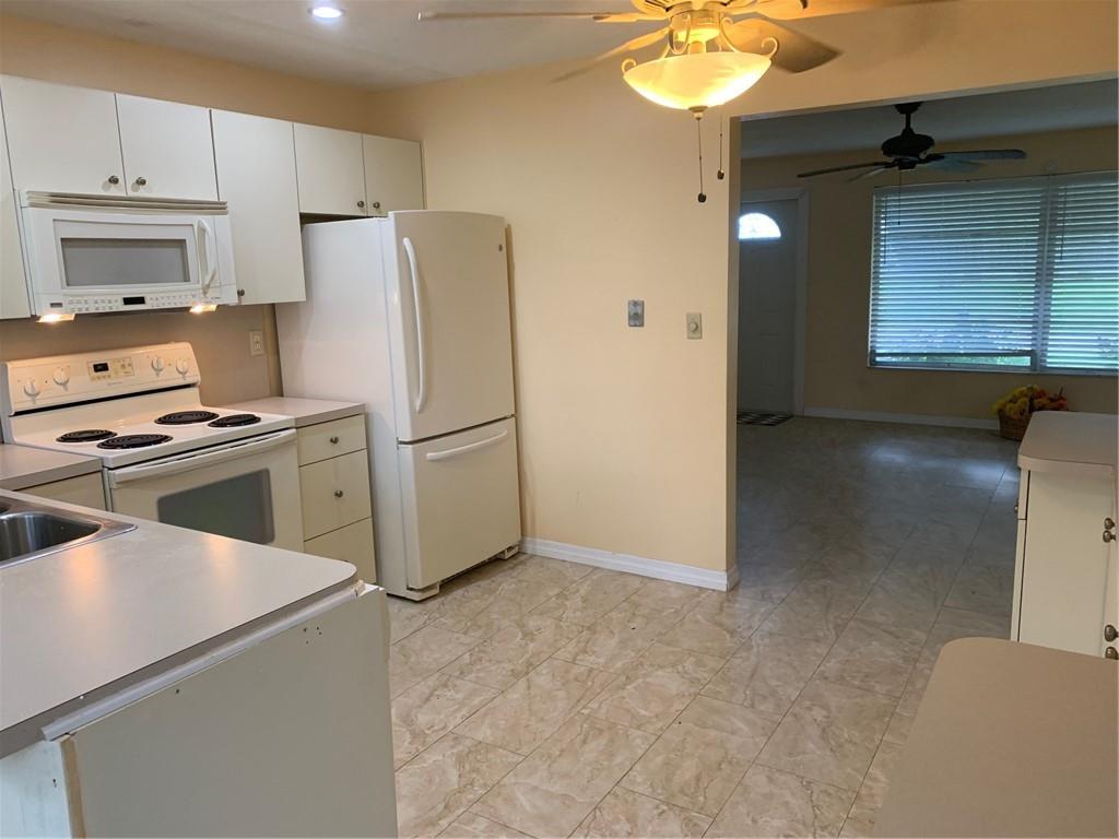 WOW! LOWEST PRICE, RENOVATED, BEAUTIFUL & CHARMING-NO LAND LEASE. ONE of the ACTIVE Clubhouses & Heated pools directly across street! Completely tiled throughout, newer kitchen-LOADS of cabinets for storage, LIGHT & BRIGHT Fla/Dining Room, REMODELED BATHROOM 3 yrs ago, INSIDE laundry (with permits!), TILED roof is approximately 10 yrs new. All windows have hurricane shutters, Leisureville offers a 9 hole golf course FREE to residence, 2 Clubhouses, 2 htd pools, Transportation to shopping, banks and eaterys. The maintenance covers your water, painting the home every 3 yrs, pressure cleaning roofs & lawn mowing. It is a fantastic community that is as active as you want it to be...for all year around or just for Season. Association states this is an over 55 Community