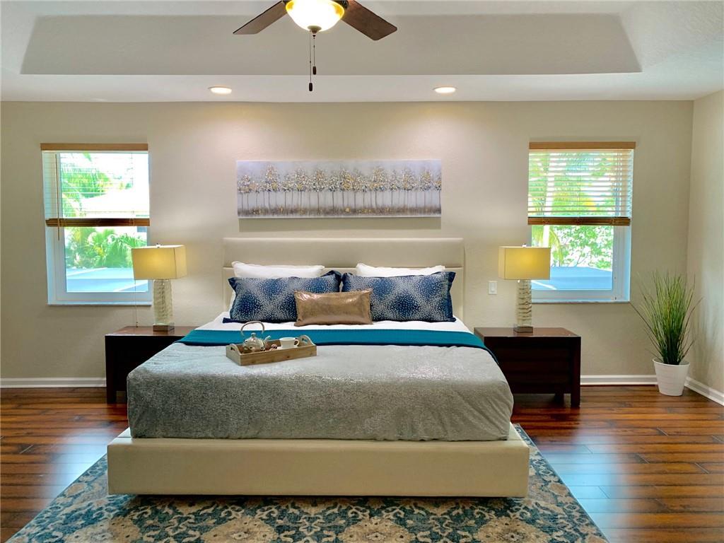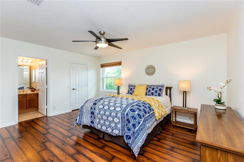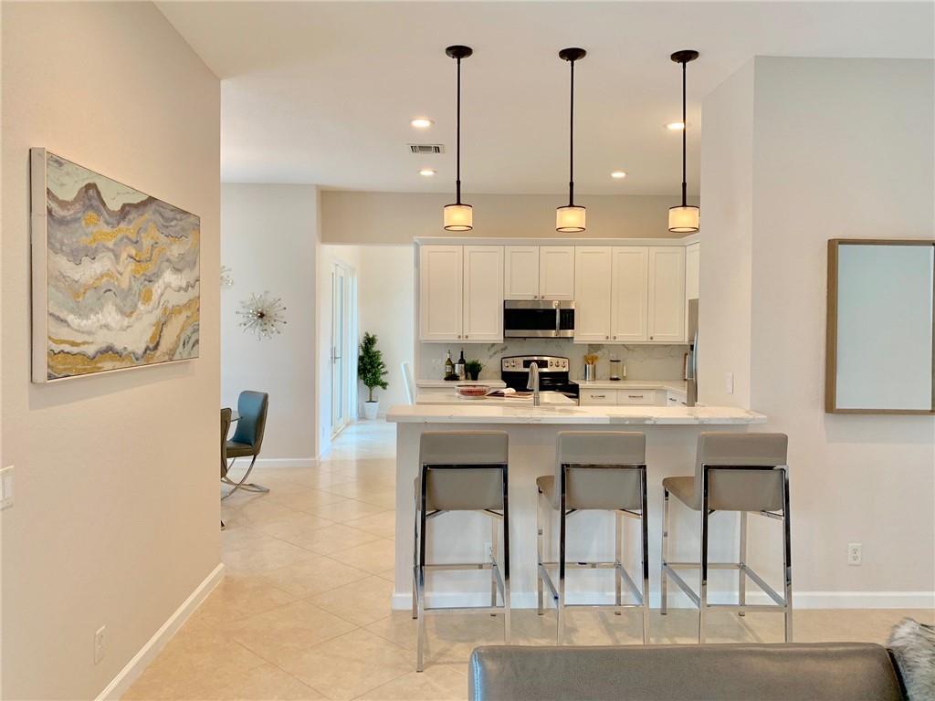 Walk in and be right at Home. The Beautiful new white wood cabinitry w/quartz counters, stainless steel appliances and walk-in pantry it's beautiful w/the dining area, all overlooking a large family room IMPACT GLASS WINDOWS AND DOORS THROUHOUT THE HOME. Tile throughout living areas, laminate on 2nd floor. First floor bedroom w/walk-in closet & separate bath is perfect for guests, office or playroom. Oversized master bedroom w huge walk-in closet. Three secondary bedrooms off of the loft have large closets. Full cabana bath for guests and pool convenience. Large screened patio w/oversized pool & spa. New spa/pool heater is perfect all year long enjoyment. New landscaping maximizing the curb appeal and back yard has plenty of play area.