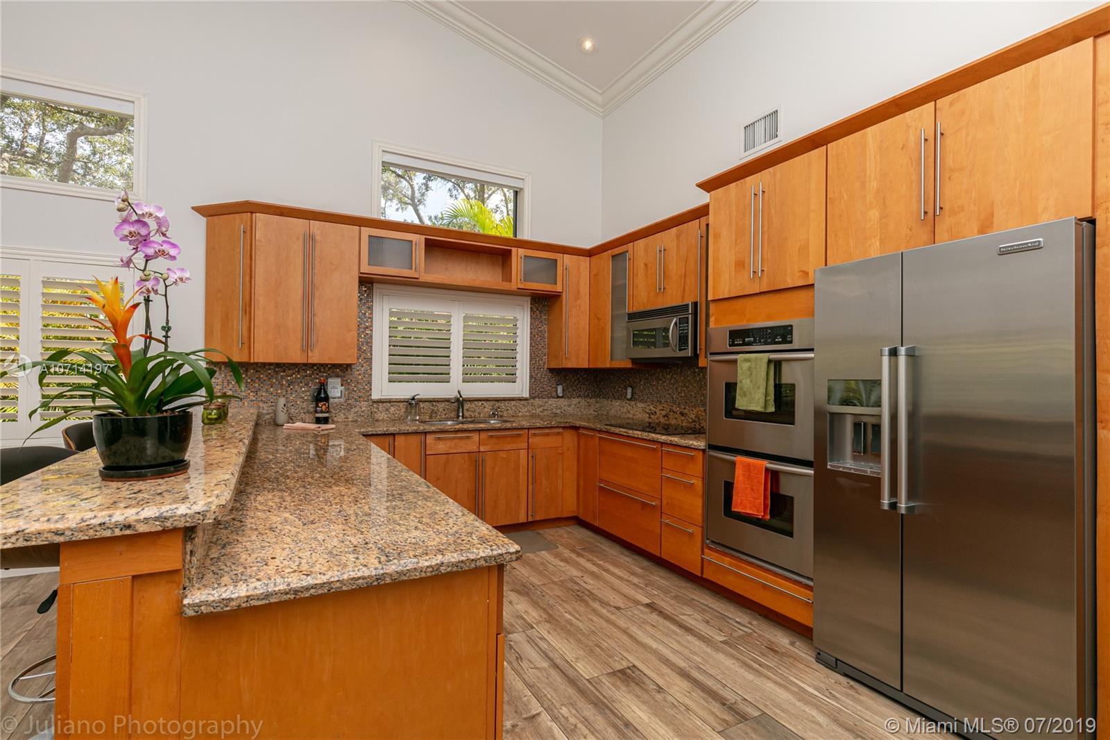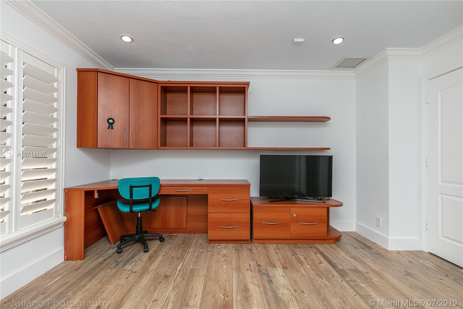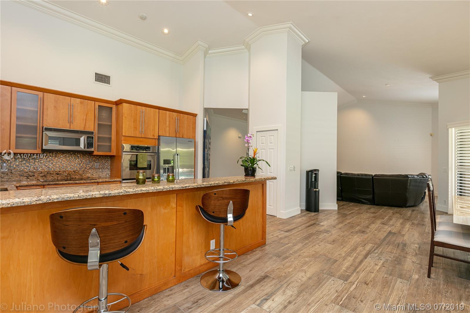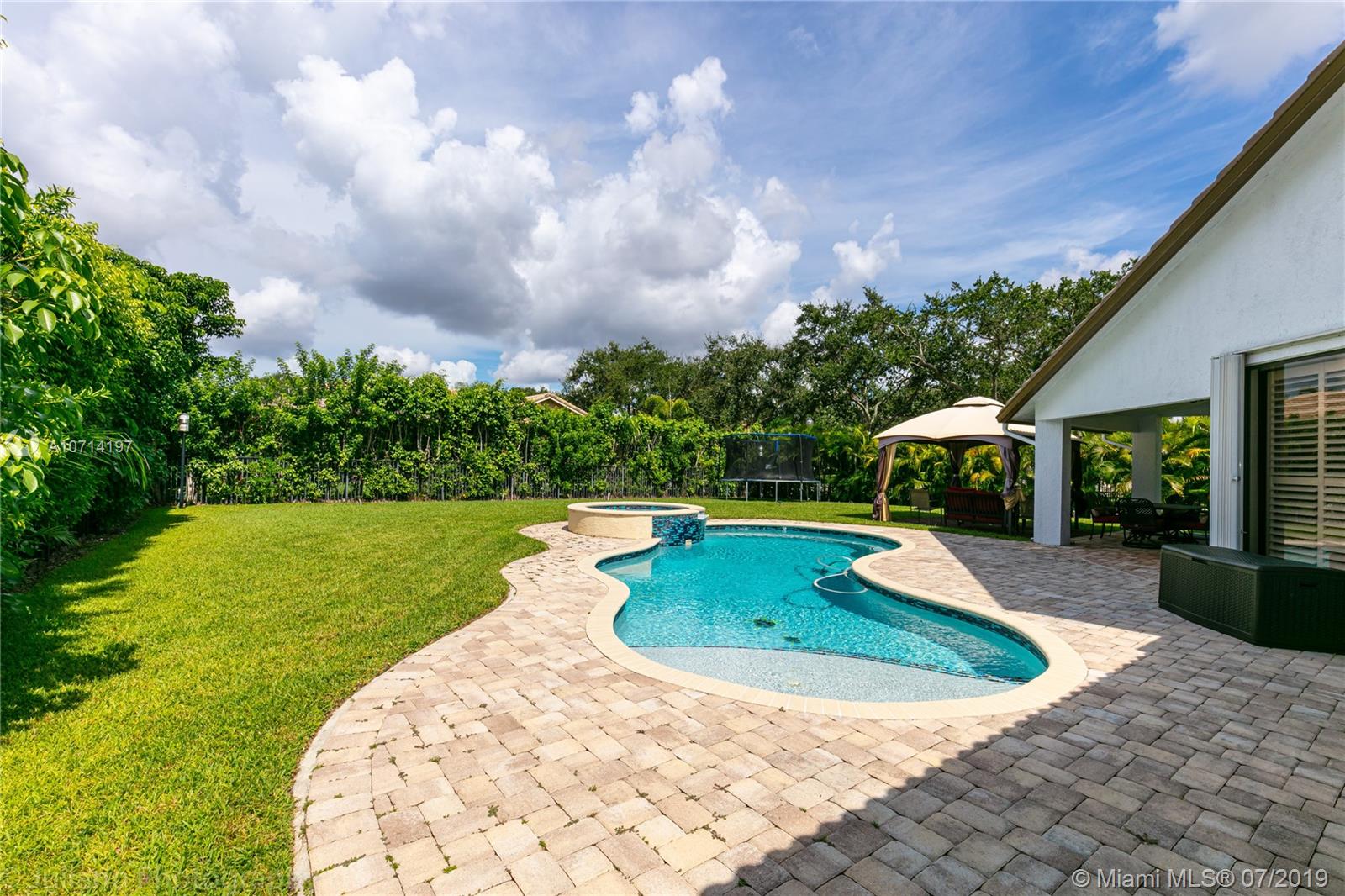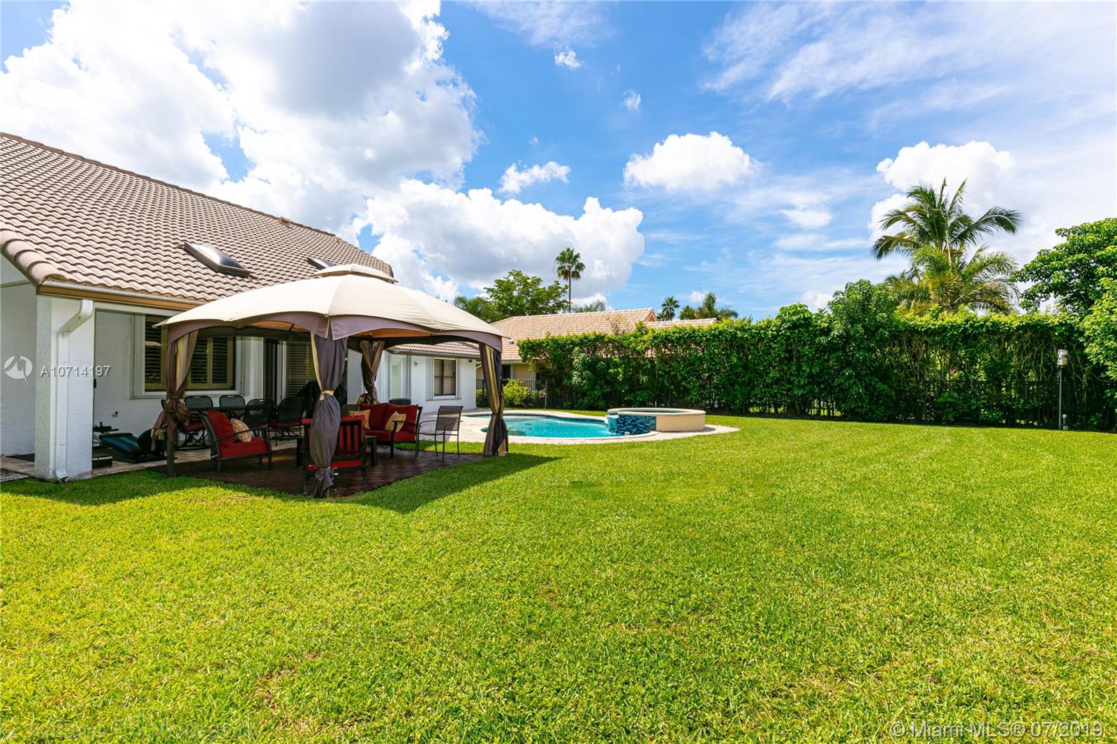 Beautiful house of 4BR/3BA on a private 1/3 of an acre corner lot, Saltwater pool with heater and Jacuzzi. Light, bright & open floor plan. Real wood flooring throughout the social areas, office and in the bedrooms. Upgraded kitchen with wood cabinetry, S/S Kitchenaid appliances & granite counters. Upgraded Bathrooms. Custom closet cabinetry in all rooms. Accordion shutters on all the windows. Custom closet cabinetry in all rooms. 2 air conditioner with 1 year of use. Front door against impact. Roof with 10 years of use. It is a must see!!!
