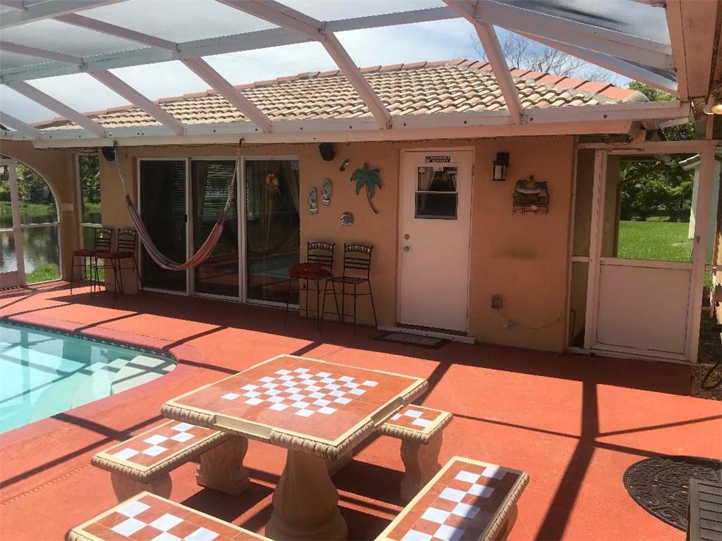 Absolutely beautiful and spotless lakefront home. The 4 bedroom and 3 bath home with a pool awaits you in an immaculate and highly sought after community with a fully permitted pool house/guest house/man cave with a living room/kitchen and bathroom. It also has a separate A/C unit. The main house has a large dining room and separate formal living room, a large Florida room with built in TV area and breakfast nook. Lots of counter space in kitchen. Master suite is split from the other bedrooms for privacy. The pool is screened in and overlooks the lake. A/C unit is only 6 months old. There is a community pool and tennis courts. Roads were recently paved with no assessment to residents. Raise your family in this great community with security gates. HOA is only $78 per month.