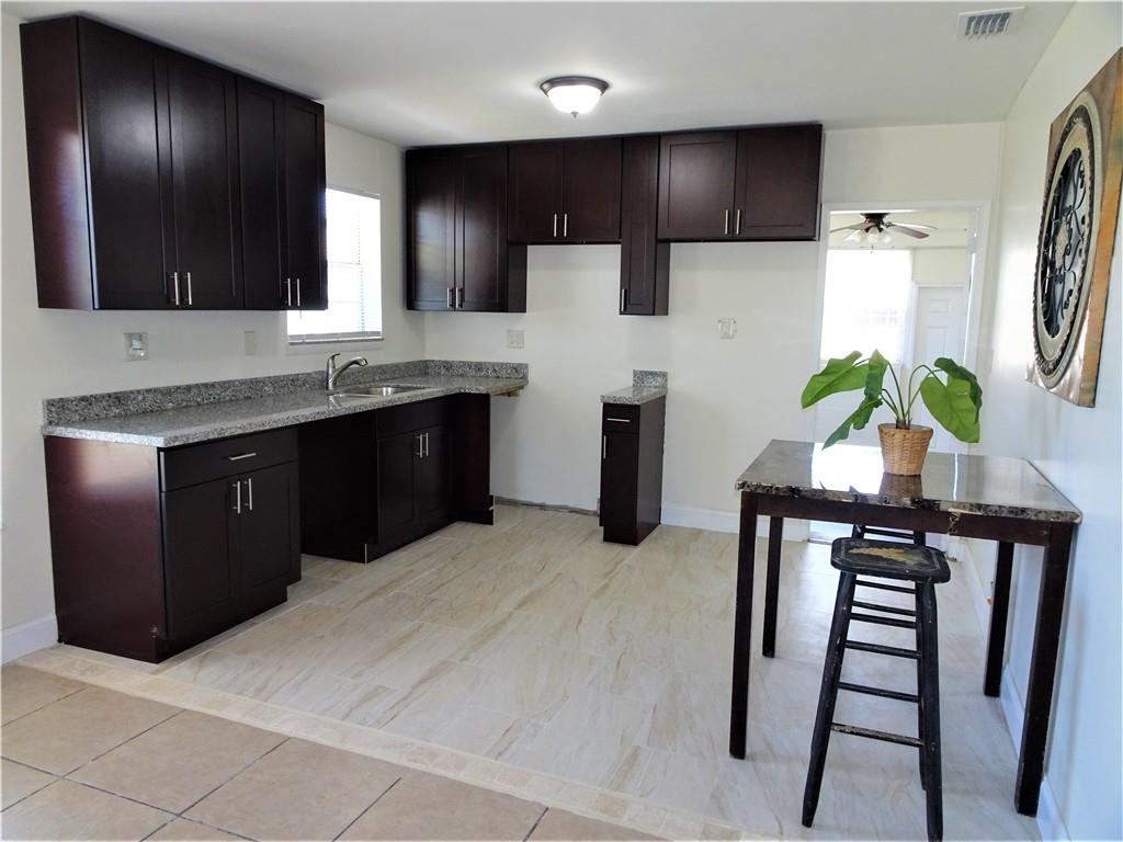 Nicely updated and represented in an East Deerfield Beach neighborhood. This home has many features including; 42in Espresso Wood Kitchen Cabinetry, Brazilian Counter-tops, Stainless Steel Appliances to be installed prior to closing, newer shingle roof, Central A/C is newer (2017), new floors, updated bathrooms, fresh paint in and out, large private backyard with room for a pool, no HOA, and an open floor plan.
