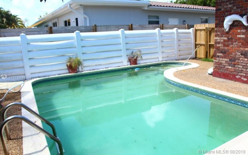 Property overview- East of Federal Highway and close to shopping, entertainment and the beach. Home's exterior is maintenance free, real brick. It contains 3 Bedrooms and 2 Baths. The 19 X 20 pool is framed in mature plantings which provide the ultimate in privacy. This is a fully equipped natural gas property including a newer GE Range, Tagaki On Demand Water Heater, Clothes Dryer and an 11 Kw Generac generator sized to run the entire house during an electrical outage. The interior. was recently painted. The kitchen is eat-in and there is also a dining area. It also has interior and the exterior Florida room is screened in. The exterior one opens onto the pool. The three bedrooms are large and have high ceilings. There are two driveways providing ample parking.