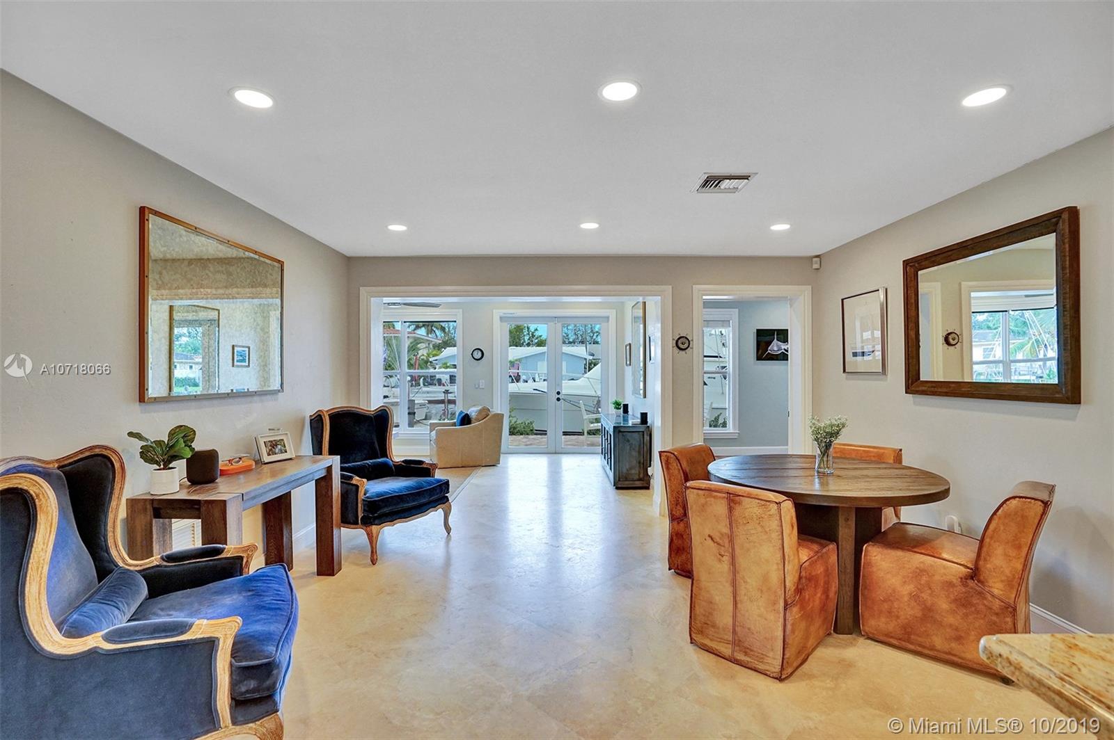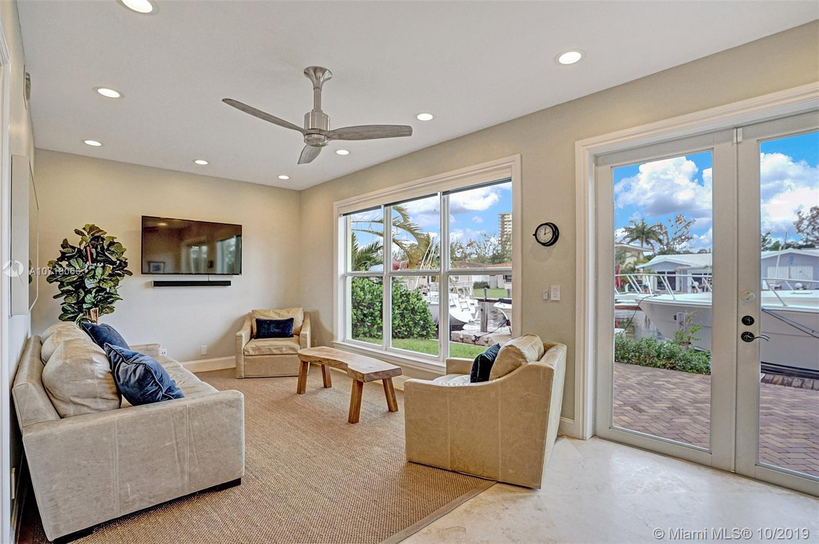 Deep water, ocean access with NO FIXED BRIDGES. Minutes to ICW. 60ft of beautiful southern exposure. Tastefully remodeled 3BR/2BA split layout and garage. Large new $180K addition - living room and master suite - fully permitted. Structurally overbuilt for future 2nd floor expansion. Travertine tile in living spaces and Brazilian oak wood flooring in bedrooms. Hurricane impact windows and doors incl. garage door, brand new tile roof with hurricane strapping, upgraded electric service (200 Amp), extensive outdoor landscaping and LED lighting, 20/30/50 Amp electric and wtr service at dock, tankless wtr heater, large backyard patio and room for a small pool - a true TURNKEY property. Quiet dead end street with its own intracoastal waterway facing park in a fantastic neighborhood.
