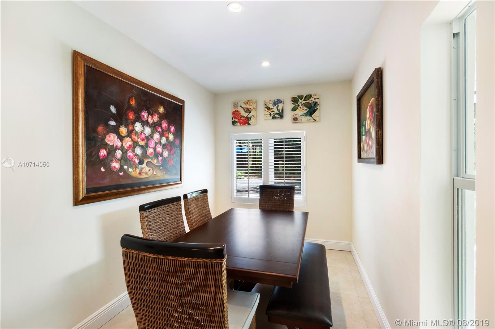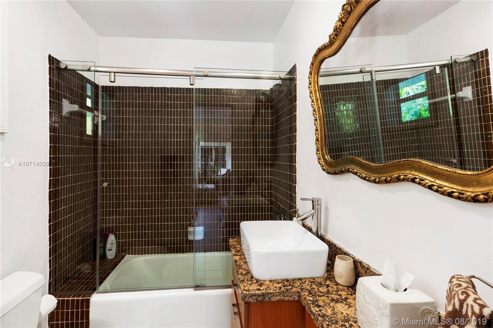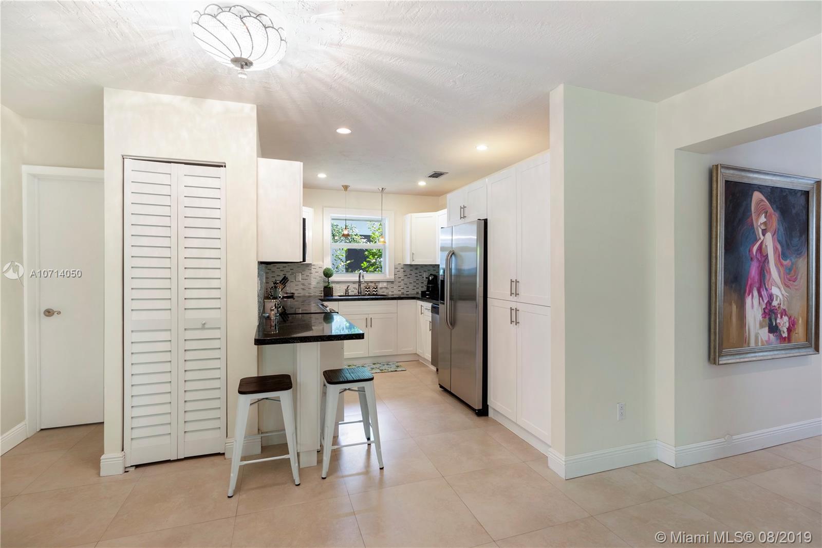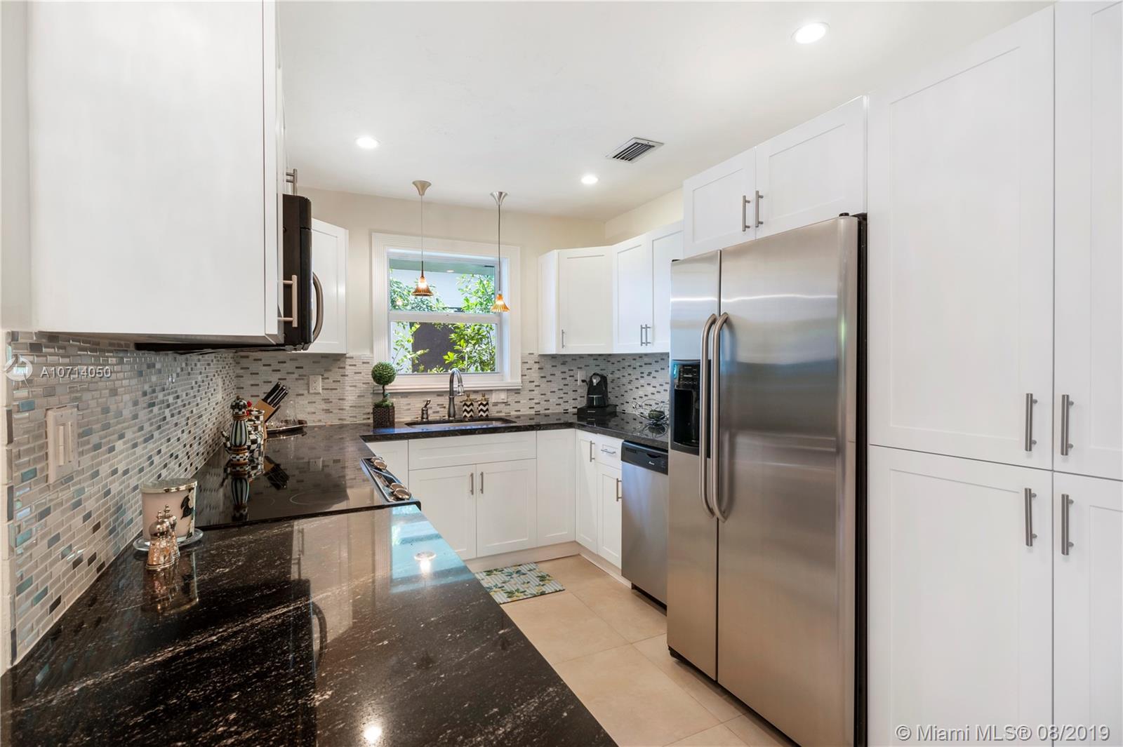 Spacious and roomy 3 bedroom 3 bath home in Coral Gables. Located on lovely Tree lined Murcia Avenue. Home has soft cream tile floors throughout. Open kitchen featuring G.E. Stainless steel appliance package, beautiful Black Granite counters, Gorgeous white cabinetry w/ pull out drawers and ample storage space, Glass tile backsplash. All 3 bedrooms are large and have full en-suite bathrooms, w/ excellent closet space. Master bedroom feels like it's own private retreat. Formal dining area, recessed lighting throughout. Impact windows and doors, concrete tile roof. 1 car garage. Two courtyards inside home co-mingle exterior views to the interior living areas which pervade home with light and serenity. Right off of Alhambra circle. Check out HD video tour! This one will go quickly.