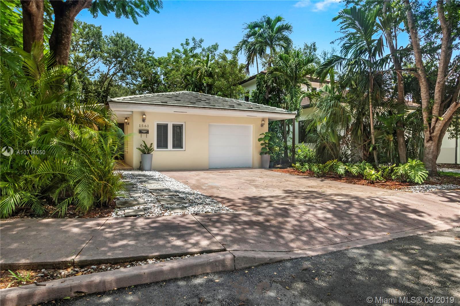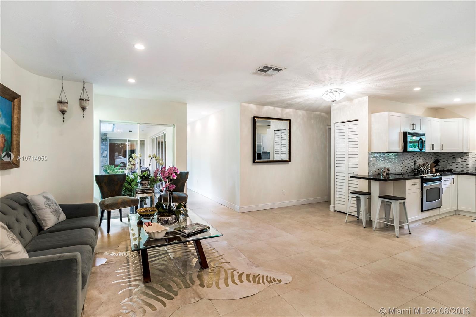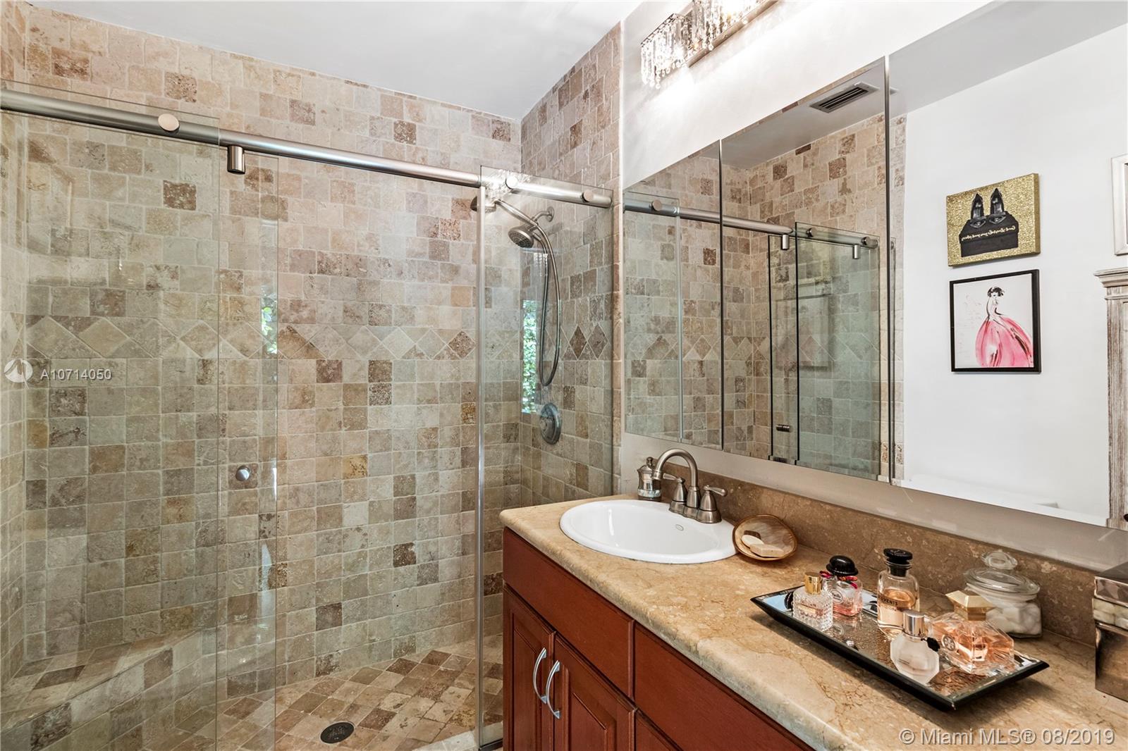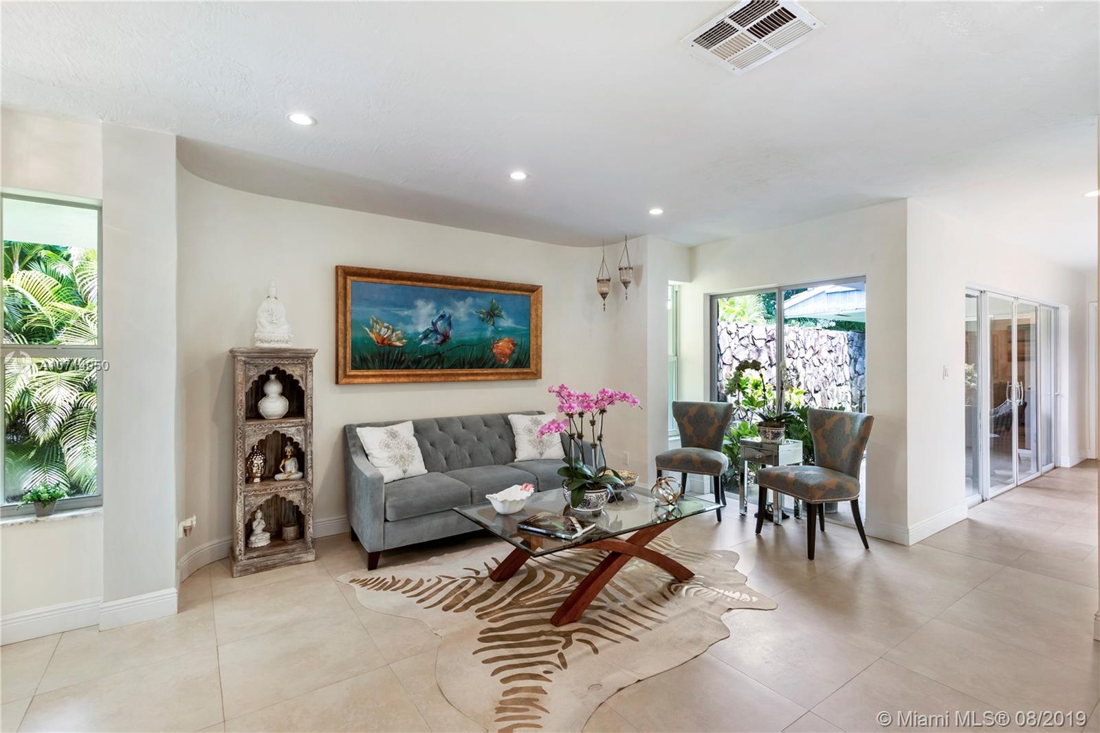 Spacious and roomy 3 bedroom 3 bath home in Coral Gables. Located on lovely Tree lined Murcia Avenue. Home has soft cream tile floors throughout. Open kitchen featuring G.E. Stainless steel appliance package, beautiful Black Granite counters, Gorgeous white cabinetry w/ pull out drawers and ample storage space, Glass tile backsplash. All 3 bedrooms are large and have full en-suite bathrooms, w/ excellent closet space. Master bedroom feels like it's own private retreat. Formal dining area, recessed lighting throughout. Impact windows and doors, concrete tile roof. 1 car garage. Two courtyards inside home co-mingle exterior views to the interior living areas which pervade home with light and serenity. Right off of Alhambra circle. Check out HD video tour! This one will go quickly.