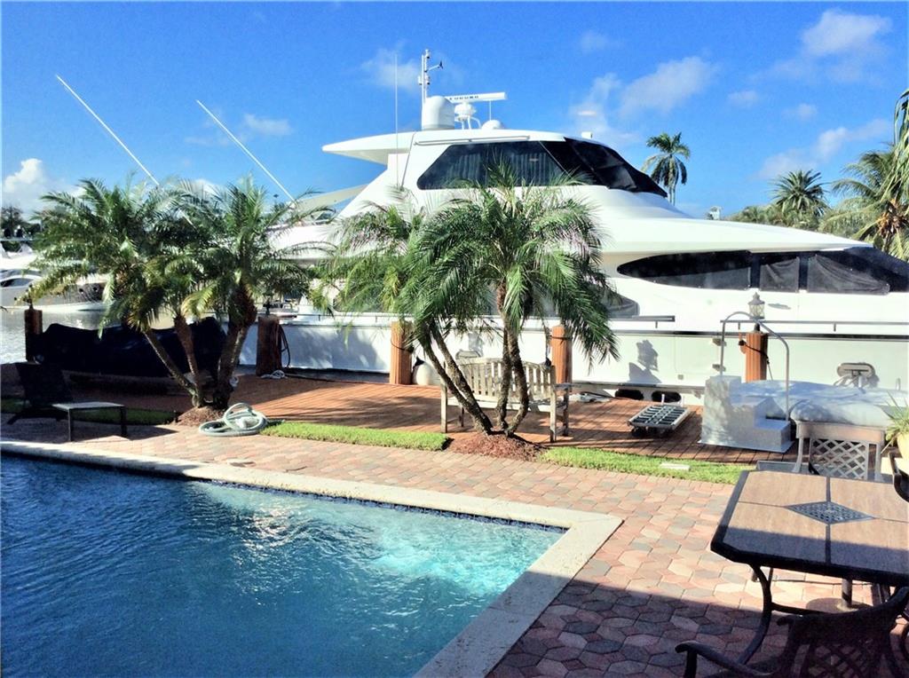 Gorgeous Mediterranean with 90' dock located in private Rio Vista. If you own a big yacht (up-to 82'), this is it! Home is built on deep water on a very wide canal with ocean access within 10mins. Fine finishes, including your own built-in aquarium viewable from the Master Br. & dining area, breakfast bar and SS top-of-the-line appliances. 3Br.+office/den & 4 full Bath with marble and wood flooring throughout and a garage that will hold 2 cars with a circular driveway able to accommodate up-to 4 additional vehicles. Backyard designed for entertaining with its pool, tiki bar and BBQ area. Camera surveillance throughout the property with inviting, carefully landscaped grounds. This is a boater's dream...A MUST SEE!!