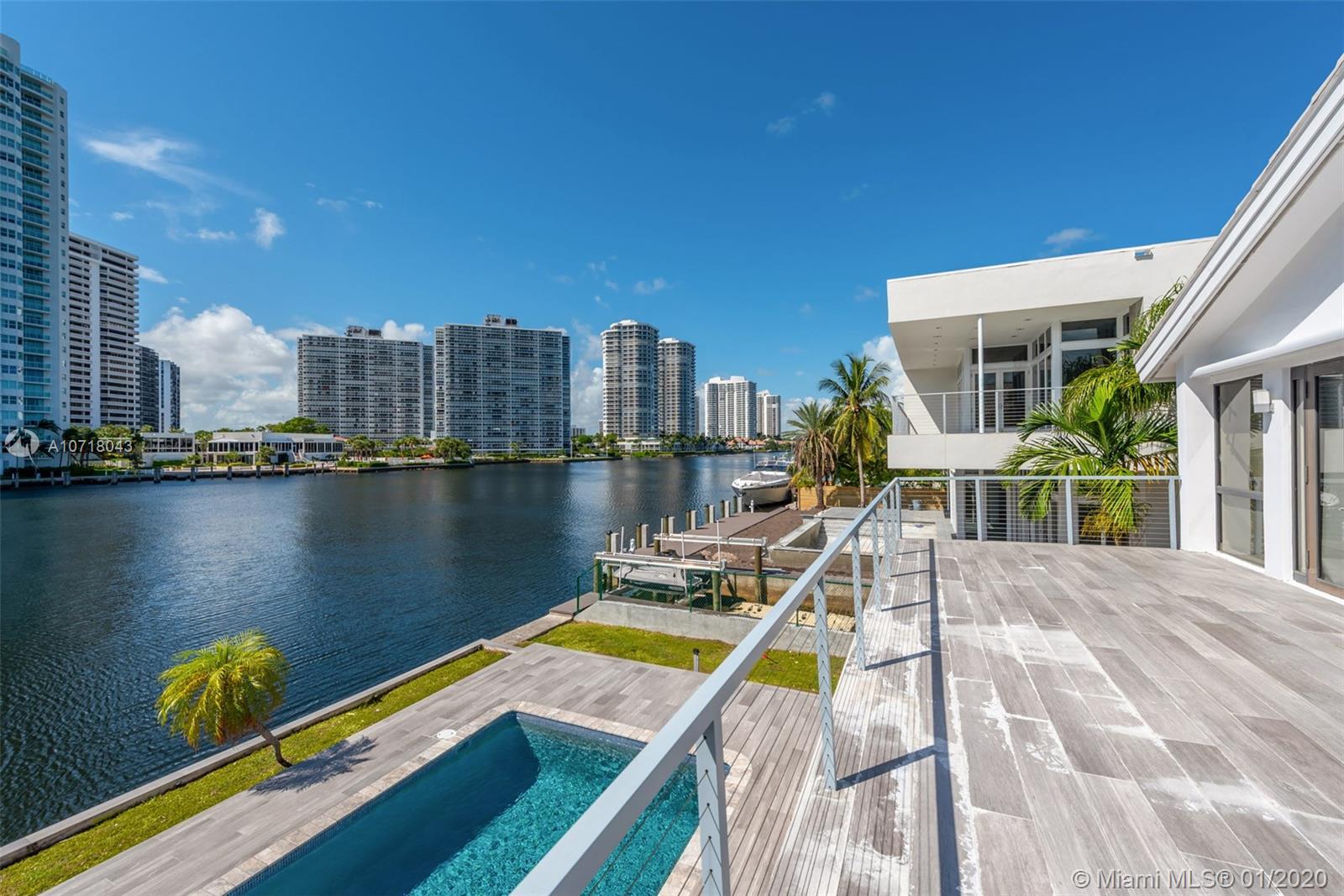 This fully renovated, turn-key intracoastal gem sits on 100 ft of prime water frontage, offers 4,751 sq ft under AC, four bedrooms + den, an open floor-plan, high ceilings, great natural light and high end finishes. The 12,600 sq ft lot includes a resort-style backyard and stunning panoramic views. One-of-a-kind opportunity to live in the premier Center Island and enjoy the unmatched amenities of the secure and exclusive neighborhood of Golden Beach. Amenities include private beach club, private police force, tennis courts/playgrounds, gym facility and many more.