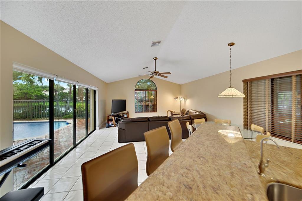 Stunning 4-Bed/2.5 Bath pool home with breathtaking lake views in the Sunset Springs community of Weston. The model includes 2 car garage, formal living and dining, family room, light and bright custom kitchen with tall maple cabinets, granite counter-tops+back-splash, complete w/ an island, counter-seats, and serene breakfast area with vistas to the pool. Neutral tile throughout with laminate flooring in the Master Suite and three additional bedrooms. Enjoy the serene outdoor living with picturesque sunset, children splashing in the pool, as you enjoy a cool glass of lemonade with family & friends. Discover fun activities at Tequesta State Park or pop over to shop at Weston Town Center. Ranked #1 as best town for Families, Weston epitomizes "Life Well-Lived". [Roof/2017 & Tankless W/H]