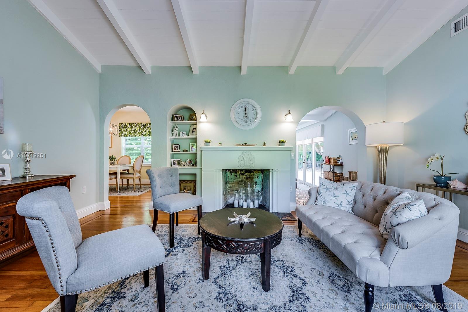Charming and comfortable this 1930's home has been lovingly renovated. Cathedral ceilings, original hardwood flrs and wood burning f/p create an irresistible charm in the liv rm, perfect place to entertain or read a good book. Renovated, open concept kitchen/dining w/ marble counter tops and stainless appl opens to a roomy window filled fam rm with original quarry tile floors that overlooks the patio and lovely landscaped backyard. 3 bedrooms include a lovely master w/ on-suite master bath. Walk to downtown Miami Shores, weekend farmers market and concerts in the park. Some upgrades include: 2 months new roof, updated electrical, new interior lighting, new washer/dryer, custom window treatments, new A/C. Liv area sf 1,544, Adj sf 1,663 (incl 50% garage/33% covered porch)Total sfl 1,782