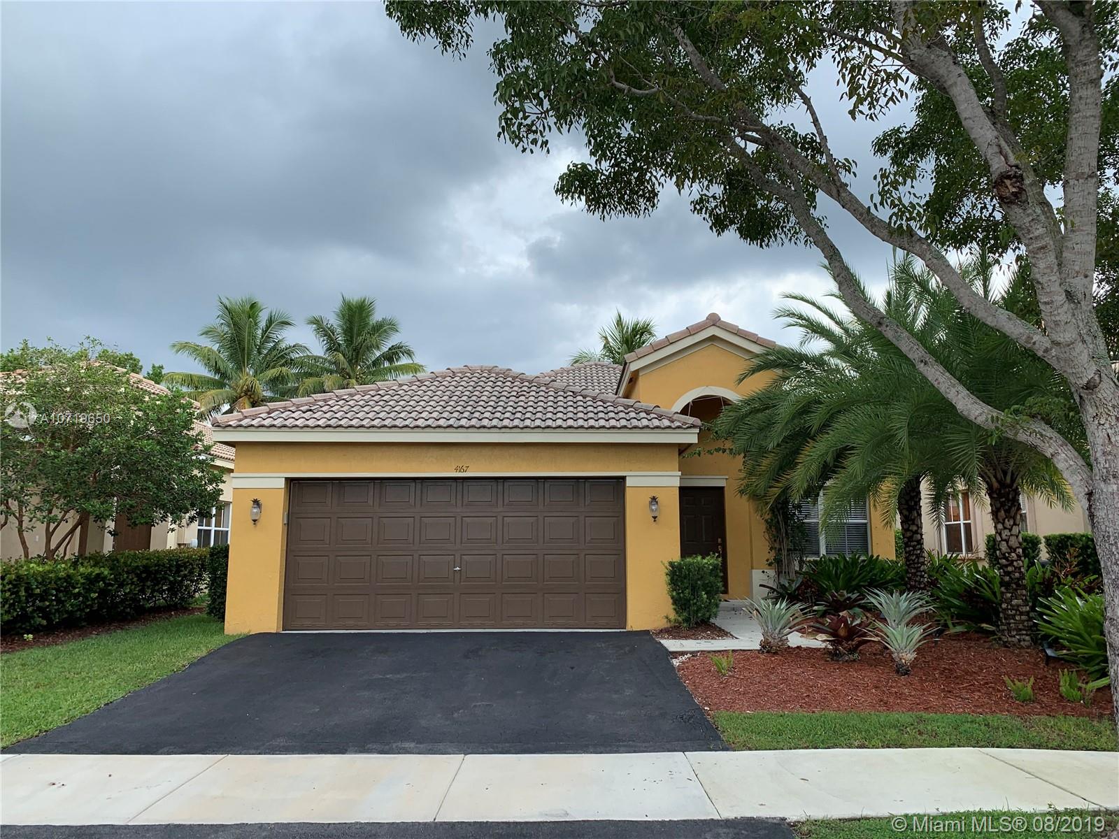 Welcome home! Beautifully maintained home located in the highly sought after community of The Ridges. This immaculate home features 3 bedrooms and 2 bathrooms, ceramic tile throughout, recessed lighting, stainless steel appliances, high ceilings, master bath with double sinks, separate shower, roman tub, screened-in covered back patio, hurricane shutters, crown moldings and baseboards, newly landscaped with gorgeous palm trees. This community offers lots of amenities including a lap pool, kids pool, playground, basketball court, gated community with guard, and much more. Very close to all rated A schools. This spotless home is priced to sell fast!