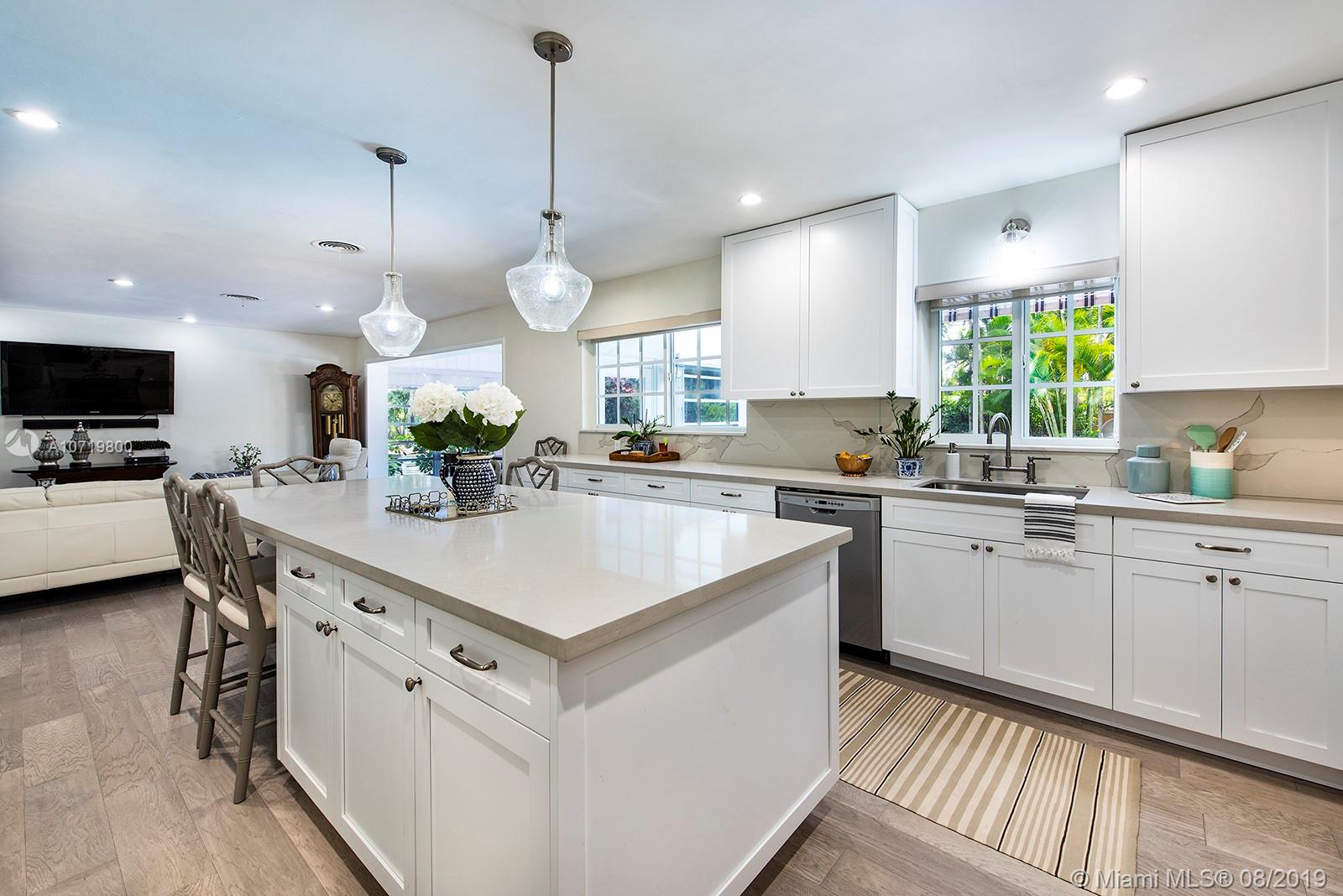 Beautiful home in an excellent location, bring your toothbrush. Formal entry and open Spacious floor plan with lots of natural light. 2019, State of the art kitchen with large center island, white marble backsplash and quartz counter tops and new appliances. Impact windows, updated plumbing and electric, Lenox a/c 2 years new, Hardwood floors throughout. updated baths and much more! Backyard is fully fenced with lovely exterior covered patio and inviting pool/patio area,new drain field. Conveniently located within walking distance to community center and Biscayne Bay. As per tax roll, Liv area sf 1,717, Adj sf 1,956 (includes 50% of garage), Total sf 2,195