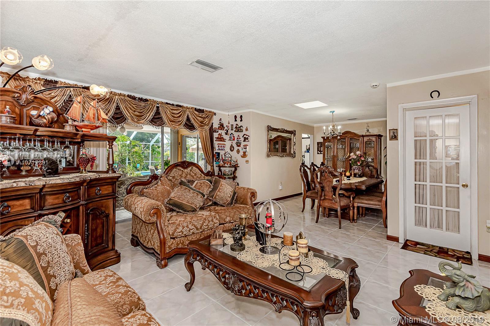 Beautiful Lakefront house 3 bedroom 2 bathroom gem in the Heart of Miramar. House features include bright floor plan, Formal Living, Dining, Updated Kitchen with wood cabinets, SS Appliances, Granite Counter Tops and Breakfast area outside awaits a pool, an Exclusive covered terrace overlooking Pool with Serene Lake Views, Huge yard with Fruit Trees. Nestled at the end of a Private Road. Roof Less than 1 year old, Accordion Shutters throughout. Garage converted into an Amazing Family Room Great for Entertaining. NO HOA!!!