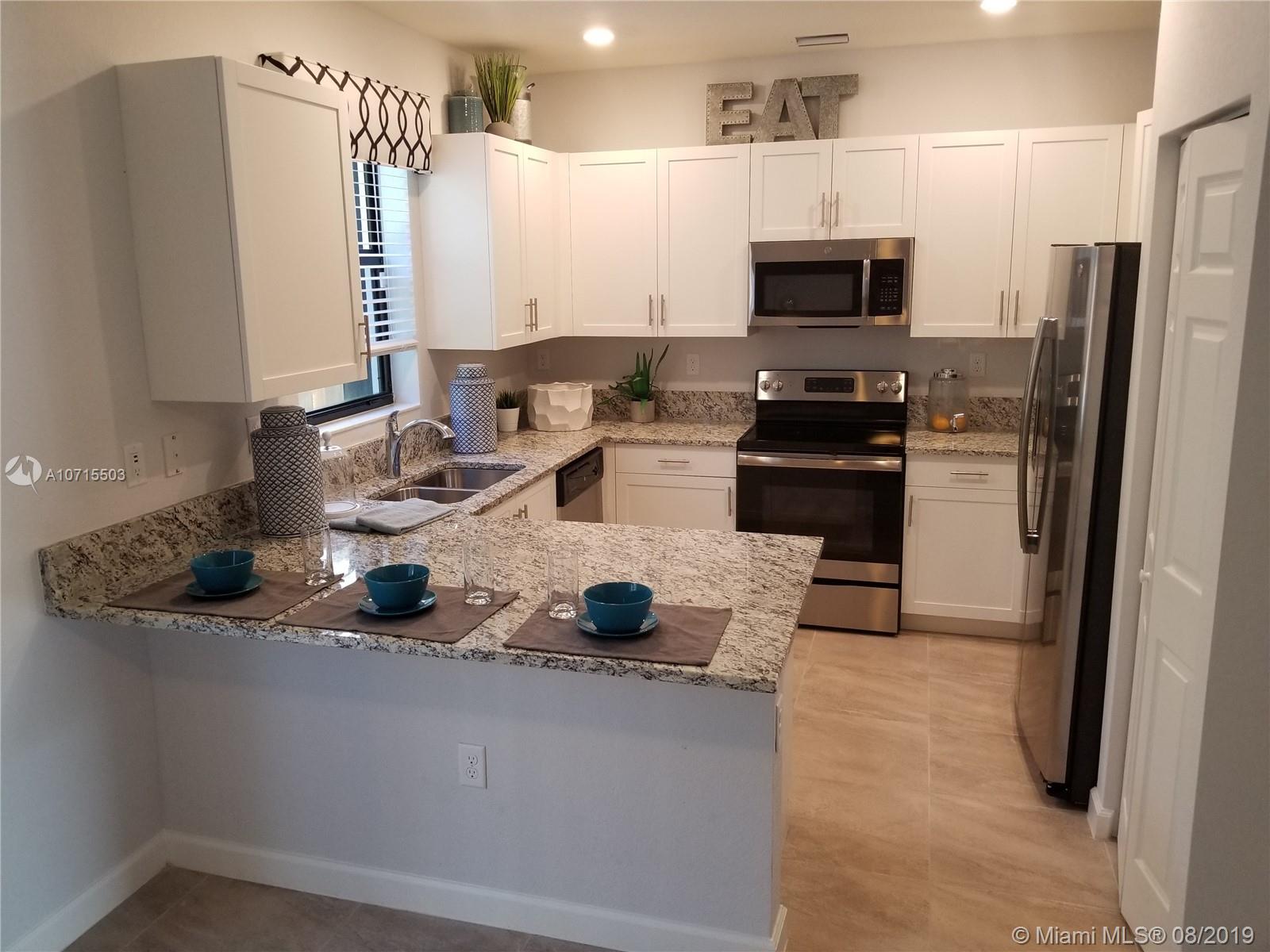 Large, New construction townhome in Davie. Located close to Nova Southeastern and Broward College. Granite counter tops in your kitchen and modern bathrooms finishes. Private, fenced backyard. Wi-Fi certified home with Washer and Dryer upstairs! Easy to show and pets are welcome. Amazon Alexa equipped home. See attachment for full list of Amazon equipment, over $20k! Community Pool. Owner will help with closing costs.