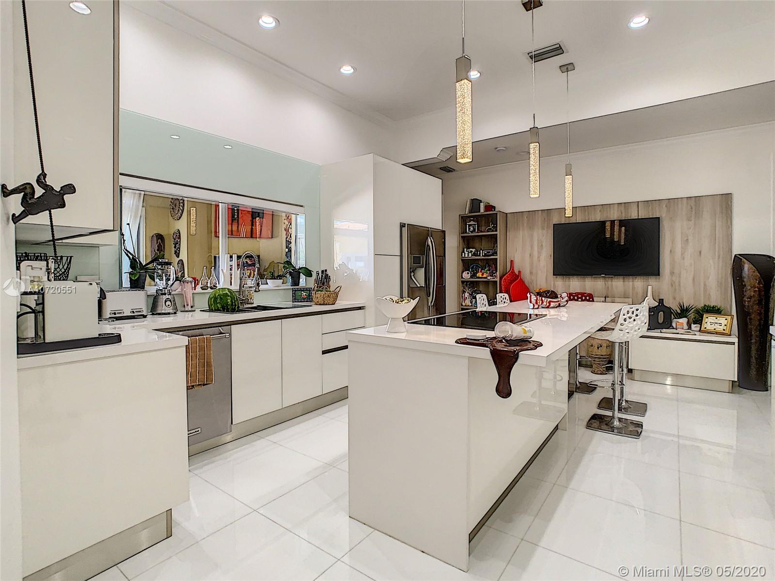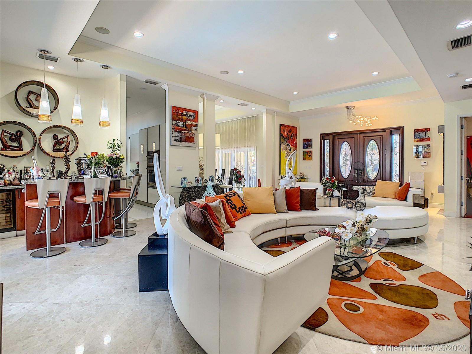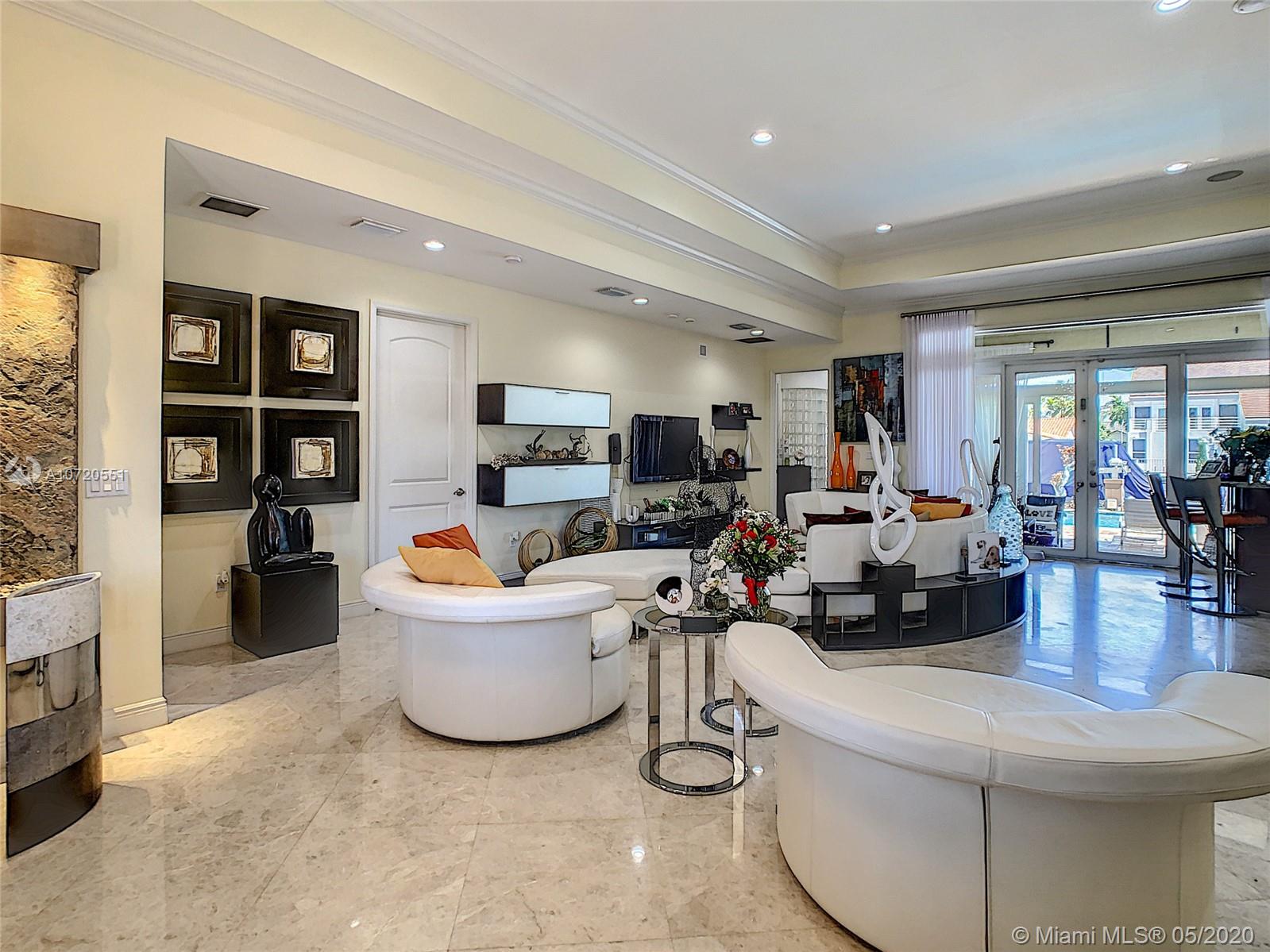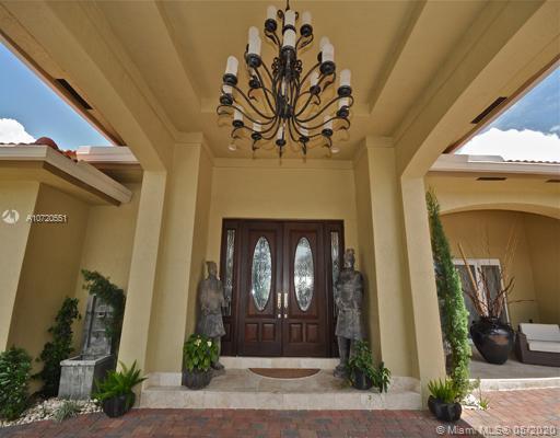 Gorgeous Custom build one Story Waterfront Home, marble and porcelain floors, Impact windows, Dream Italian design kitchen and a second kitchen at the family, 4 bedrooms, 3 bath with great Driveway at entrance. 80' water frontage with no fixes bridges. Automatic lift for a 30' boat and 2 others for jet sky .YACHTMANS DREAM IN GATED COMMUNITY WITH A RATED SCHOOLS Easy to show