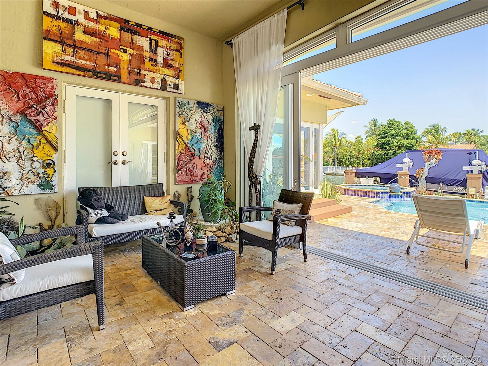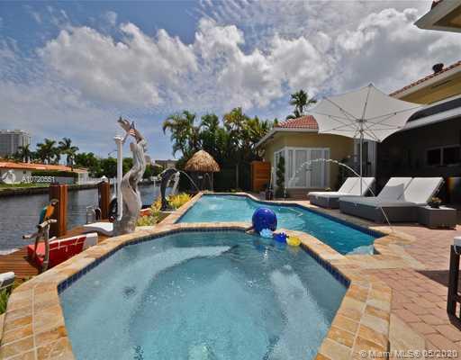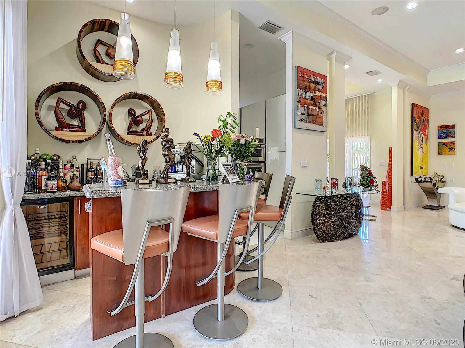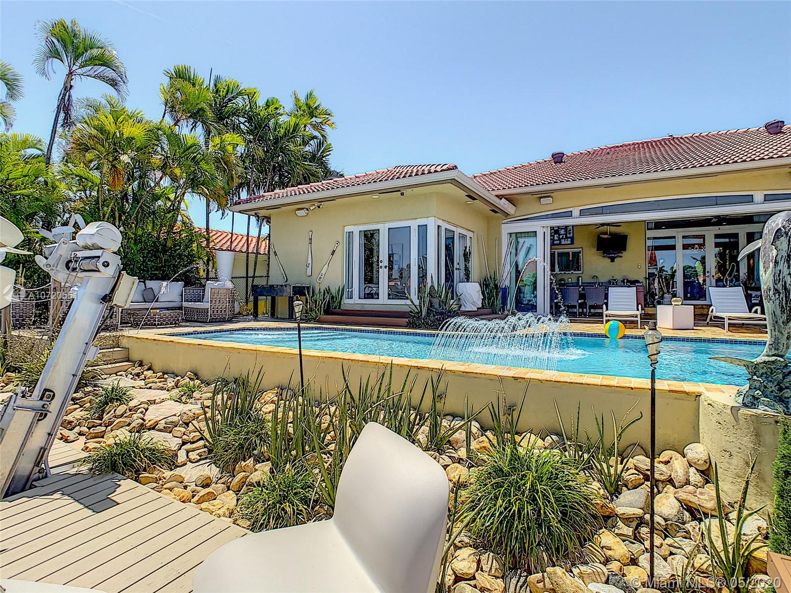 Gorgeous Custom build one Story Waterfront Home, marble and porcelain floors, Impact windows, Dream Italian design kitchen and a second kitchen at the family, 4 bedrooms, 3 bath with great Driveway at entrance. 80' water frontage with no fixes bridges. Automatic lift for a 30' boat and 2 others for jet sky .YACHTMANS DREAM IN GATED COMMUNITY WITH A RATED SCHOOLS Easy to show