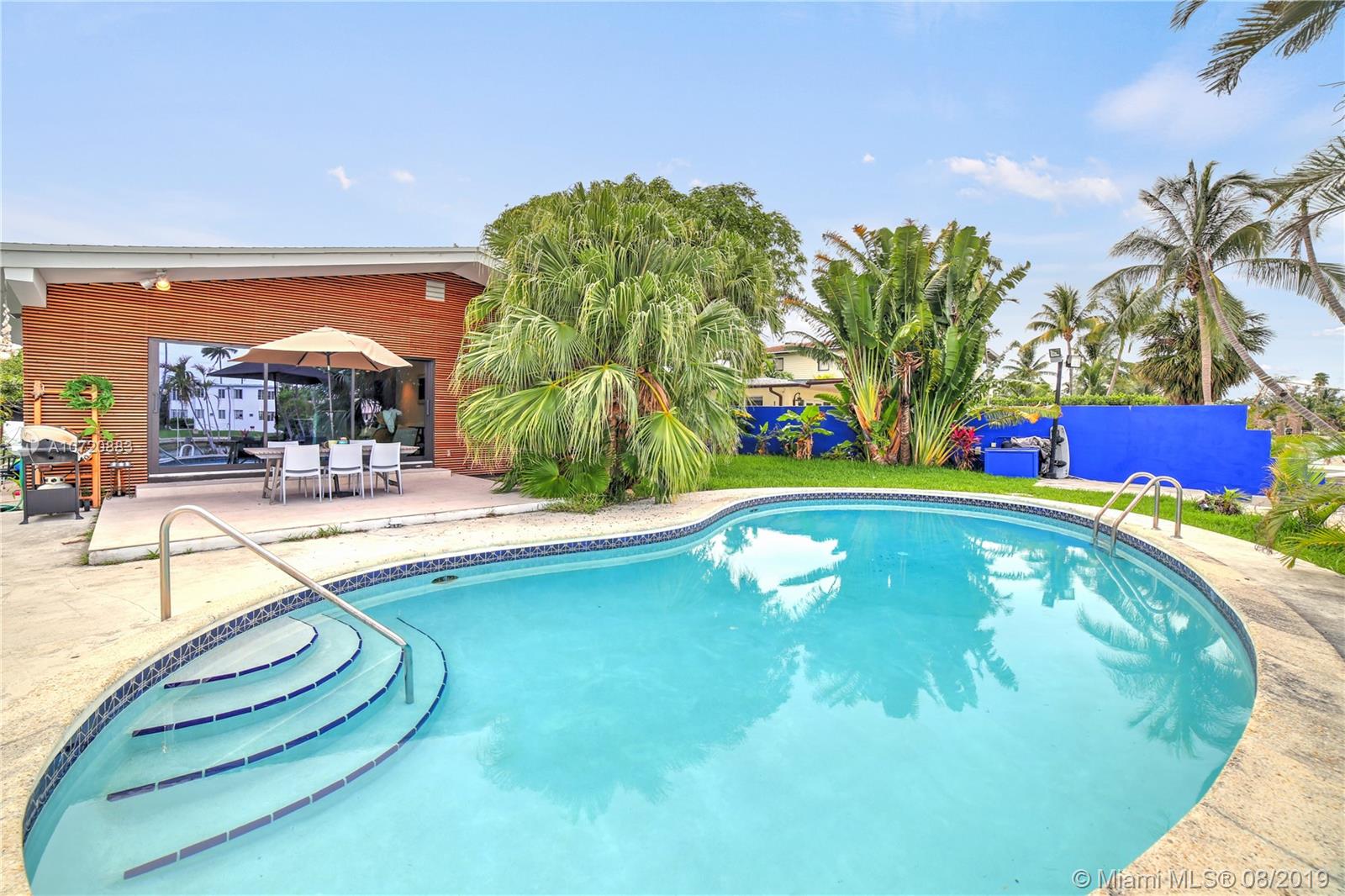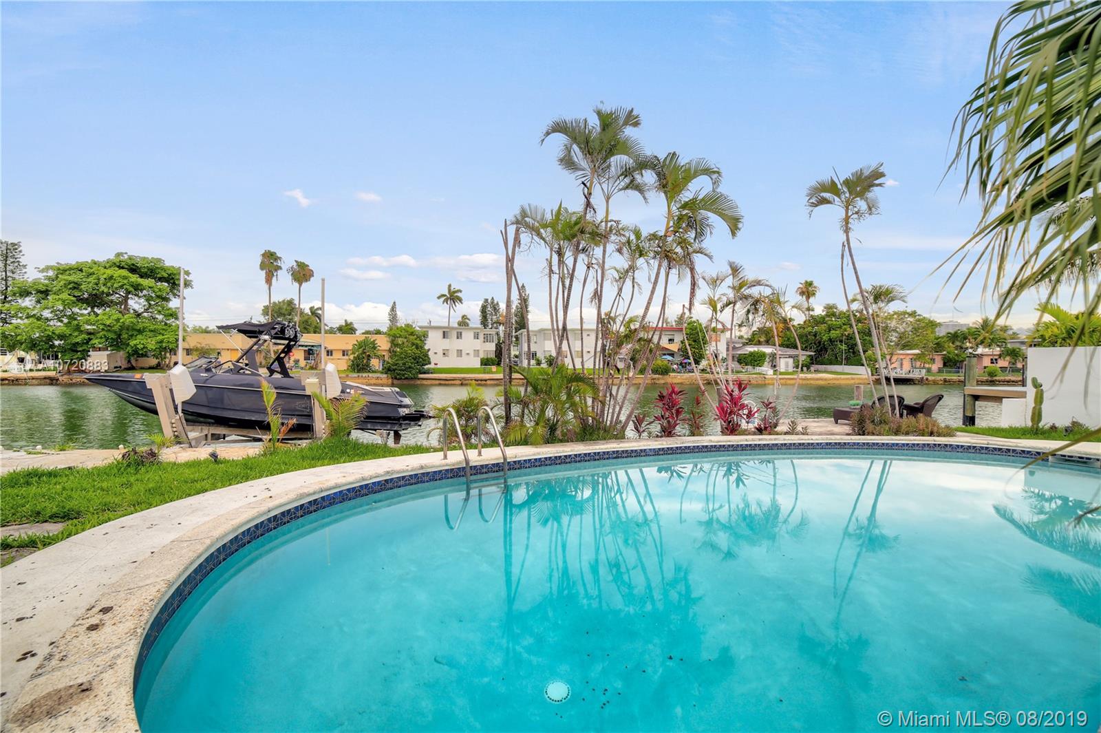 Don't look any further this is the best value for a waterfront house in Miami Beach. Tropical vibes in remodeled large 3213 sqft MiMo house. Lots of space in this 4 Bedrooms, 3 Baths with a double living room high ceilings, beautiful volumes and a true sensation of space throughout the house. This turnkey house a gorgeous remodeled new kitchen and bathrooms imported from Italy and a wood facade Very rare oversized lot with the biggest possible water frontage on the entre Island ( 80 ft) with a brand new boat lift and a dock and can fit several boats. Facing directly south, enjoy cocktails by the large pool over looking the water in a lush tropical garden. 2 car indoor garage ( no conversion) + 4 car driveway. Priced to sell