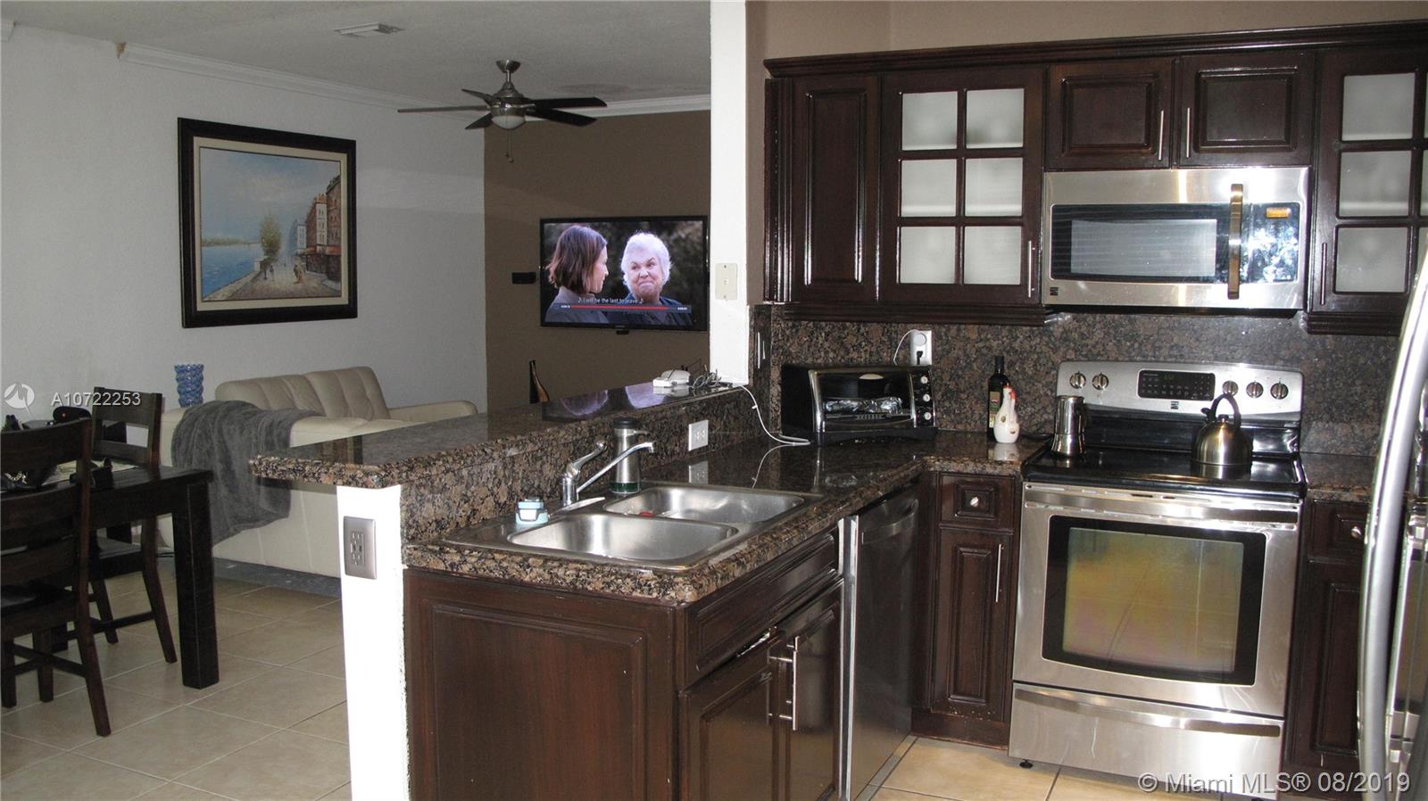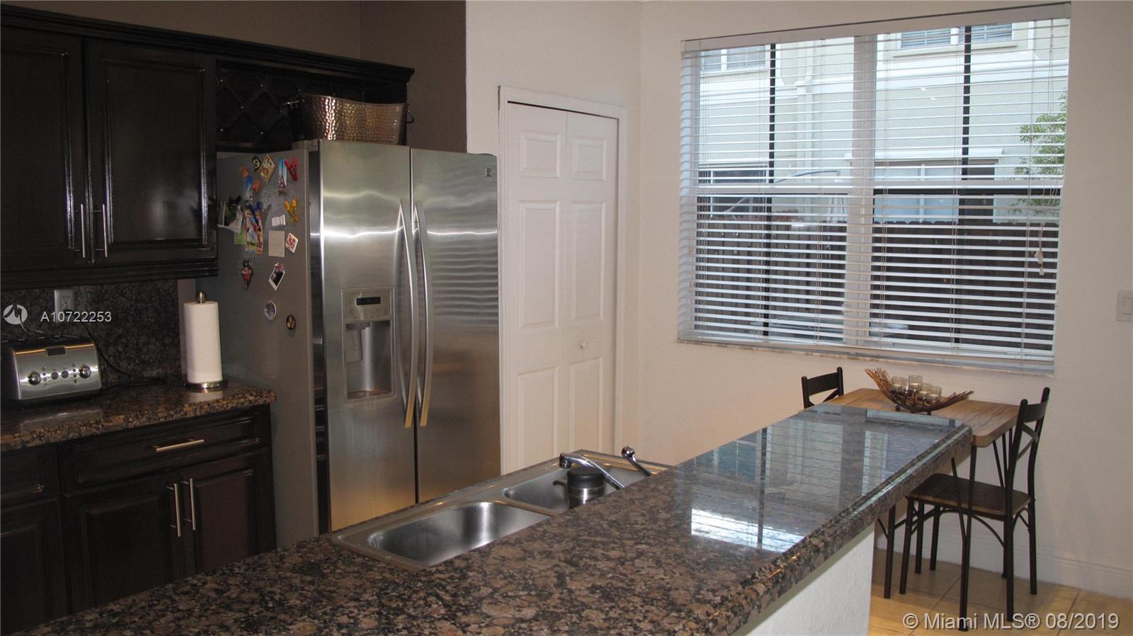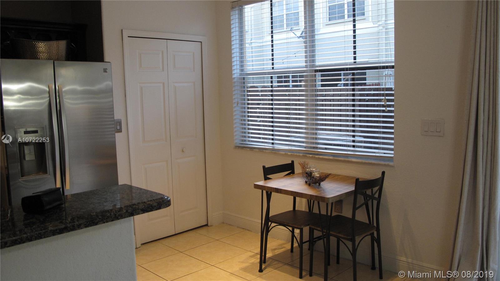 Great Location for a cozy and beautiful townhouse. Very well maintained with kitchen upgraded and stainless steel appliances. Tile downstairs and wood upstairs. At the club house you can enjoy pool, gym, game room, basketball and tennis court. Very close to Midtown Doral where you can enjoy bars, restaurants and supermarket.