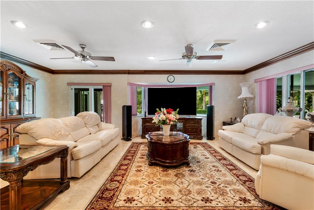 Unique opportunity to own this landmark property situated on over one acre (3 lots) totaling 49,175 sq ft of land and located on the prestigious Coral Ridge Country Club golf course. This double gated estate home offers total privacy in a park-like setting under a canopy of majestic Royal Palm trees along with your very own tennis court! The possibilties are endless, keep the current home and renovate to your taste or for a developer, subdivide and build 2 or possibly 3 new construction homes. The present home is a huge 4 bedroom/5 bath with separate gym and office, tile roof (2006), Impact glass throughout and a full house generator. Seldom do properties of this size become available to the market.