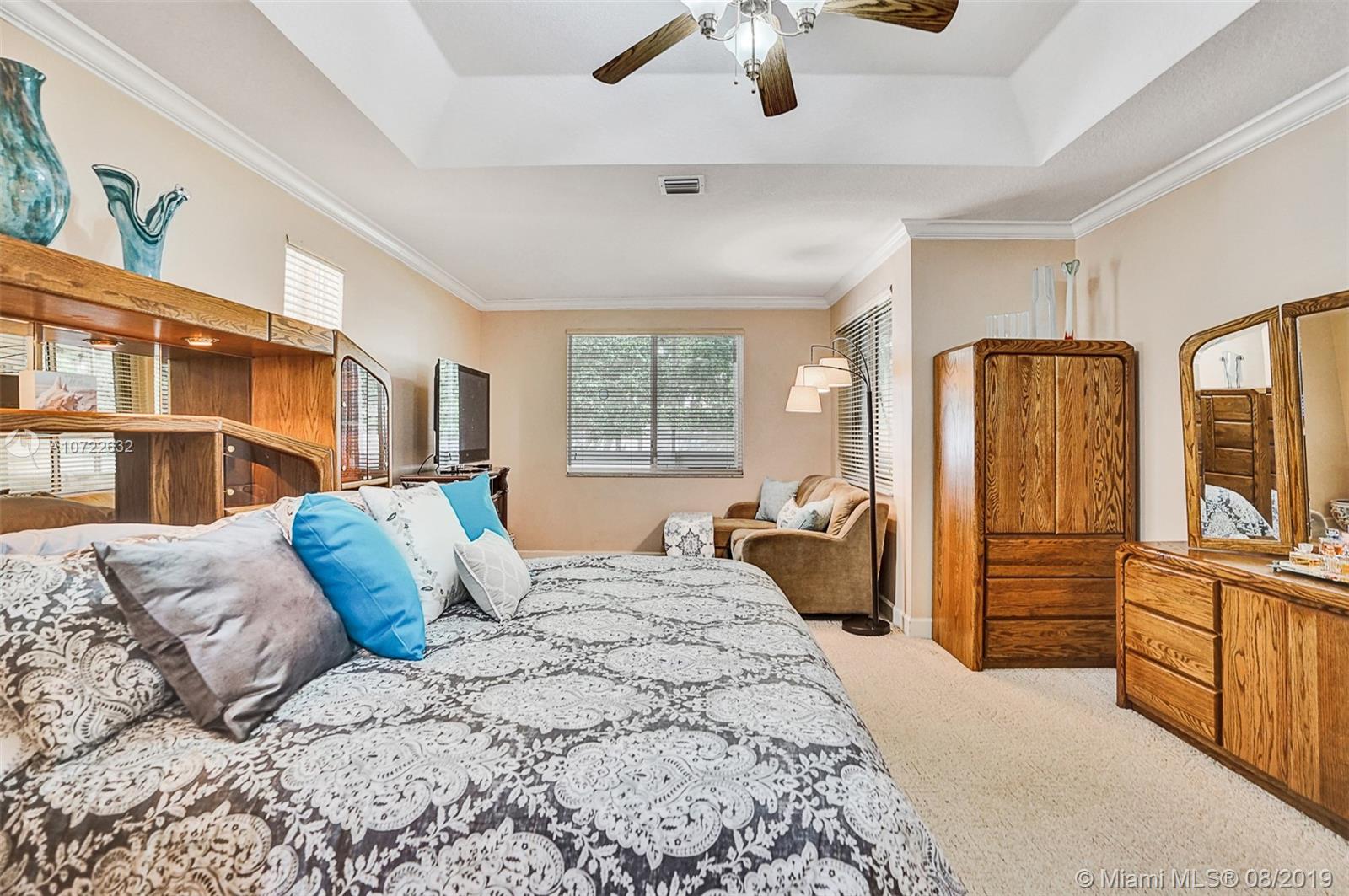 Stunning 4 bedrooms 3 baths + Office in the desirable GATED community Los Castillos, Windsor Palms. This home checks all the boxes & more with a 3-car garage, Volume ceilings, beautiful crown moldings, Custom drapery, Gourmet kitchen, granite counters, New Blk stainless steel appliances. Ideal triple-split bedroom plan, Huge Master suite with sitting area, 2 walk-in closets, spacious master bathroom with 2 double vanities, jacuzzi & shower. Large screened patio, fabulous outdoor space perfect for entertaining with room for a pool. Fully equipped with HURRICANE Accordion shutters. Rainsoft Water softener system. Community park & kids play area. Newer AC units. Low HOA fee. Great family neighborhood, zoned for A-rated schools and easy access to highways, shopping, and entertainment.