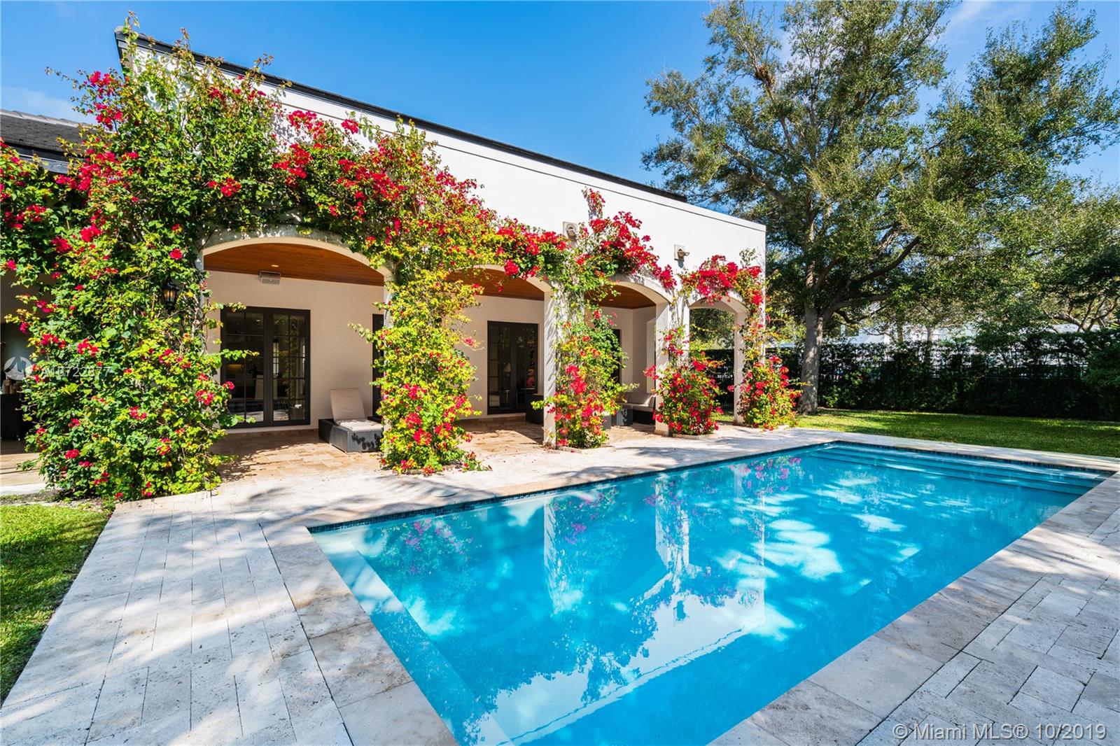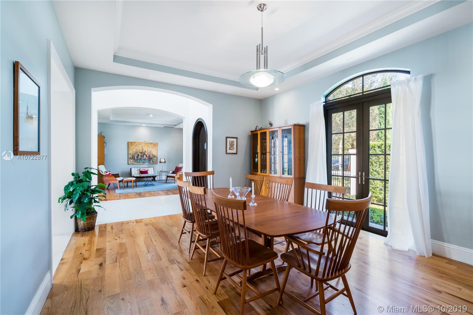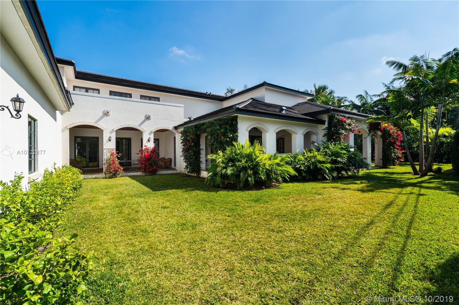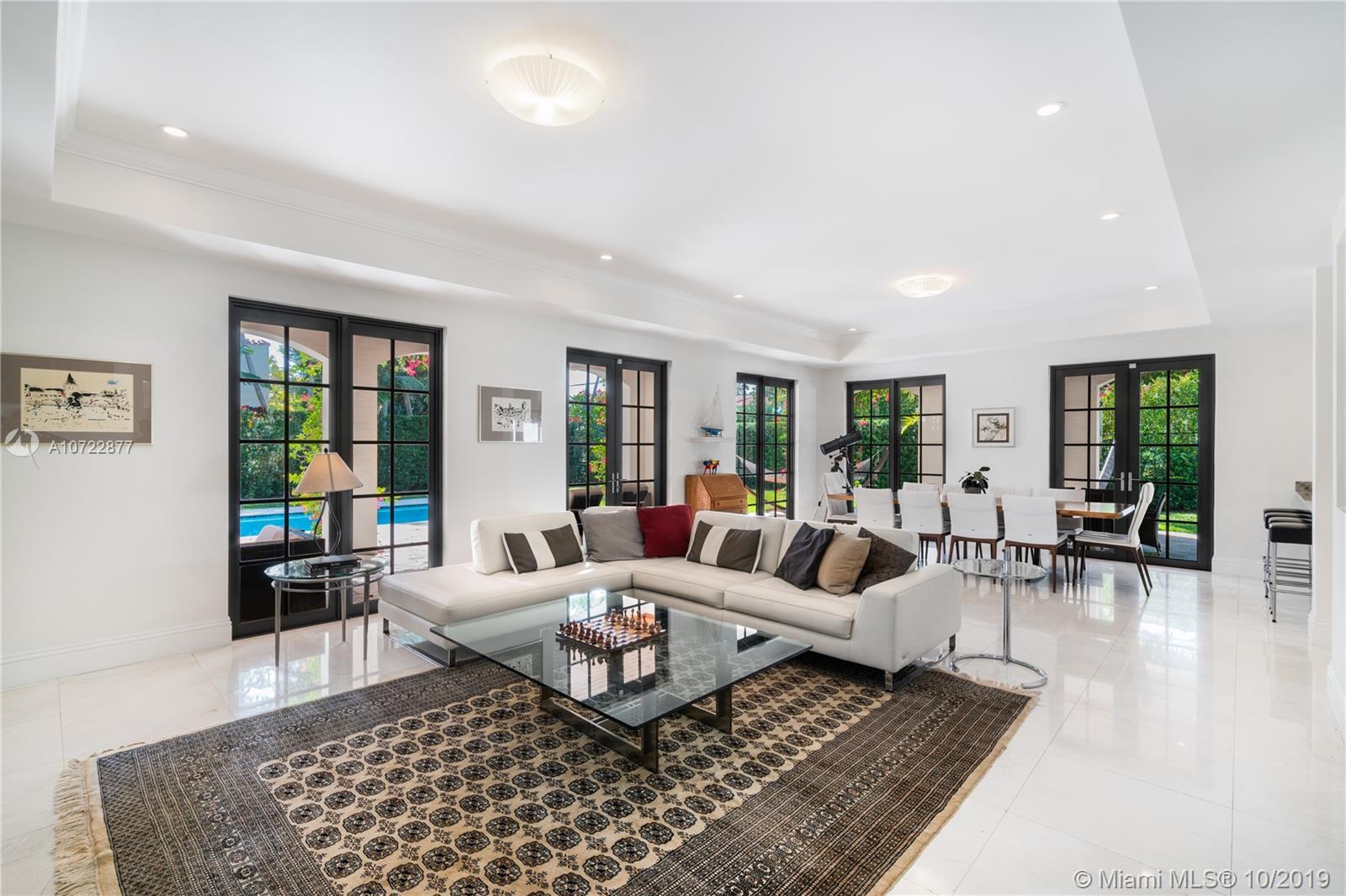 Located on an oversized corner lot in South Gables, this elegant 2 story residence was built in 2015 and features 6 bedrooms, 7 full and 1 half bath. Light filled gourmet European kitchen includes island, Thermador appliances, snack bar, butler’s pantry and walk-in wine cellar. Multiple spacious covered terraces lead to lush manicured yard with pool and summer kitchen. Master Suite features his and hers walk-in closets with custom built-in cabinetry and private deep balcony. Completely walled and gated with 3 car garage. High ceilings and balconies adorn the upstairs bedrooms. Formal Family and Dining Room are adjoined by an enchanting foyer entry. Minutes from A+ rated schools, restaurants and shops. Ideal family home with the spirit for entertaining.