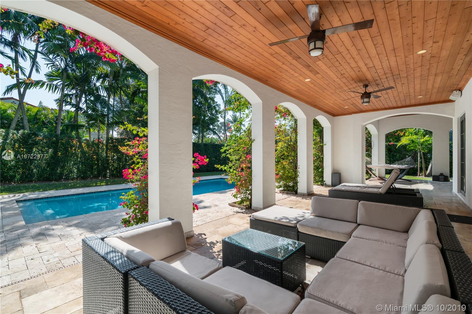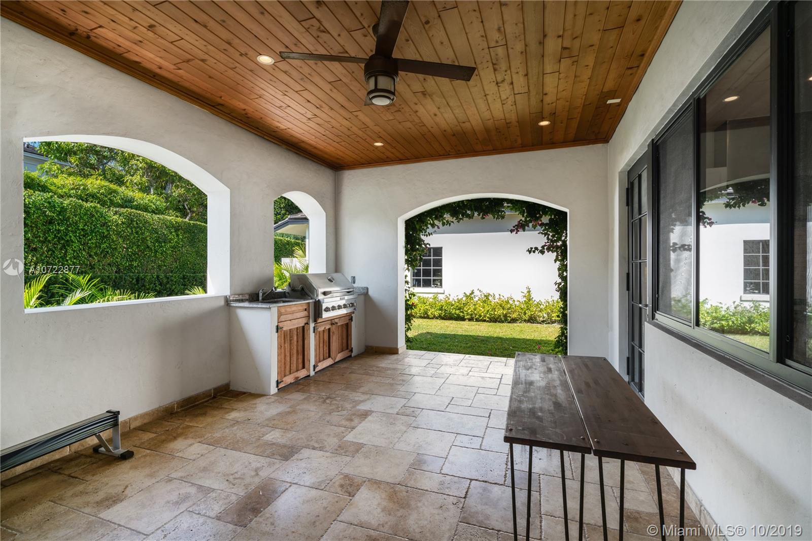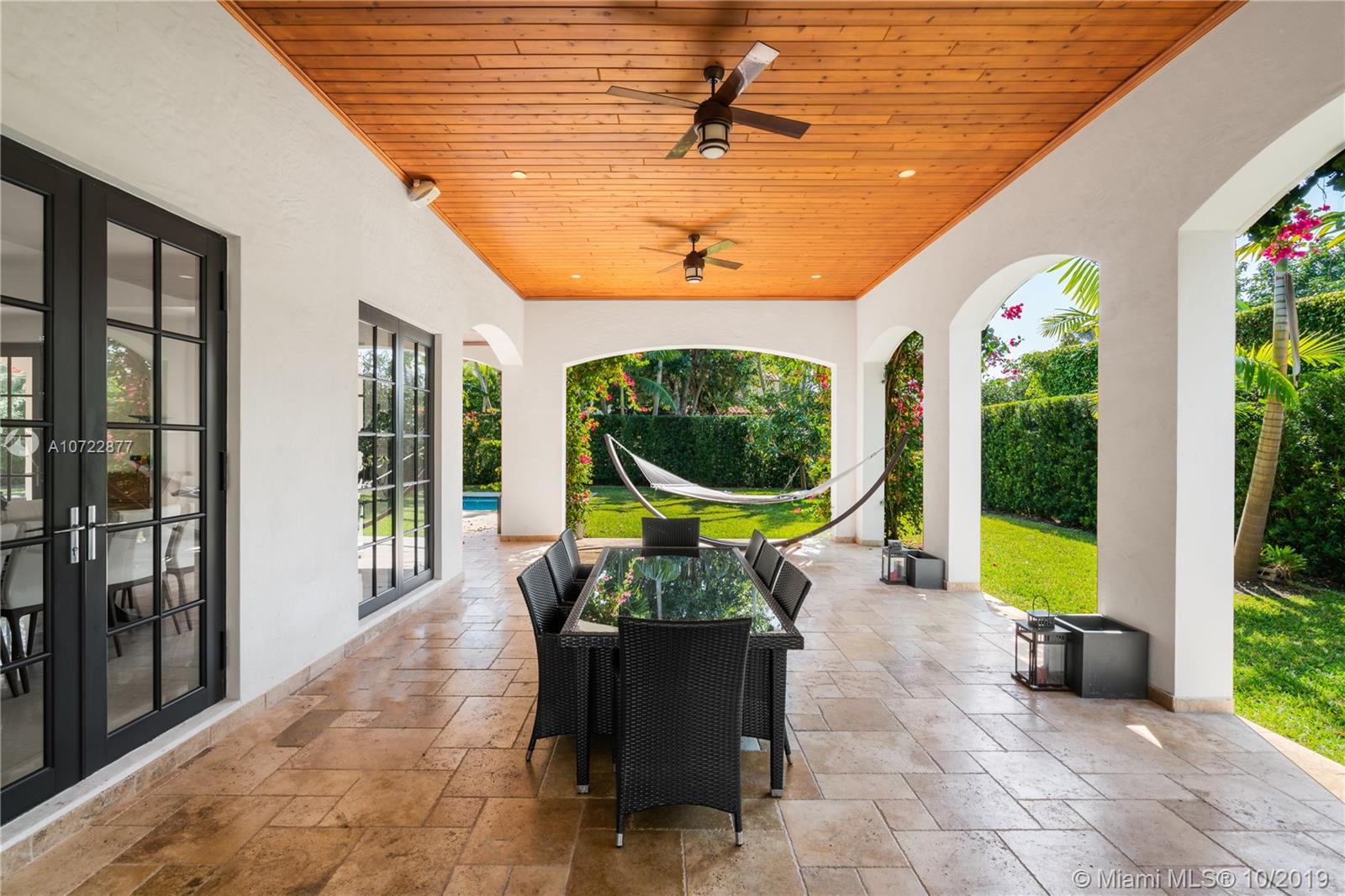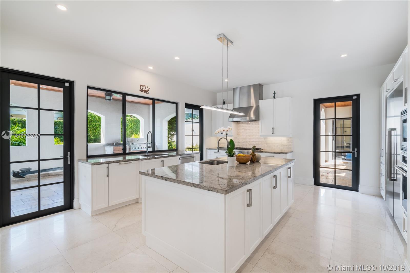 Located on an oversized corner lot in South Gables, this elegant 2 story residence was built in 2015 and features 6 bedrooms, 7 full and 1 half bath. Light filled gourmet European kitchen includes island, Thermador appliances, snack bar, butler’s pantry and walk-in wine cellar. Multiple spacious covered terraces lead to lush manicured yard with pool and summer kitchen. Master Suite features his and hers walk-in closets with custom built-in cabinetry and private deep balcony. Completely walled and gated with 3 car garage. High ceilings and balconies adorn the upstairs bedrooms. Formal Family and Dining Room are adjoined by an enchanting foyer entry. Minutes from A+ rated schools, restaurants and shops. Ideal family home with the spirit for entertaining.