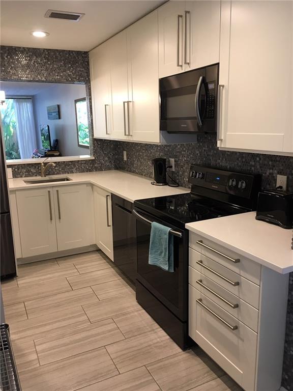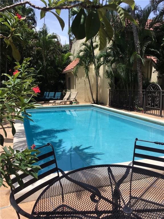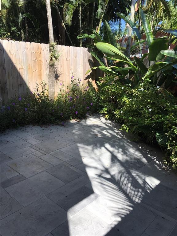 Rarely available end unit, gated lush tropical sanctuary of only 8 townhomes, completely & tastefully remodeled, 2 assigned side-by-side parking spaces, community entry phone system, gated pool, courtyard, 2 en-suite bedrooms with walk-in closets, double doors to master bedroom, skylights in each bathroom, newer appliances and water heater, quartz counters, large built-in pantry, full size washer & dryer, tile ground floor, faux wood stairs & second floor, secluded backyard patio with private access gate, storm shutter panels, 2 pets allowed - max 60 pounds each, can rent 2x per year. Superb location close to beaches, FLL Airport, Broward Health Medical Center, Broward County Judicial Complex, Port Everglades, downtown and Las Olas Blvd.