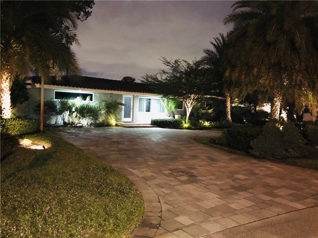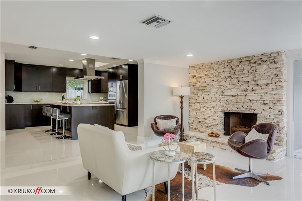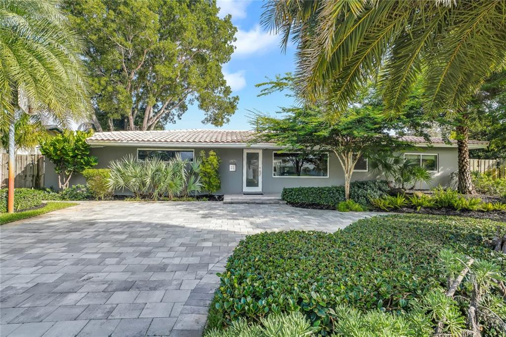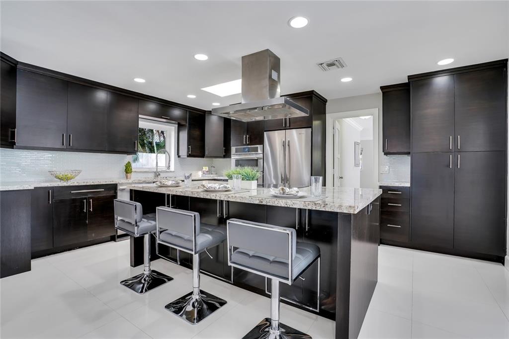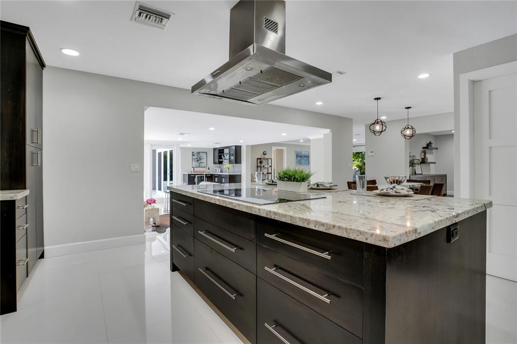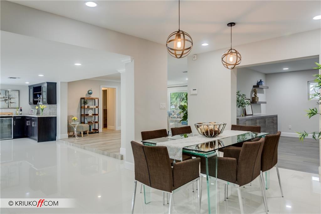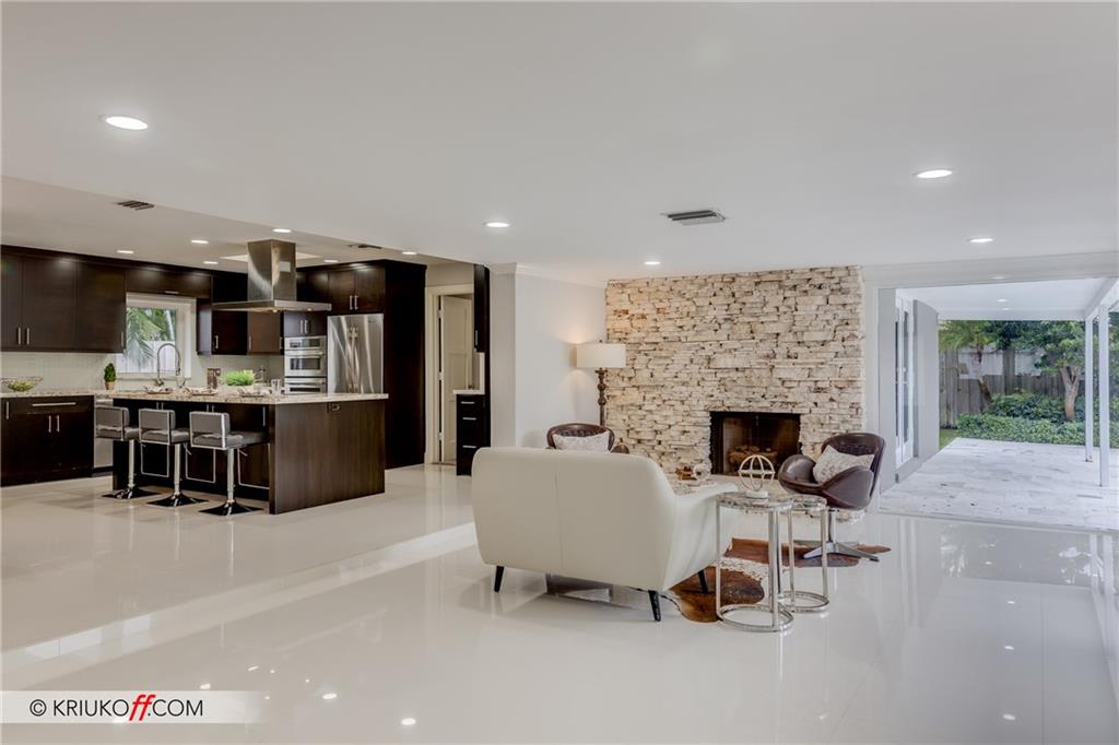 One of the LARGEST homes in Imperial Point area w/ 2750 sq ft of beautifully remodeled living space complete w/ high-end finishes and oversized rooms! This home boasts 3 bedrooms, 3 full baths, 2 huge living areas plus spacious den that could easily convert to 4th bedroom. Features include an open concept floor plan w/ split bedrooms, impact windows, large modern kitchen w/ granite countertops & Jenn-Air stainless steel appliances, bar w/ wine fridge, large inside laundry room, ample storage, 3 walk-in closets in master, tons of natural light, fantastic backyard w/ remodeled pool, covered patio, turf grass areas, lush landscaping, exterior lighting & built-in storage shed. No detail was overlooked! Located on quiet street in A-rated Floranada school district, a little over 1 mi from beach!