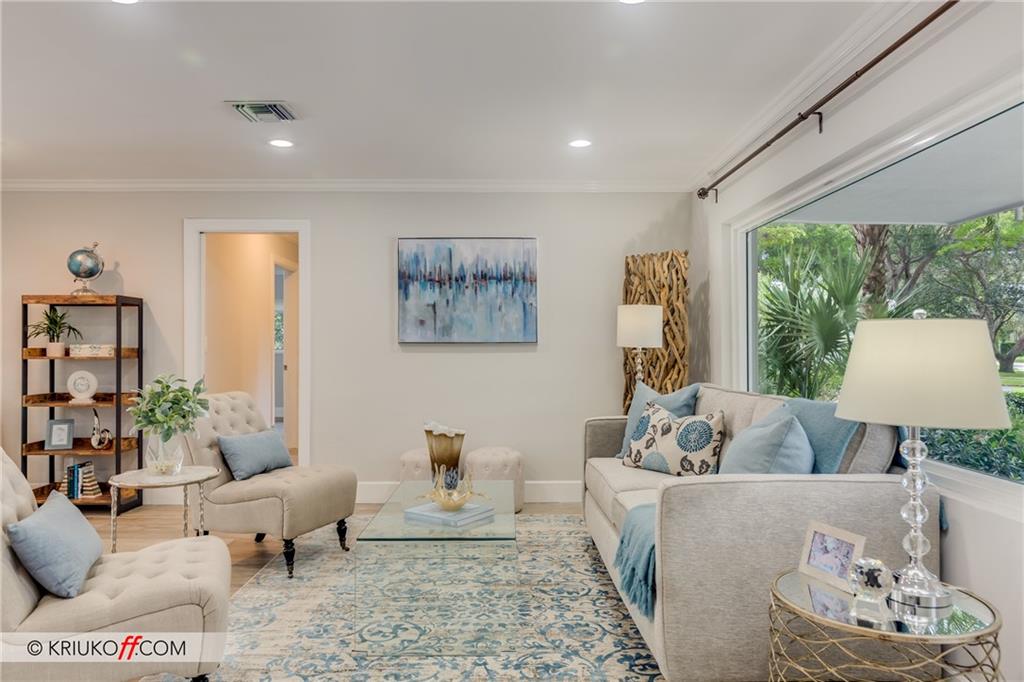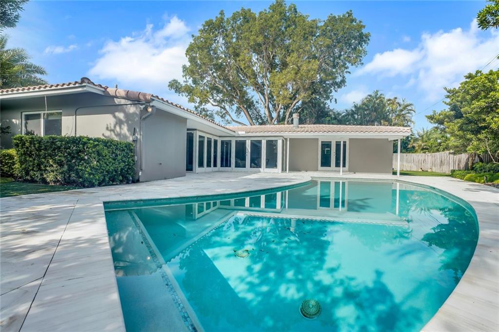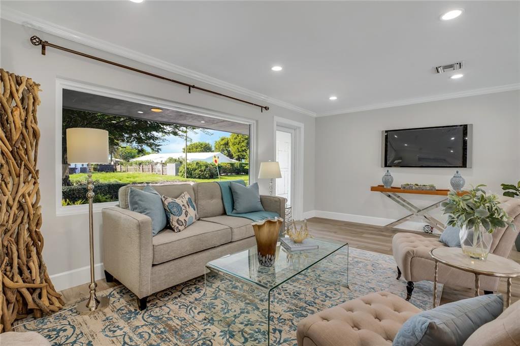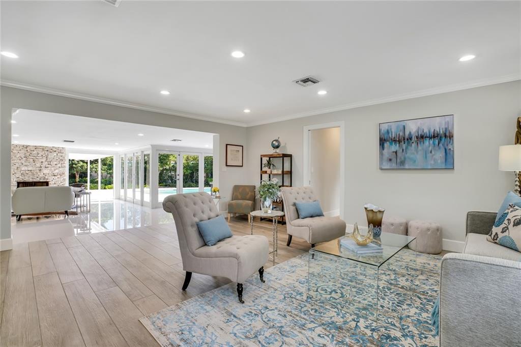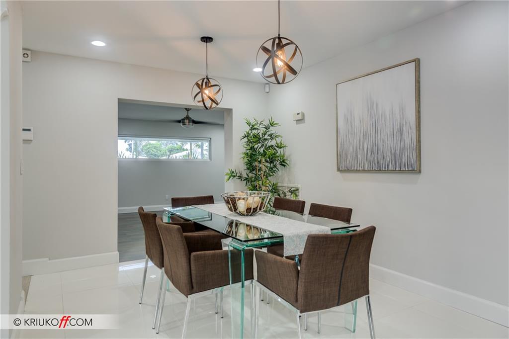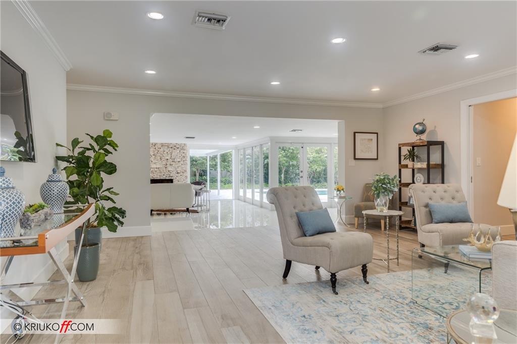 One of the LARGEST homes in Imperial Point area w/ 2750 sq ft of beautifully remodeled living space complete w/ high-end finishes and oversized rooms! This home boasts 3 bedrooms, 3 full baths, 2 huge living areas plus spacious den that could easily convert to 4th bedroom. Features include an open concept floor plan w/ split bedrooms, impact windows, large modern kitchen w/ granite countertops & Jenn-Air stainless steel appliances, bar w/ wine fridge, large inside laundry room, ample storage, 3 walk-in closets in master, tons of natural light, fantastic backyard w/ remodeled pool, covered patio, turf grass areas, lush landscaping, exterior lighting & built-in storage shed. No detail was overlooked! Located on quiet street in A-rated Floranada school district, a little over 1 mi from beach!