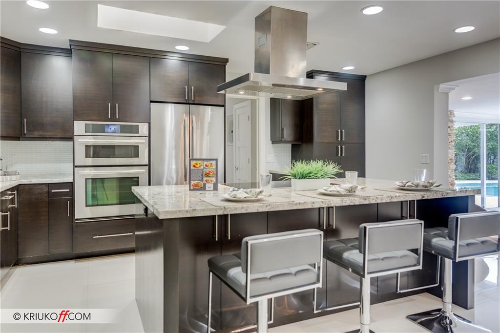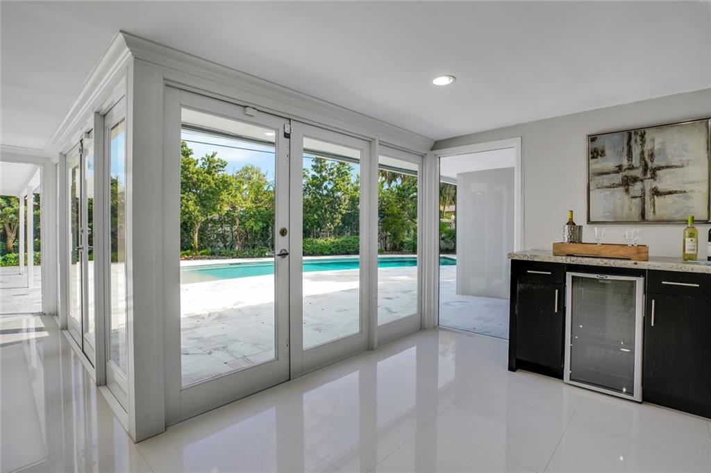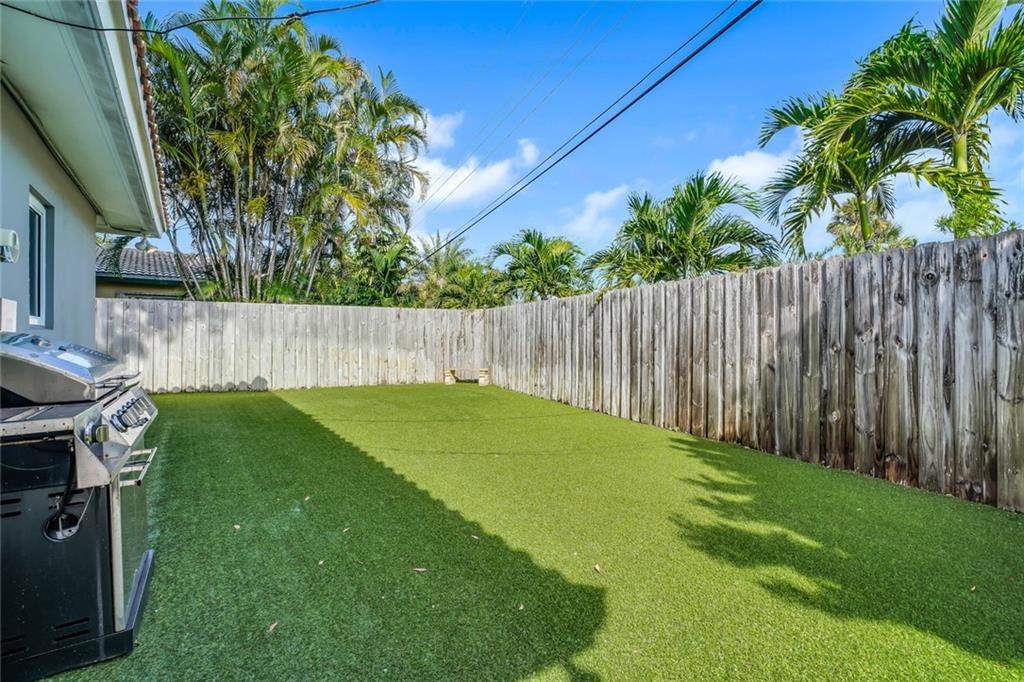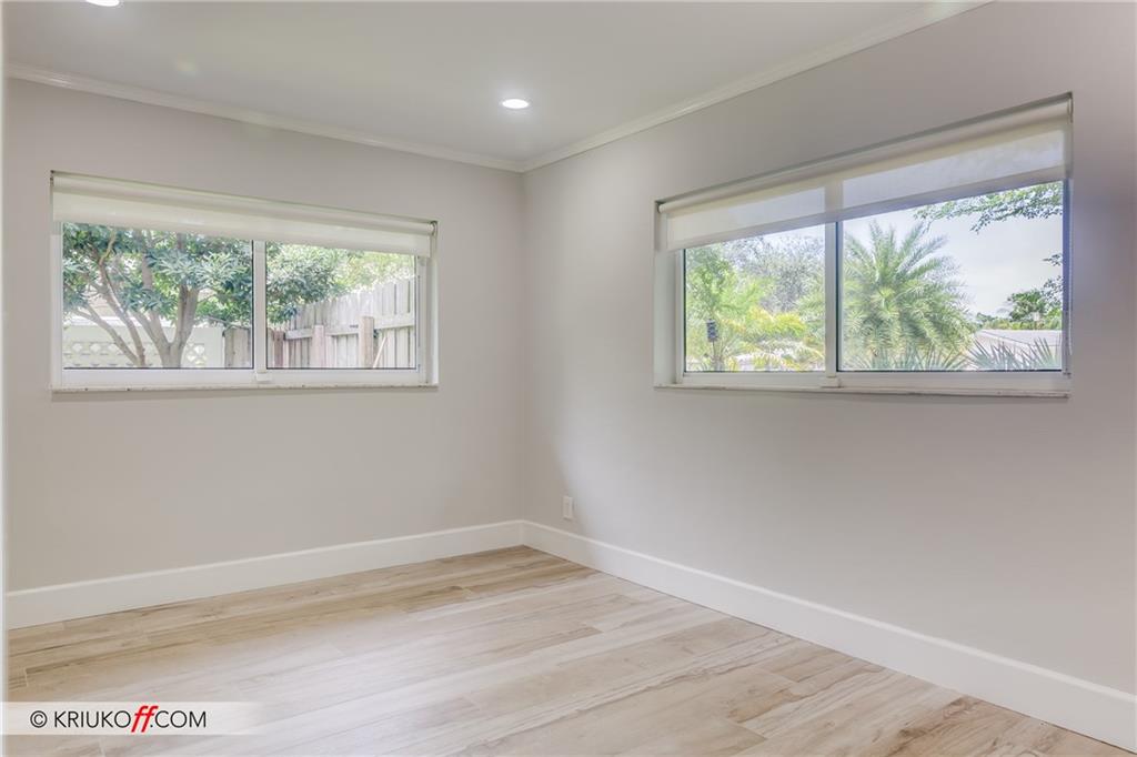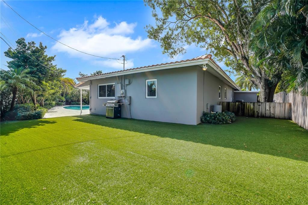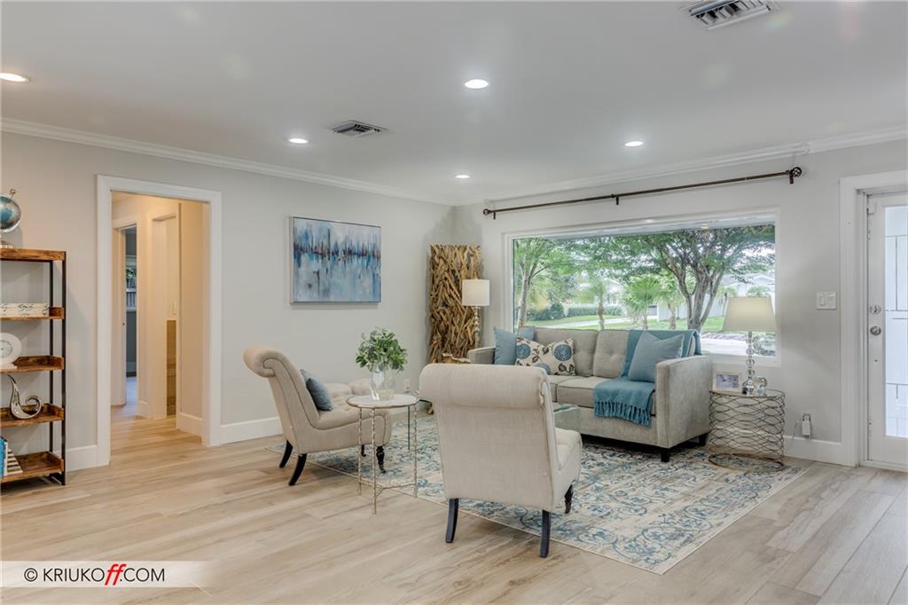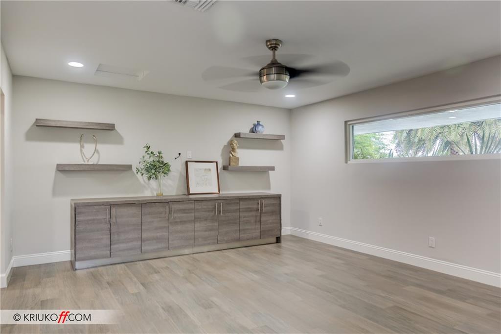 One of the LARGEST homes in Imperial Point area w/ 2750 sq ft of beautifully remodeled living space complete w/ high-end finishes and oversized rooms! This home boasts 3 bedrooms, 3 full baths, 2 huge living areas plus spacious den that could easily convert to 4th bedroom. Features include an open concept floor plan w/ split bedrooms, impact windows, large modern kitchen w/ granite countertops & Jenn-Air stainless steel appliances, bar w/ wine fridge, large inside laundry room, ample storage, 3 walk-in closets in master, tons of natural light, fantastic backyard w/ remodeled pool, covered patio, turf grass areas, lush landscaping, exterior lighting & built-in storage shed. No detail was overlooked! Located on quiet street in A-rated Floranada school district, a little over 1 mi from beach!