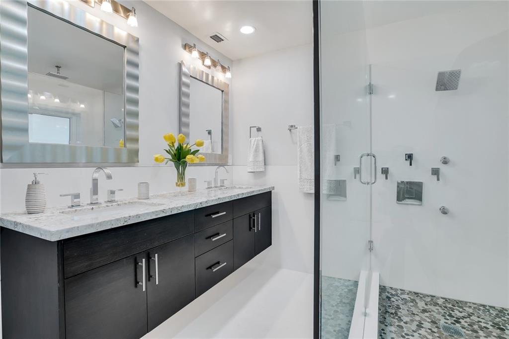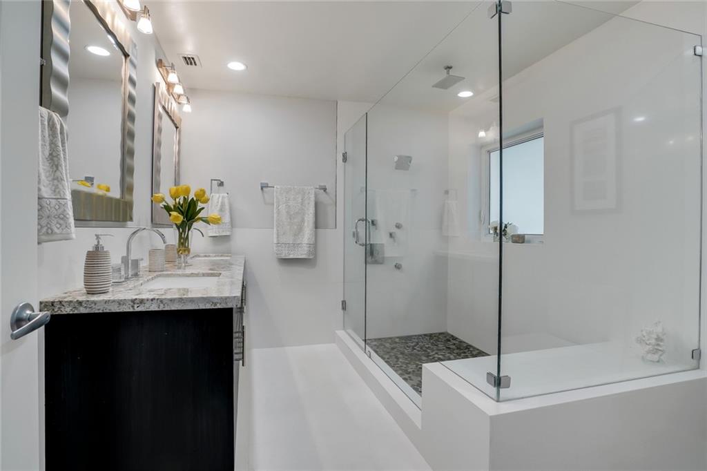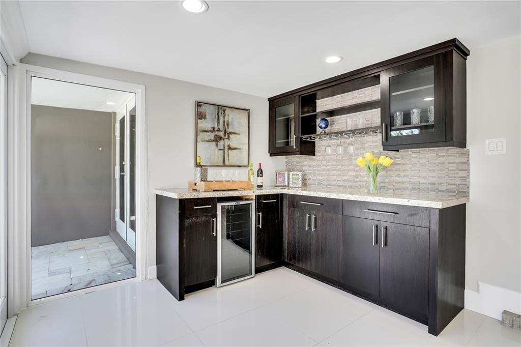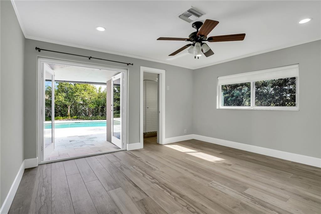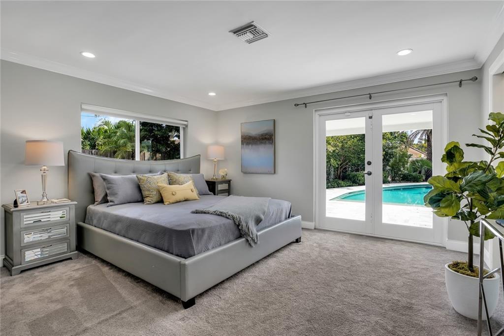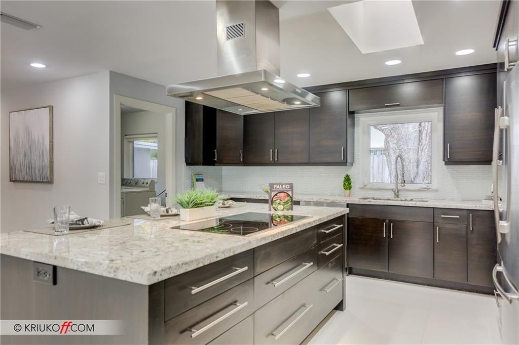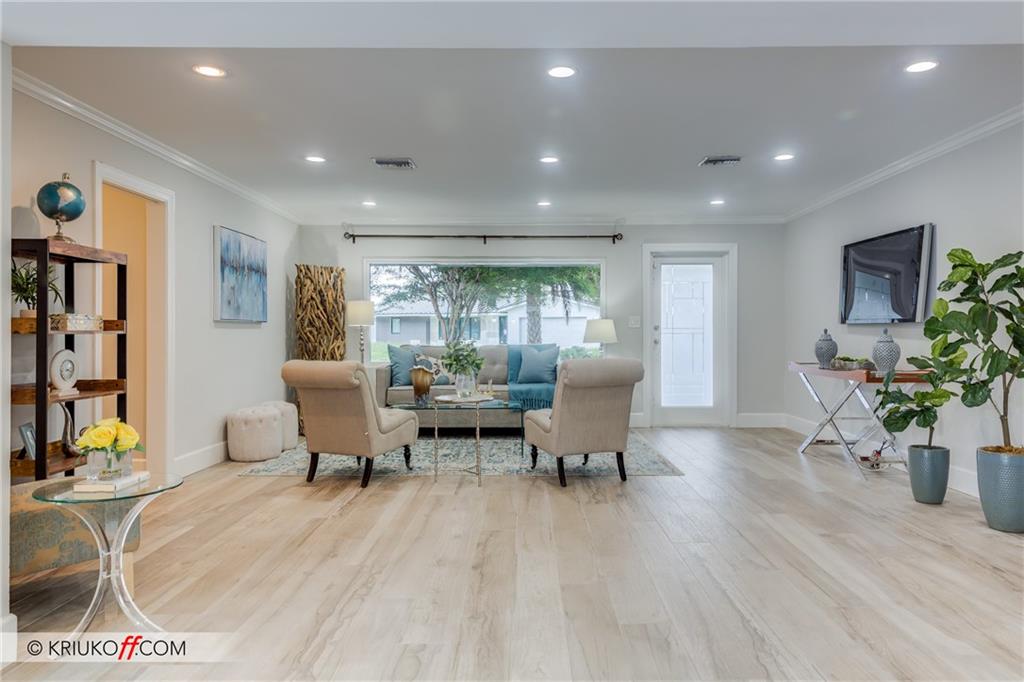 One of the LARGEST homes in Imperial Point area w/ 2750 sq ft of beautifully remodeled living space complete w/ high-end finishes and oversized rooms! This home boasts 3 bedrooms, 3 full baths, 2 huge living areas plus spacious den that could easily convert to 4th bedroom. Features include an open concept floor plan w/ split bedrooms, impact windows, large modern kitchen w/ granite countertops & Jenn-Air stainless steel appliances, bar w/ wine fridge, large inside laundry room, ample storage, 3 walk-in closets in master, tons of natural light, fantastic backyard w/ remodeled pool, covered patio, turf grass areas, lush landscaping, exterior lighting & built-in storage shed. No detail was overlooked! Located on quiet street in A-rated Floranada school district, a little over 1 mi from beach!