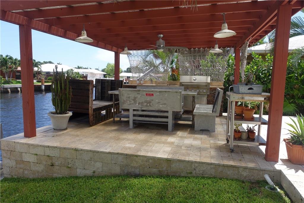 This waterfront, ocean access house has been updated recently. District art looking, special designed. The master suit has wide impact sliding doors, looking over canal and pool. Open concept kitchen and living space. Ample 2 car garage, gazebo to enjoy time around the pool. New roof, sprinkler system, Beautifully landscaped. Located at the end of a very quiet cul de sac street.