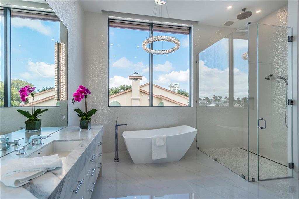 Most recently completed new construction in Harbor Beach! Beautifully refined Coastal Modern design by Randy Stofft/Builder Sarkela Corp. Incredible wide & picturesque Lake Sylvan (open to intracoastal) & Marina views from large corner property. Stunningly open & light floorplan, walls of windows that fold back completely for outdoor enjoyment & entertaining. An expansive covered loggia, & multiple loggias/balconies include a roof top terrace. Chef's kitchen opens to breakfast area & family room, wine wall, two sided fireplace. Glass enclosed library/den opens to club room & bar. One bedroom suite downstairs, incredible Master with private balcony & separate bathrooms/closets. All bedroom suites large & custom designed. Spectacular custom pool & fire pit. Private Surf Club across A1A