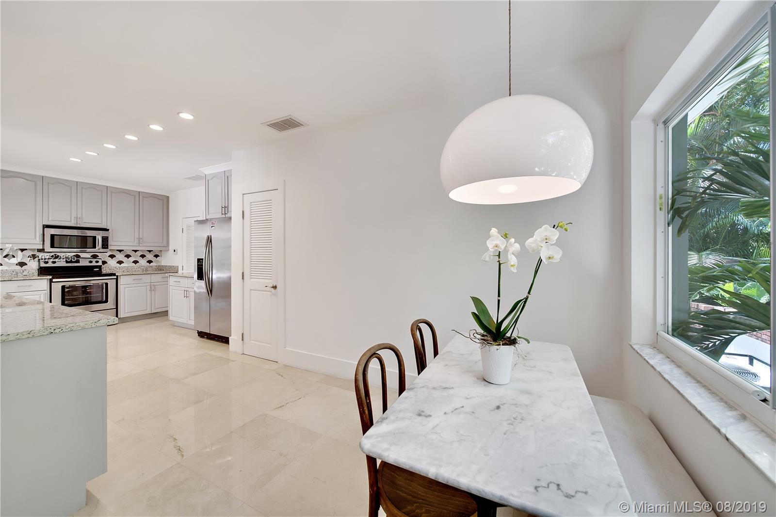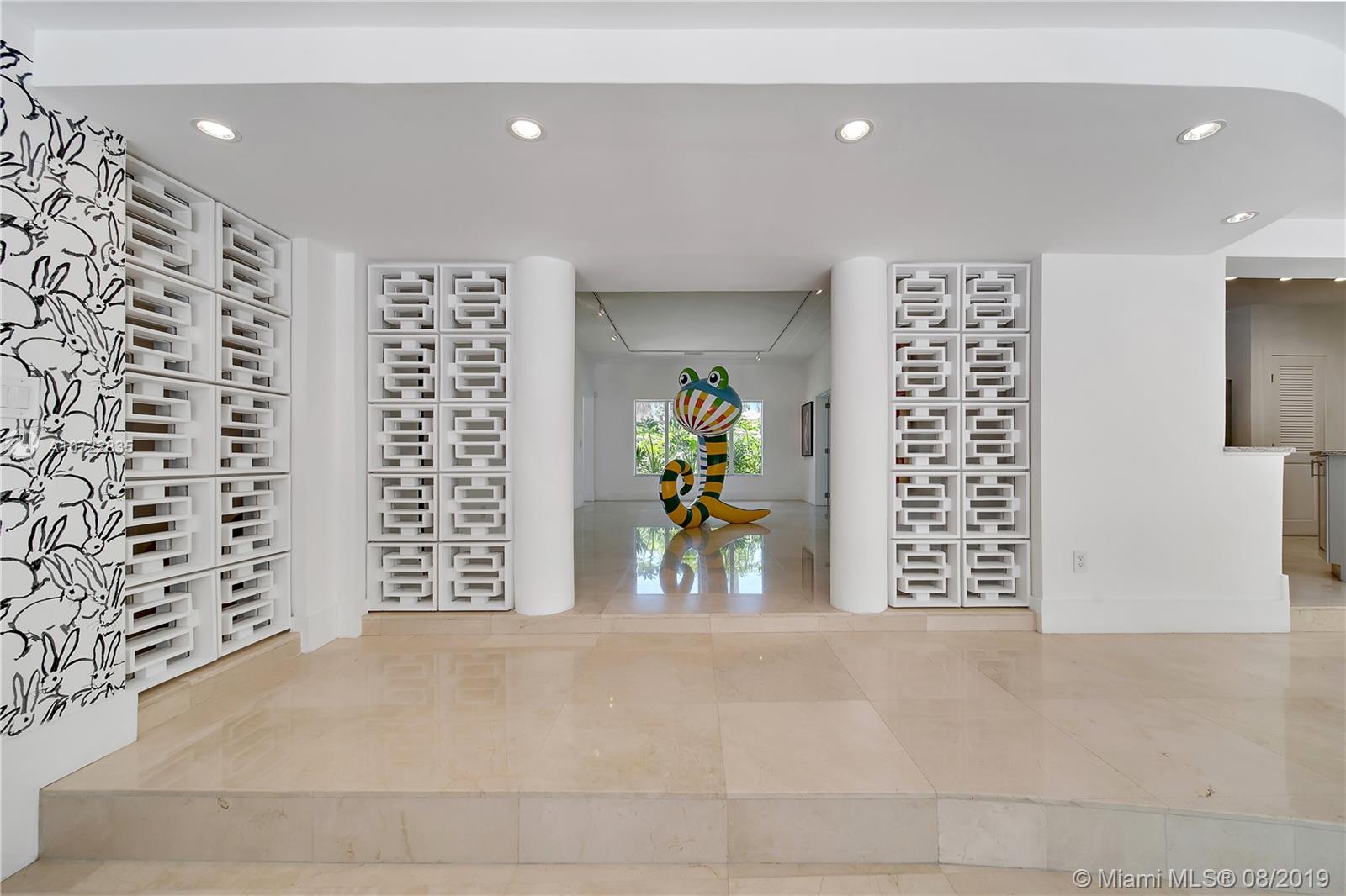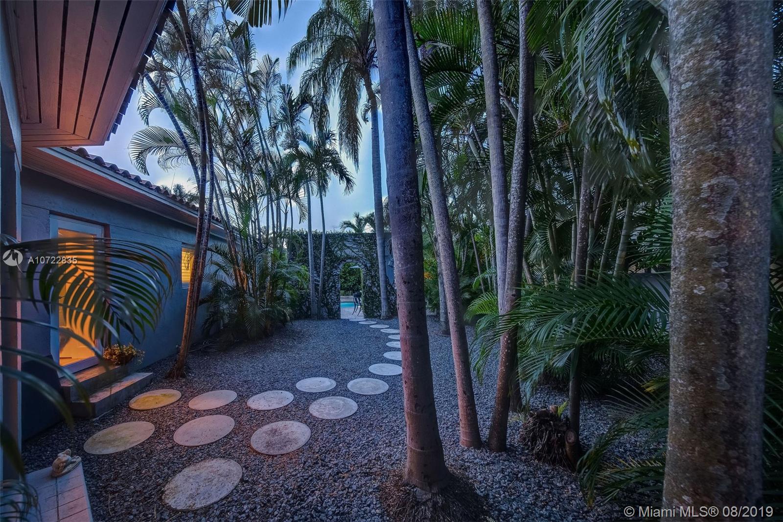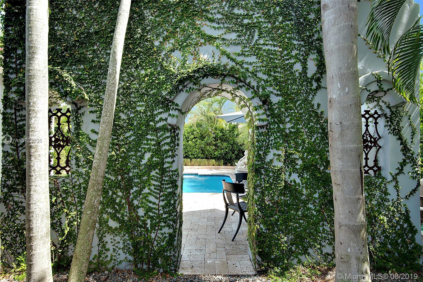 Located on one of Miami Shores Grandest Boulevards, this exquisite MiMo house offers expansive living spaces with tropical walled gardens & private pool area. Walk to Miami Shores Golf Course & easy access to all the amenities that Miami Shores offers. The foyer opens to sunny living room w/ 12’ high ceilings, then to a glamorous family room w/ French doors to the pool. The 4 bedrooms - 2 ensuite- are located at the 4 corners offering privacy. Conservatory-like office space with windows all around to enjoy the traditional 1940’s palm court. Large kitchen & open sunlit breakfast space overlooking garden. Two driveways – in front and in rear - plus 2-car garage. The pool areas unique architectural elements – Mission style arches – provide the feeling of being at an Italian Summer Villa.