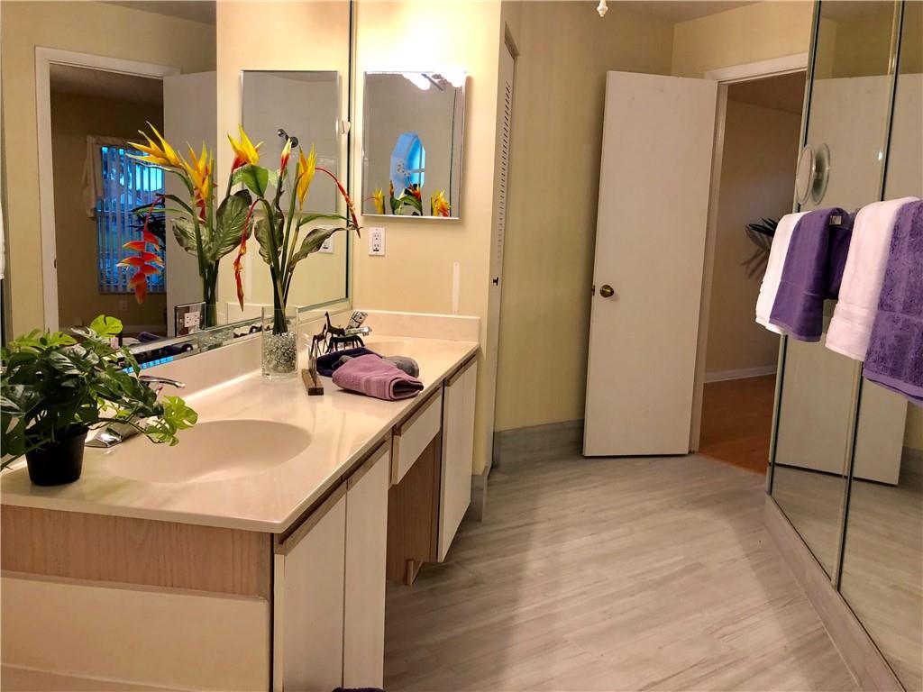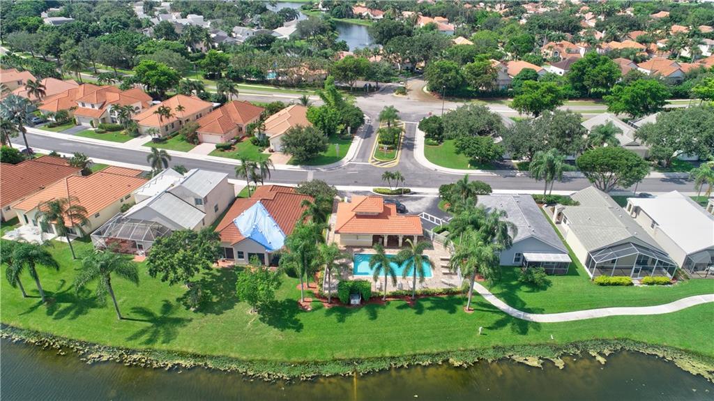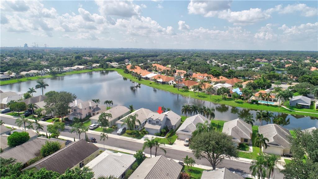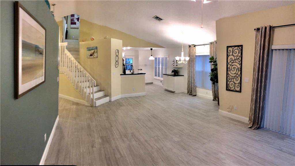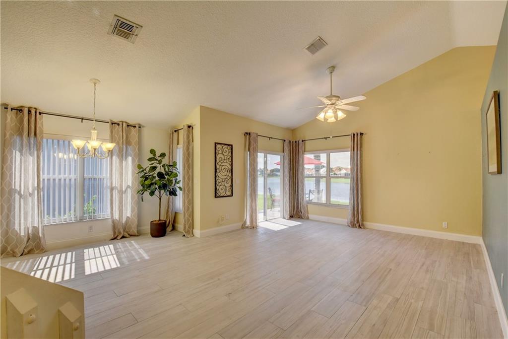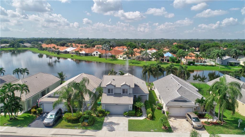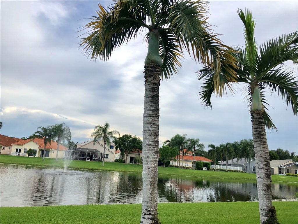 THIS GORGEOUS HOME IS SITUATED ON A LOVELY LAKE FRONT LOT, WITH FABULOUS VIEW OF SPARKLING WATER FOUNTAIN, TUMBLING ENDLESSLY INTO LAKE. GREAT OPEN PLAN HOME, WITH MASTER BEDROOM ON GROUND FLOOR, & 2 EXTRA BEDROOMS UPSTAIRS. WAIT TIL YOU SEE THE FLOORS ON MAIN LEVEL,-GREY TILE PLANK FLOORS WITH DRIFTWOOD LOOK, RUNNING THRU LIVING & DINING ROOM AND KITCHEN & BATHROOMS.THE KITCHEN WILL MAKE YOU SMILE-REMODELED 2017, IMMACULATE 42" WHITE CABINETS, STAINLESS STEEL APPLIANCES(2018), & GLEAMING QUARTZ COUNTER. PLANTATION SHUTTERS IN KITCHEN, IMPACT WINDOWS ON UPPER LEVEL. WASHER & DRYER(2017) GARAGE DOOR, HURRICANE TESTED, A/C- HANDLER & CONDENSER (2017), WATER HEATER(2017) ROOF (2010) EXTERIOR PAINTED 2018. DRIVEWAY/PATIO GREY STAMPED CONCRETE-SEE SPECIAL FEATURES SHEET. DRAPES DO NOT STAY