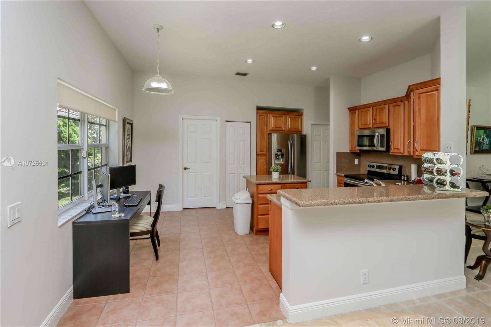 In Weston's Laurel Ridge enclave, on a quiet street just off a cul de sac, this home is lovingly cared for, immaculate & move-in ready. Kitchen and baths remodeled, master on split plan with sliding doors to a spacious, covered terrace. From living and family rooms step out to private yard, no neighbors behind. Spacious kitchen with island, granite counters & solid wood cabinetry, stainless steel appliances, custom window treatments. A canopy of oaks hover over the backyard, bordered by a manicured privacy hedge. Cabled for cameras, alarm, wrap around storm shutters. Club house and playground a 5 mins. walk. Quick access to main roads. Enjoy quality of life in a gated, secure community, with many walking/jogging trails, A-rated schools & numerous amenities.