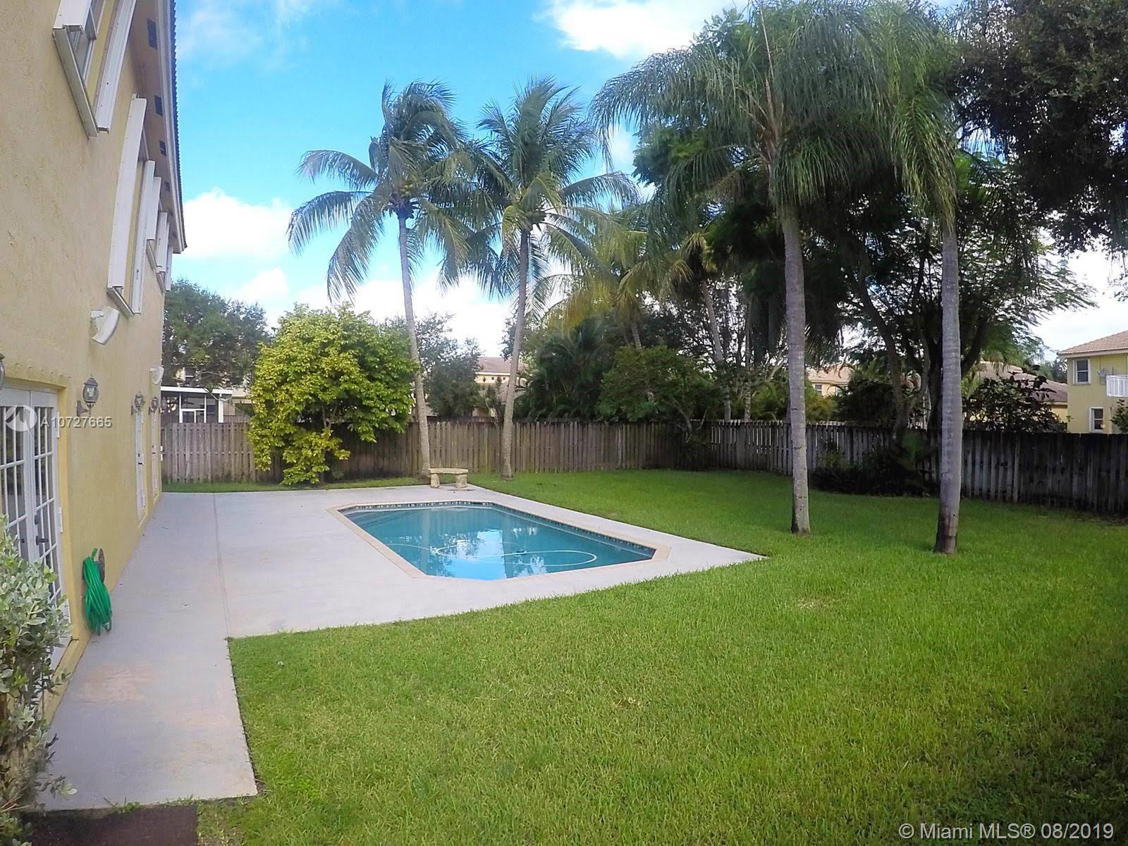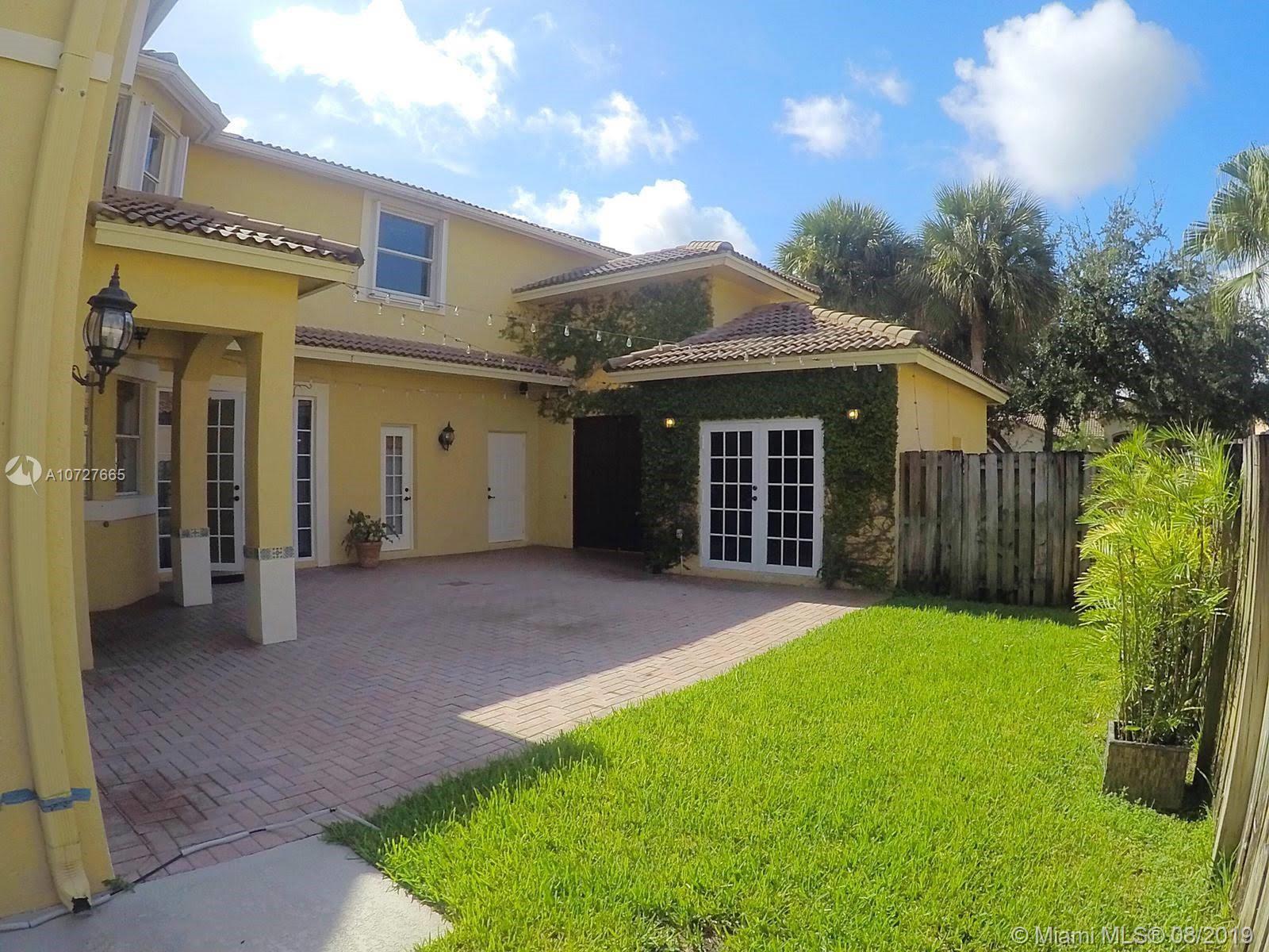 Vacant- Beautiful Courtyard style, two story home. This is one of the largest homes in the highly sought -after Emerald Estates community. Walking distance to shopping and recreational areas. The home features 4 bedrooms, and 4 full bathrooms, french doors throughout, beautiful kitchen and master bath as well as a fantastic courtyard that serves as an extension of the family room and is fabulous for entertaining. Separate In-laws quarters with separate entrance, bathroom and separate from the main house. Large backyard features a newly resurfaced pool and ample space for entertainment or to be set up as a kid friendly area.