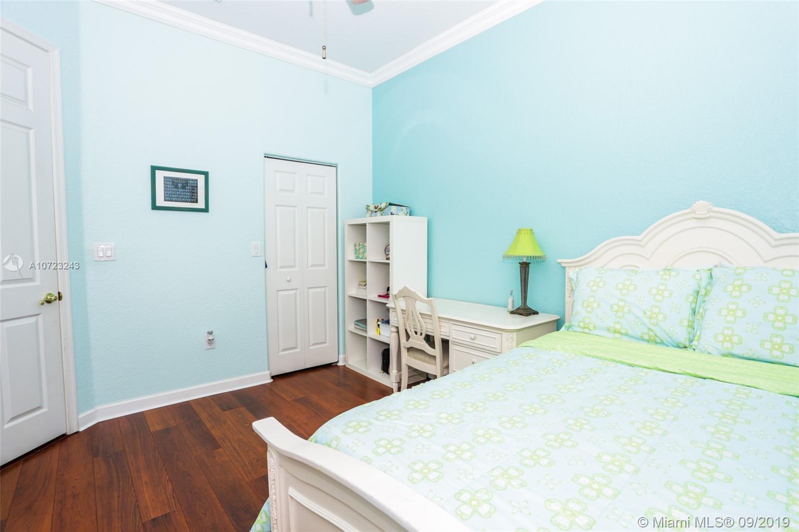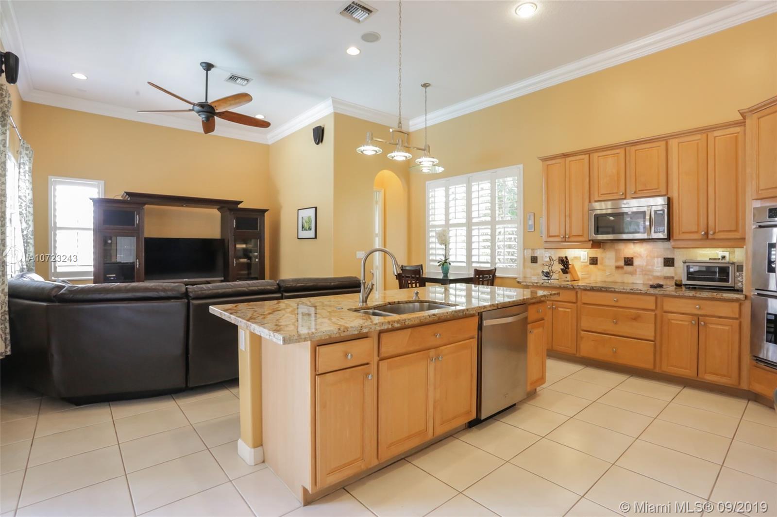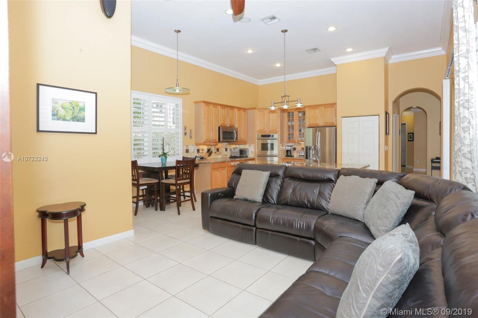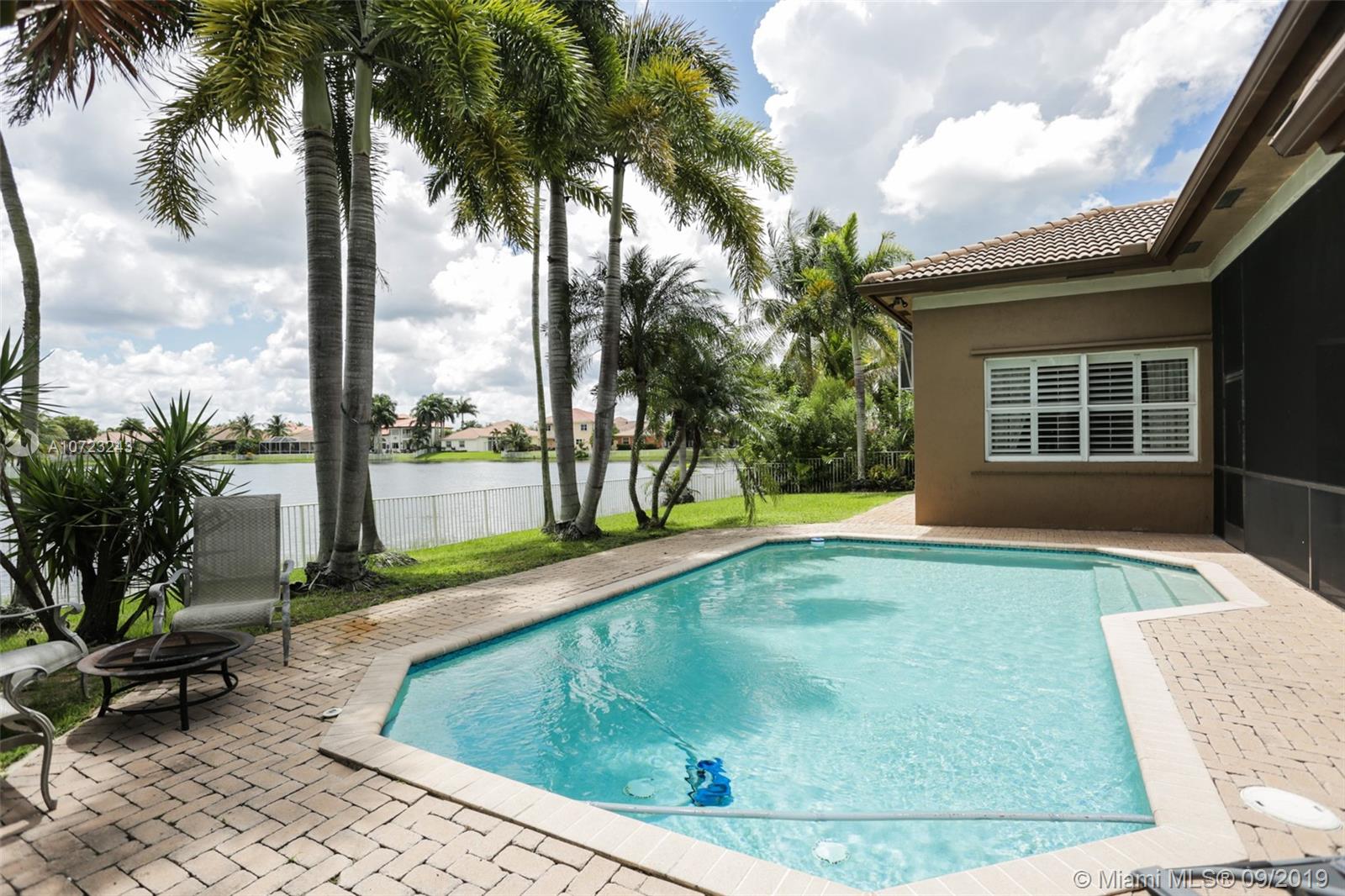 This stunning 4 bedroom pool home with spectacular long lake views is perfect for outdoor Florida enjoyment. Take a dip in the freeform pool or relax on the covered, screened and paver patio. Property also has a lushly landscaped and spacious fenced backyard. Interior features include formal dining room, central island kitchen with double oven, stainless steel appliances, granite counter tops and marble backsplash, large neutral tile in living areas and wood in bedrooms, crown molding, work/office station with built-in desk and laundry room with front loader washer, dryer and sink. Maintenance includes Sunset Lakes Clubhouse with gym, sand beach area, pool, volleyball ct etc and community gate.