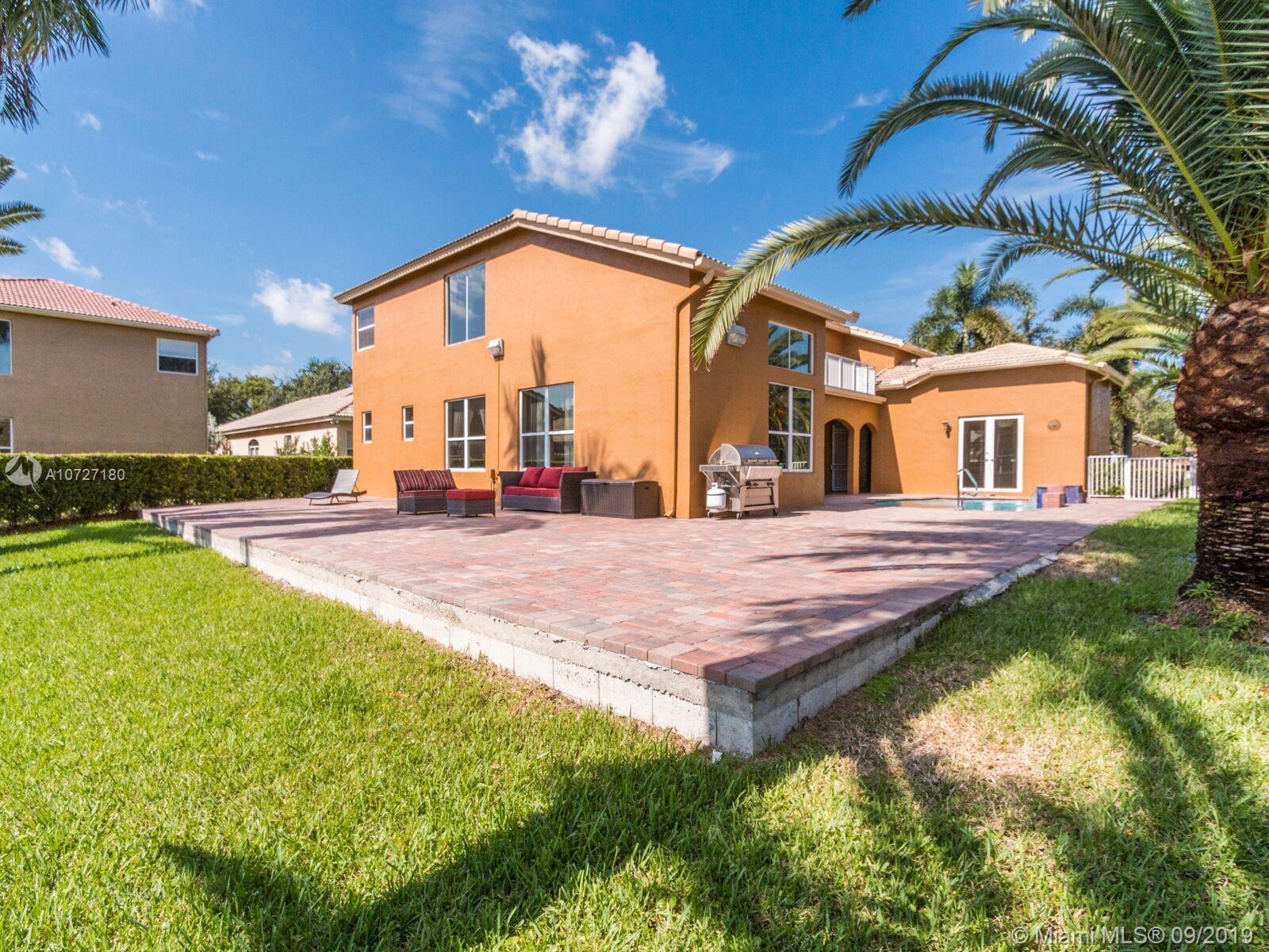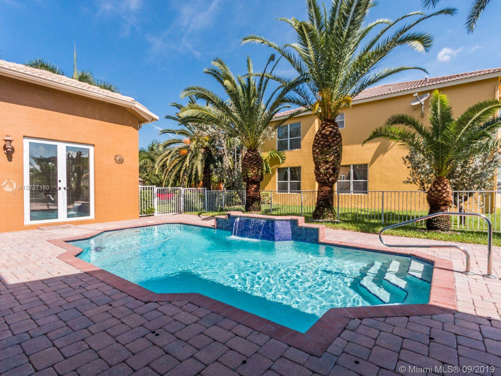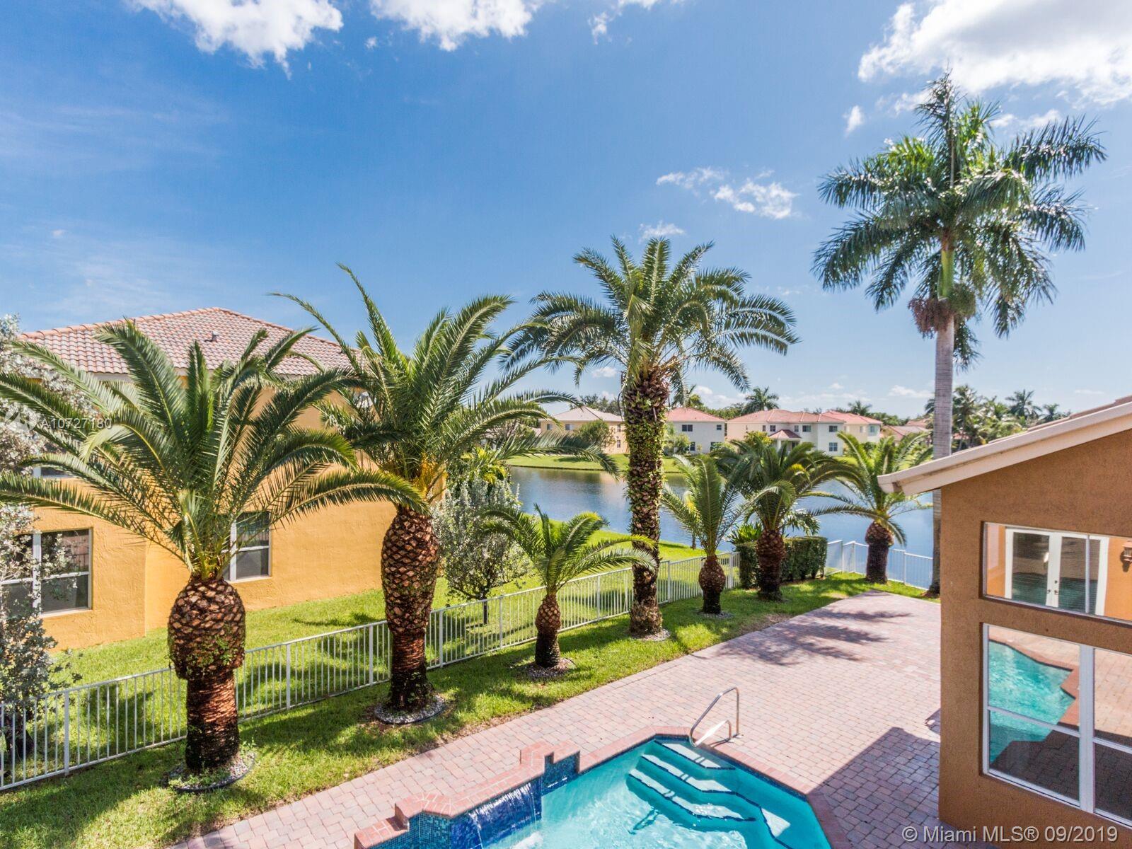 Absolutely stunning courtyard home with numerous builder upgrades and magnificent views. 5 bed, 4 bath home in gated community, Monarch Lakes. 6th bedroom was converted into a den. Formal dining room/living room with vaulted ceilings. Large family room off kitchen plus loft area on second floor. Kitchen has new Slate Stainless Steel appliances. Separate cabana/guest house with private entrance that was extended by builder consisting of 1 bedroom 1 full bath with walk-in closet and its own separate a/c unit. Large master bedroom with sitting room, his and hers walk in closets and a balcony off the sitting area that overlooks the courtyard pool and lake (one of the only homes with this builder upgrade)