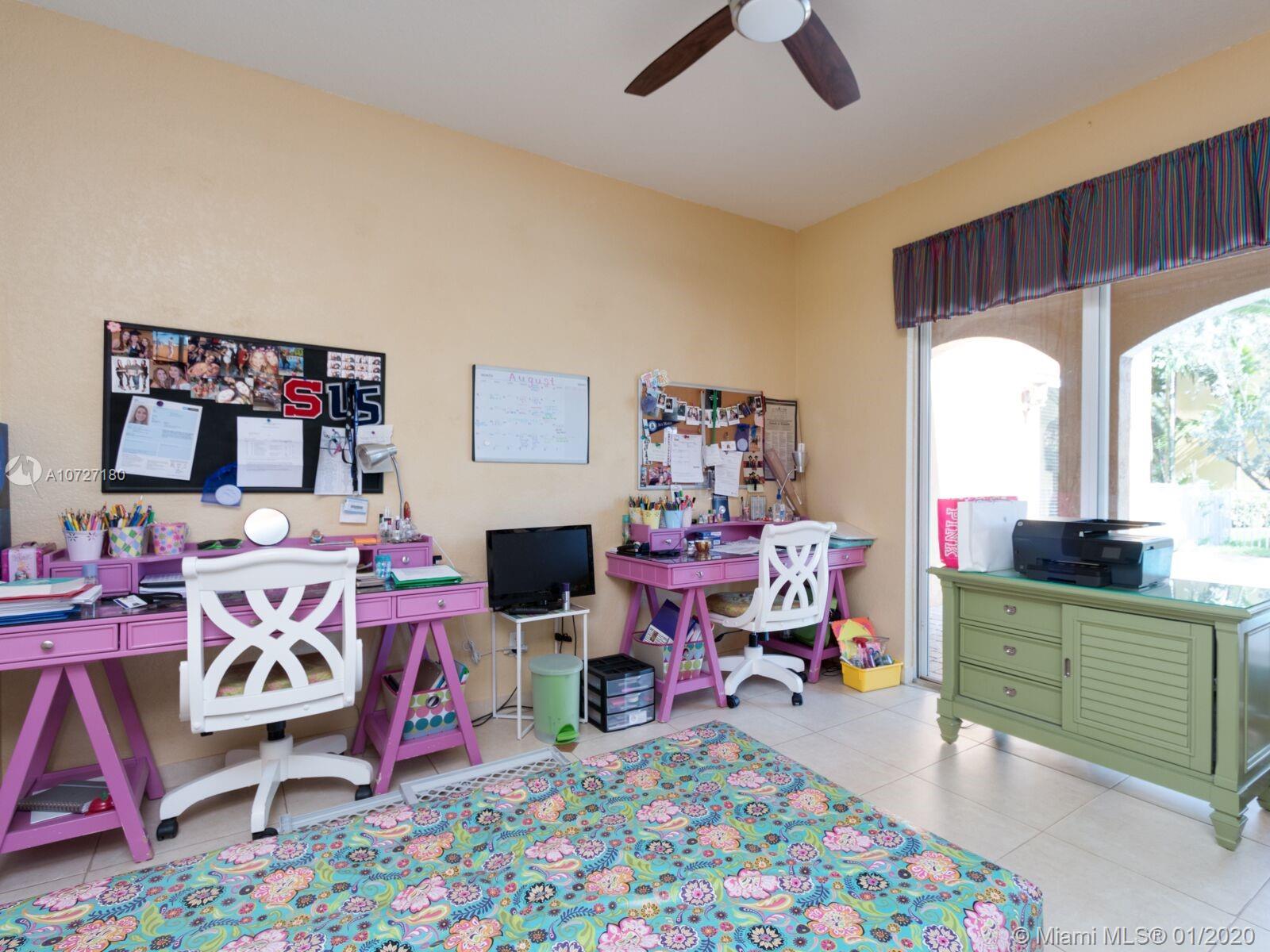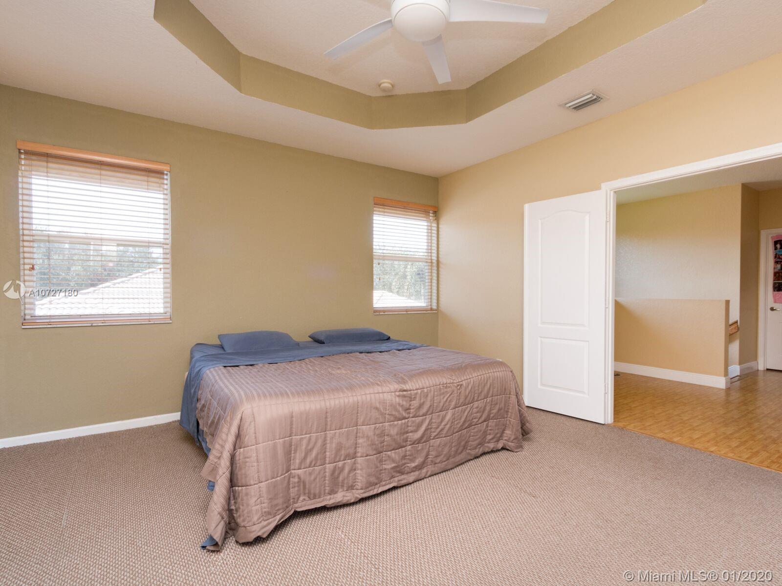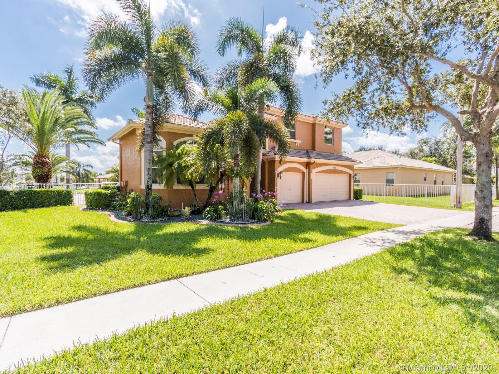 Absolutely stunning courtyard home with numerous builder upgrades and magnificent views. 5 bed, 4 bath home in gated community, Monarch Lakes. 6th bedroom was converted into a den. Formal dining room/living room with vaulted ceilings. Large family room off kitchen plus loft area on second floor. Kitchen has new Slate Stainless Steel appliances. Separate cabana/guest house with private entrance that was extended by builder consisting of 1 bedroom 1 full bath with walk-in closet and its own separate a/c unit. Large master bedroom with sitting room, his and hers walk in closets and a balcony off the sitting area that overlooks the courtyard pool and lake (one of the only homes with this builder upgrade)