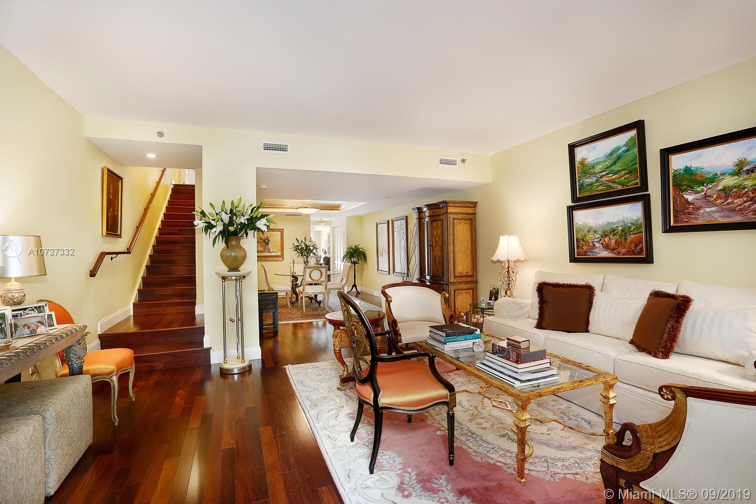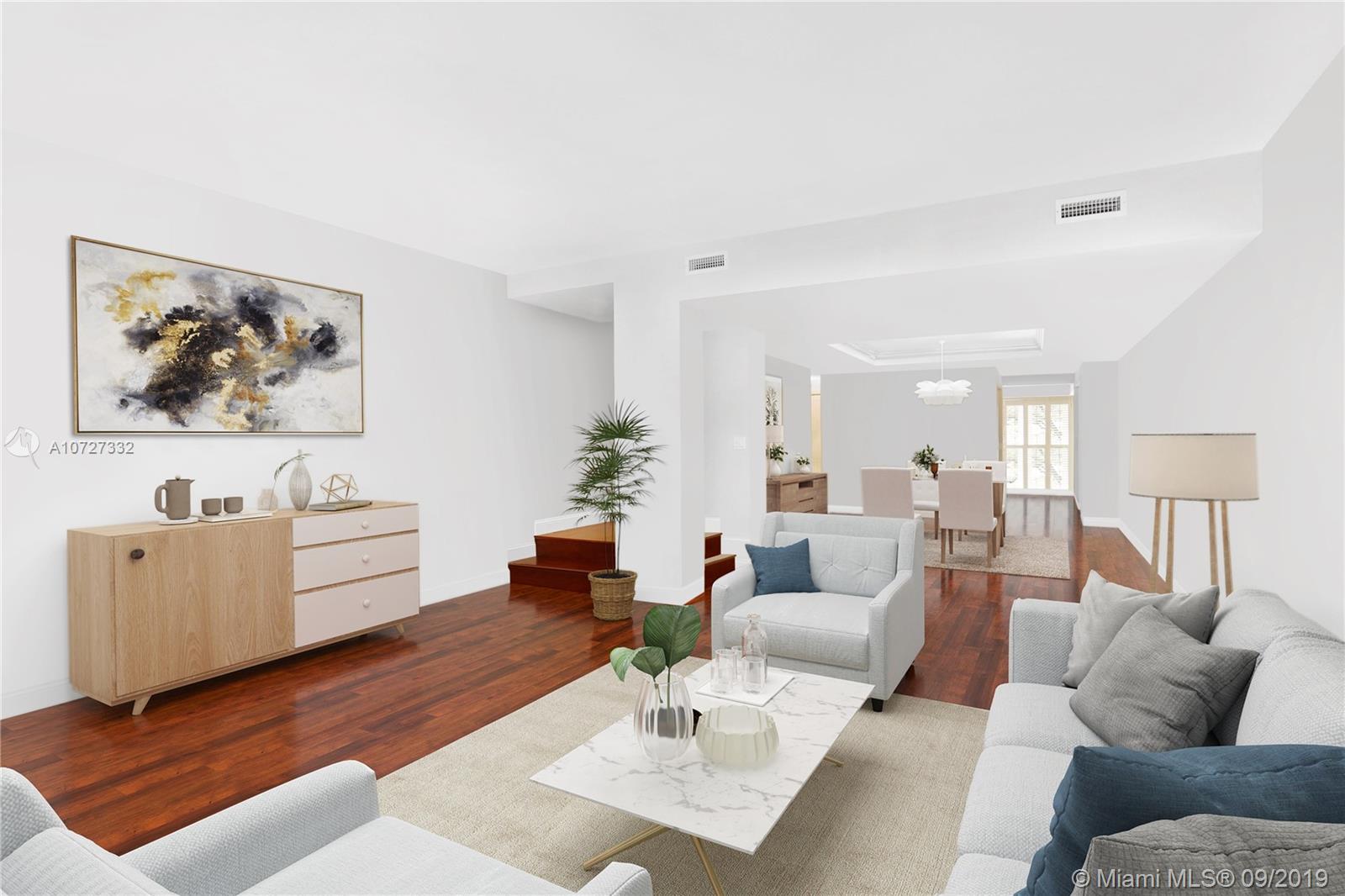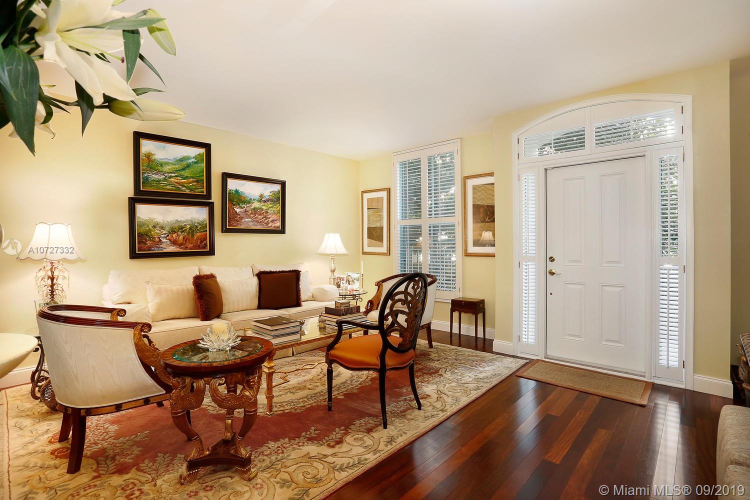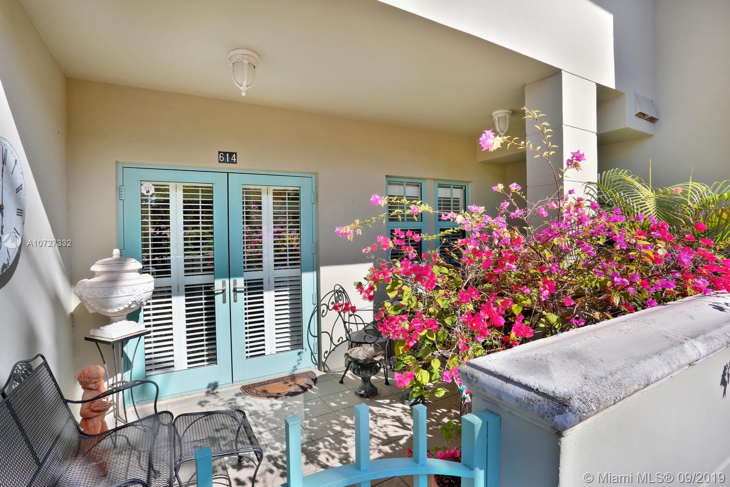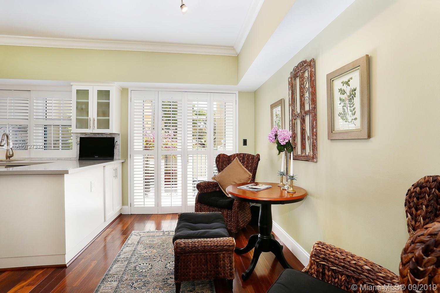 This elegant 2b/2.5b townhouse is located in the coveted New French Village. This stunning home boasts gleaming wood floors throughout, gorgeous kitchen with adjacent breakfast area and impact windows and doors. The spacious master suite features ample closets, marble bath with two vanities, separate tub and shower and bidet. The second bedroom is equally spacious with an en-suite bath and walk-in closet. Charming covered patio off of kitchen area can be enjoyed for morning coffee or evening cocktails. Two covered parking spaces under the building, plus plenty of off street parking is available. The New French Village is ideally situated nearby downtown Coral Gables, yet tranquil and serene. Motivated seller.