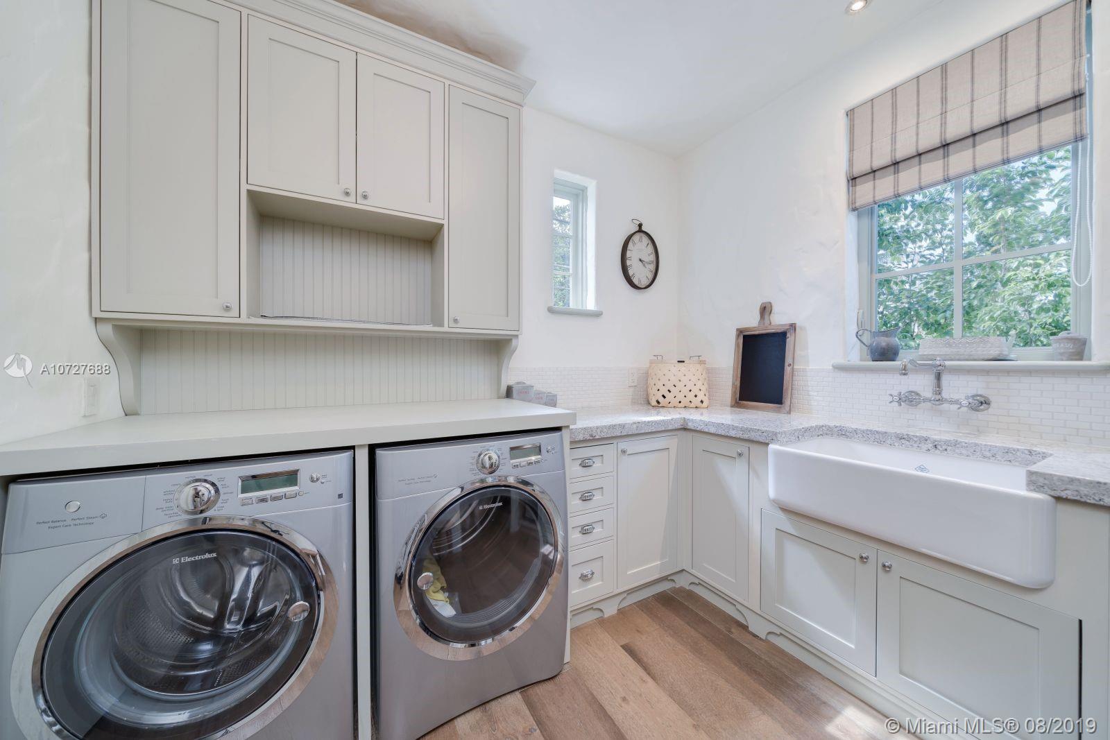 Designed with the laid-back luxury of California wine country in mind, this home is a study in a quiet elegance. Oversized lot is lusciously landscaped. Massive wood doors lead to a courtyard wonderland. Exquisite back patios, and terraced gardens extend the living area to the great outdoors. This is no ordinary setting! Inside you will find an extraordinary depth of detail. Gutted to the studs & restored to perfection. Italian wood plank & stone floors. The kitchen with 2 sinks & huge island/eat-in area opens to the courtyard & the formal dining rm. Master has His/Hers closets, sitting area and fireplace. 62 ft dock, newly capped seawall, 2-car garage & proper laundry room. Highest natural elevation on Miami Beach. Walk to the Ocean, restaurants, clubs, hotels, museums, the ballet etc.