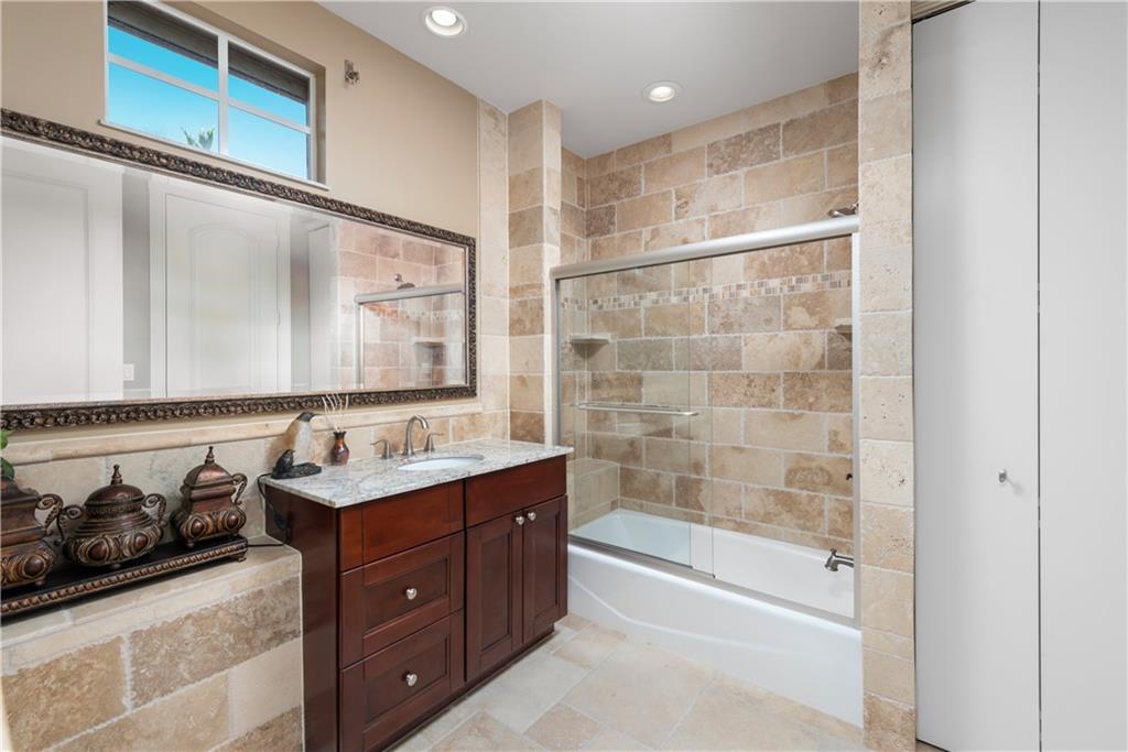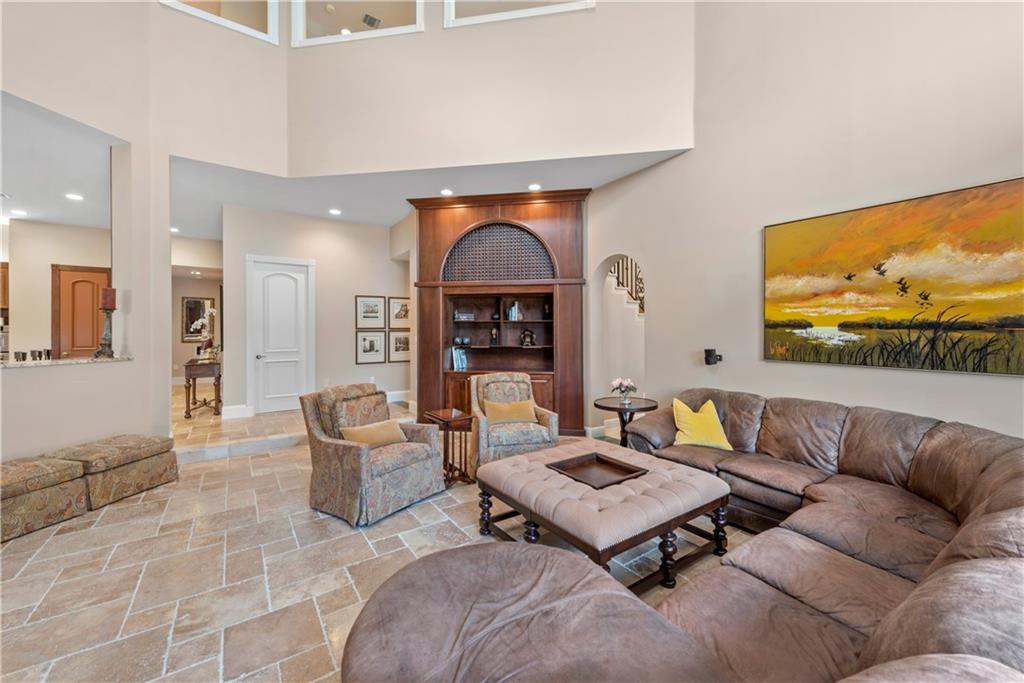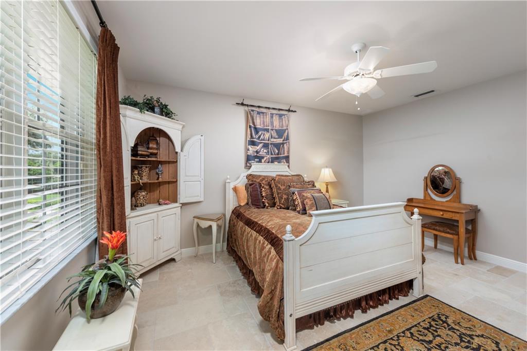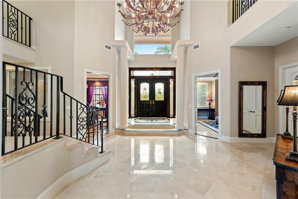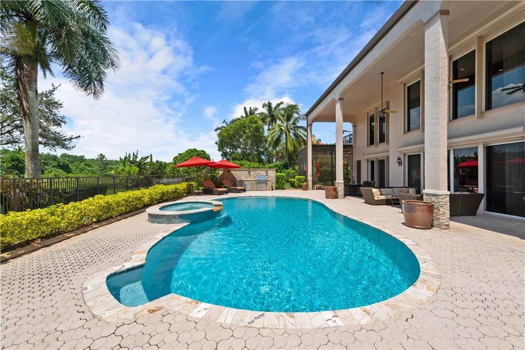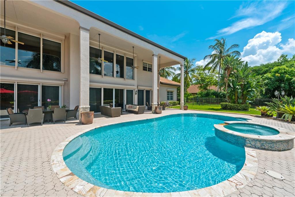 This spectacular Windmill Lake Estates home is privately nestled in an exclusively gated enclave of only 54 custom homes on acreage lots. Property boasts a grand driveway entrance with large fountain, beautifully manicured grounds, 2 story foyer, 7 bed/6 bath/ 2 half-baths, formal dining with butler’s pantry, formal living room with wet bar, and updated kitchen with center island and large pantry. Tumbled marble floors. Elegant master suite with separate sitting area overlooks the lush resort-style pool which offers complete privacy with no rear neighbors. Easily accessible air conditioned attic space, plenty of parking space, oversized garage, Rolladen hurricane protection throughout, new roof, hue lighting, nest smart home system, outdoor turf in backyard, and low HOA.
