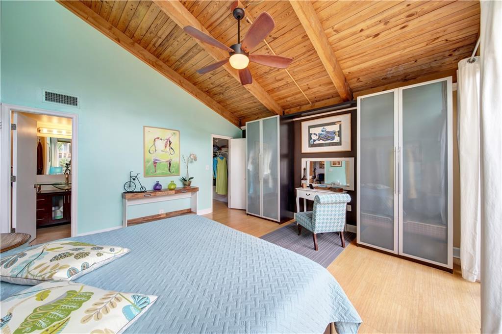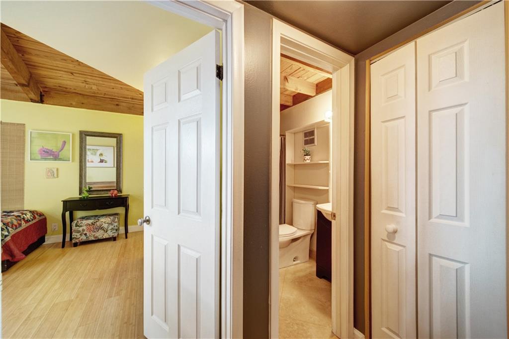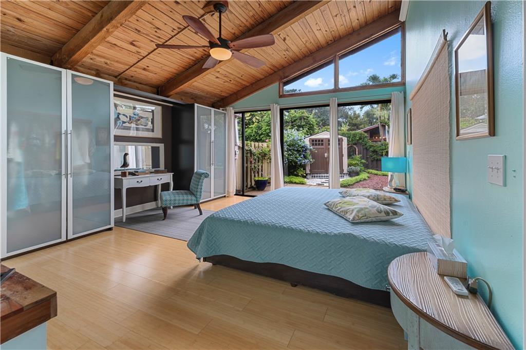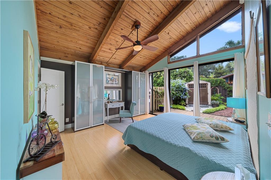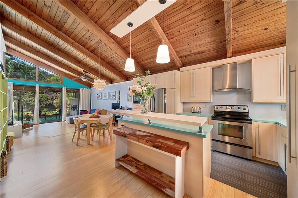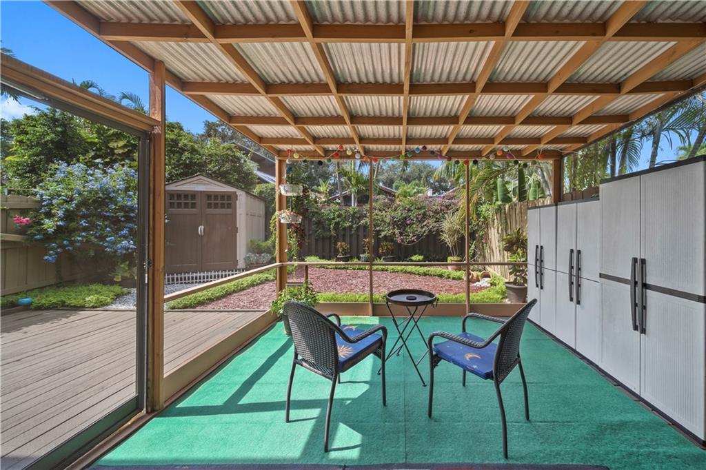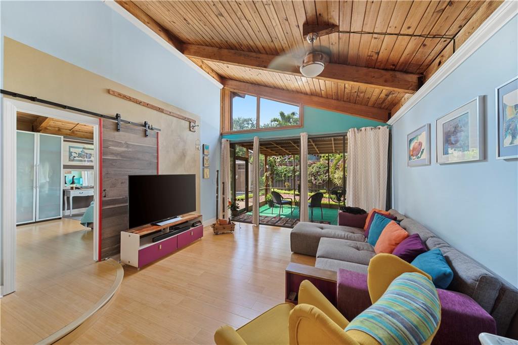 Wow! A mountain Chalet style single family home / townhouse in South Florida! HOA fee only $300/year. This beautiful property features vaulted ceilings with exposed beams, open kitchen with a bar & stainless steel appliances, bamboo flooring throughout, walk-in closets in both bedrooms, extra loft in the second bedroom and a large screened in patio. Fenced in backyard with a shed in the back and a small fenced in patio in the front. Great location, close to major highways I-95 & Turnpike, shoppes and restaurants but yet very secluded & quite area with lots of trees. Call now to schedule your private tour of the property! Will not last!