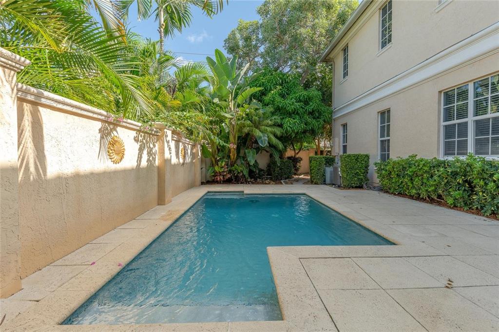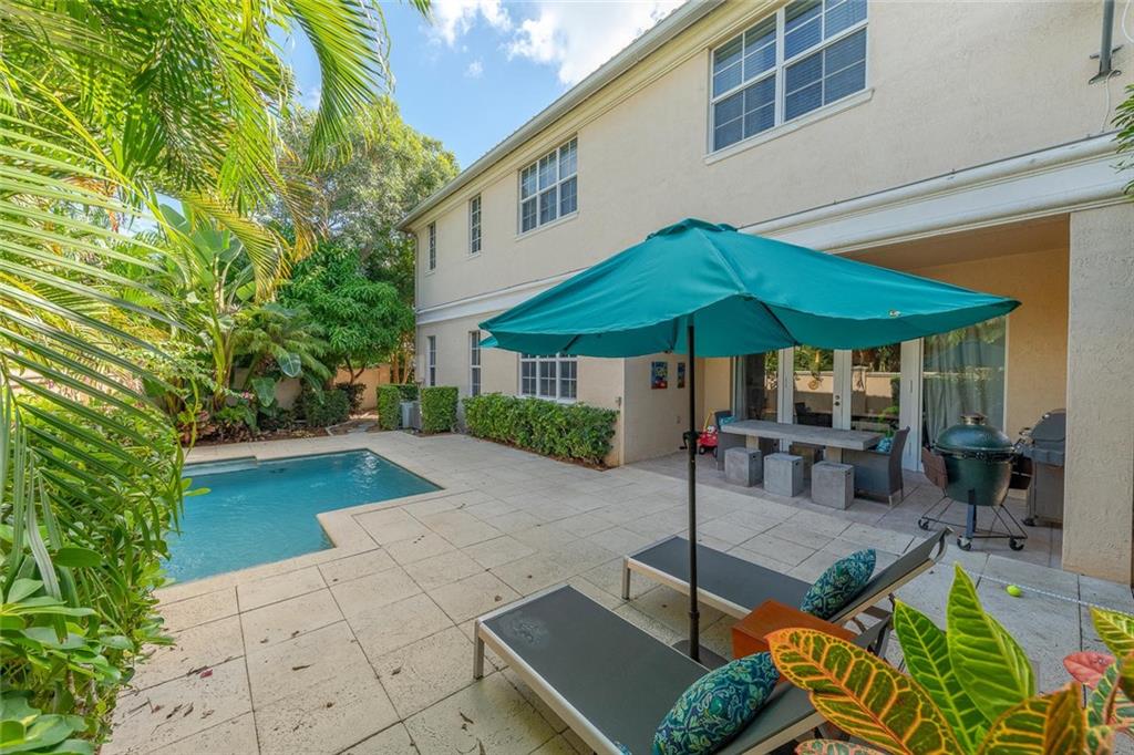 The advantages of a large town home with its own yard and pool, a wide driveway and great privacy. It lives and feels more like a single family house - over 2800 SF of living and boasts a powder room and study on the main floor - spacious loft overlooking the two story living room with grand windows for ample natural light. Custom built-ins throughout with formal living and dining rooms, a wide open Chef's style kitchen, breakfast area and large covered porch and pool. Generously sized Master has luxury bath and balcony + 2 guest rooms and guest bath. Other notables include impact windows/doors, 2-bay garage, a mid-sized pool surrounded by a patio and gardens. This location is perfect for its easy access to parks, movies, stores and the beaches.