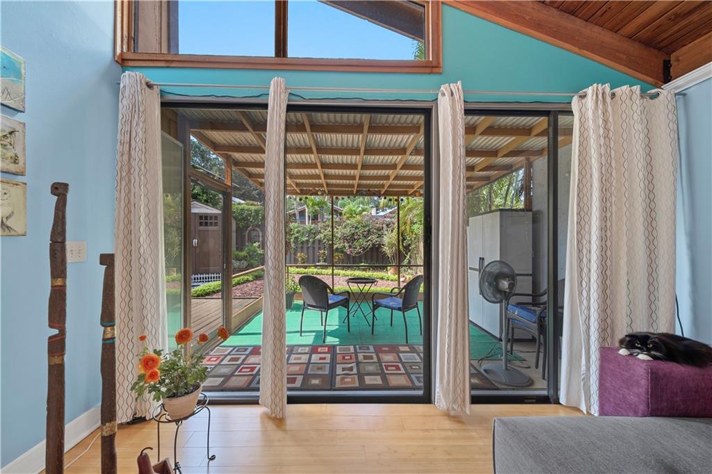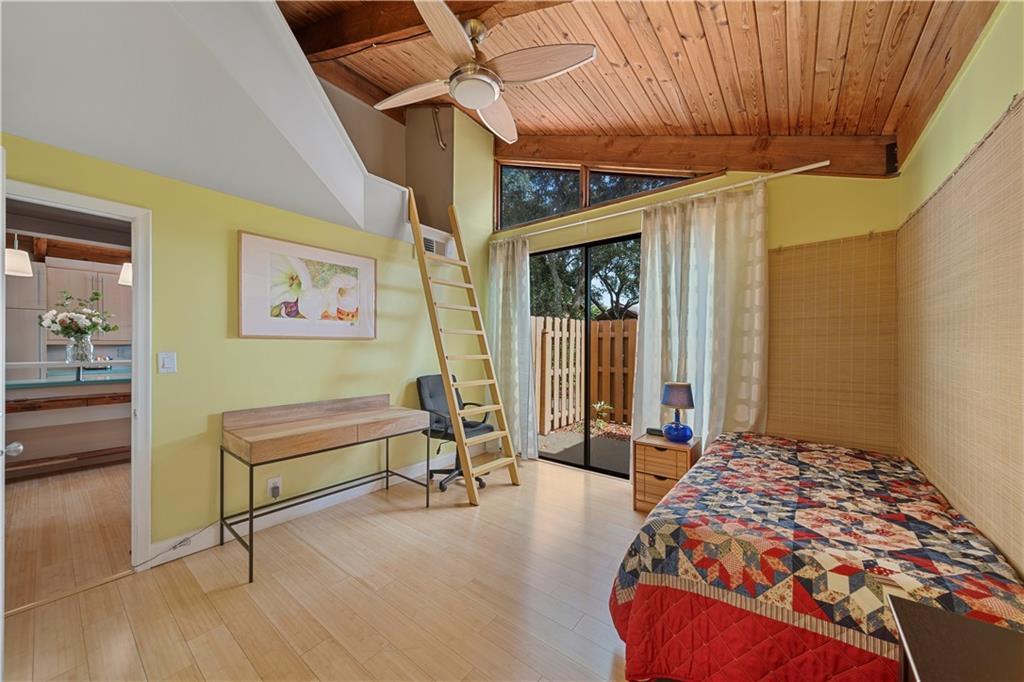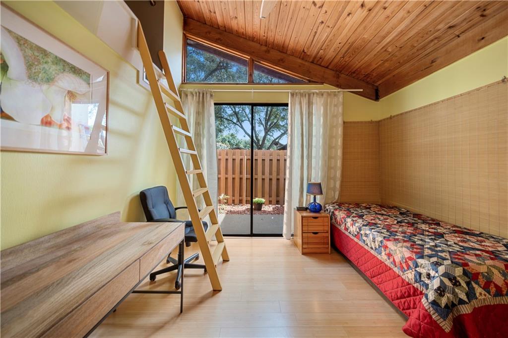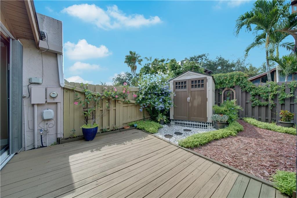 Wow! A mountain Chalet style single family home / townhouse in South Florida! HOA fee only $300/year. This beautiful property features vaulted ceilings with exposed beams, open kitchen with a bar & stainless steel appliances, bamboo flooring throughout, walk-in closets in both bedrooms, extra loft in the second bedroom and a large screened in patio. Fenced in backyard with a shed in the back and a small fenced in patio in the front. Great location, close to major highways I-95 & Turnpike, shoppes and restaurants but yet very secluded & quite area with lots of trees. Call now to schedule your private tour of the property! Will not last!
