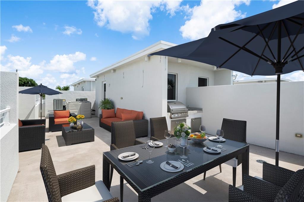 Incredible opportunity to own a beautiful and bright 3-bedroom, 3-bathroom corner unit featuring a bonus room! This multi-level residence boasts many upgrades, including: custom Italian kitchen cabinetry with a lifetime warranty, Caesarstone waterfall countertops, Electrolux appliances, impact doors and windows, a Thyssen Krupp elevator, Culligan whole house water filtration system and an internal water purification system. This home is fully equipped with a wired security system with cameras covering all entrances and pre-wiring for music intercom system. Enjoy city views from the outdoor rooftop terrace with a summer kitchen and gas BBQ. Located in a secure gated community with two-car garage. Great investment opportunity with a potential rental income of $4000 to 4500 per month!